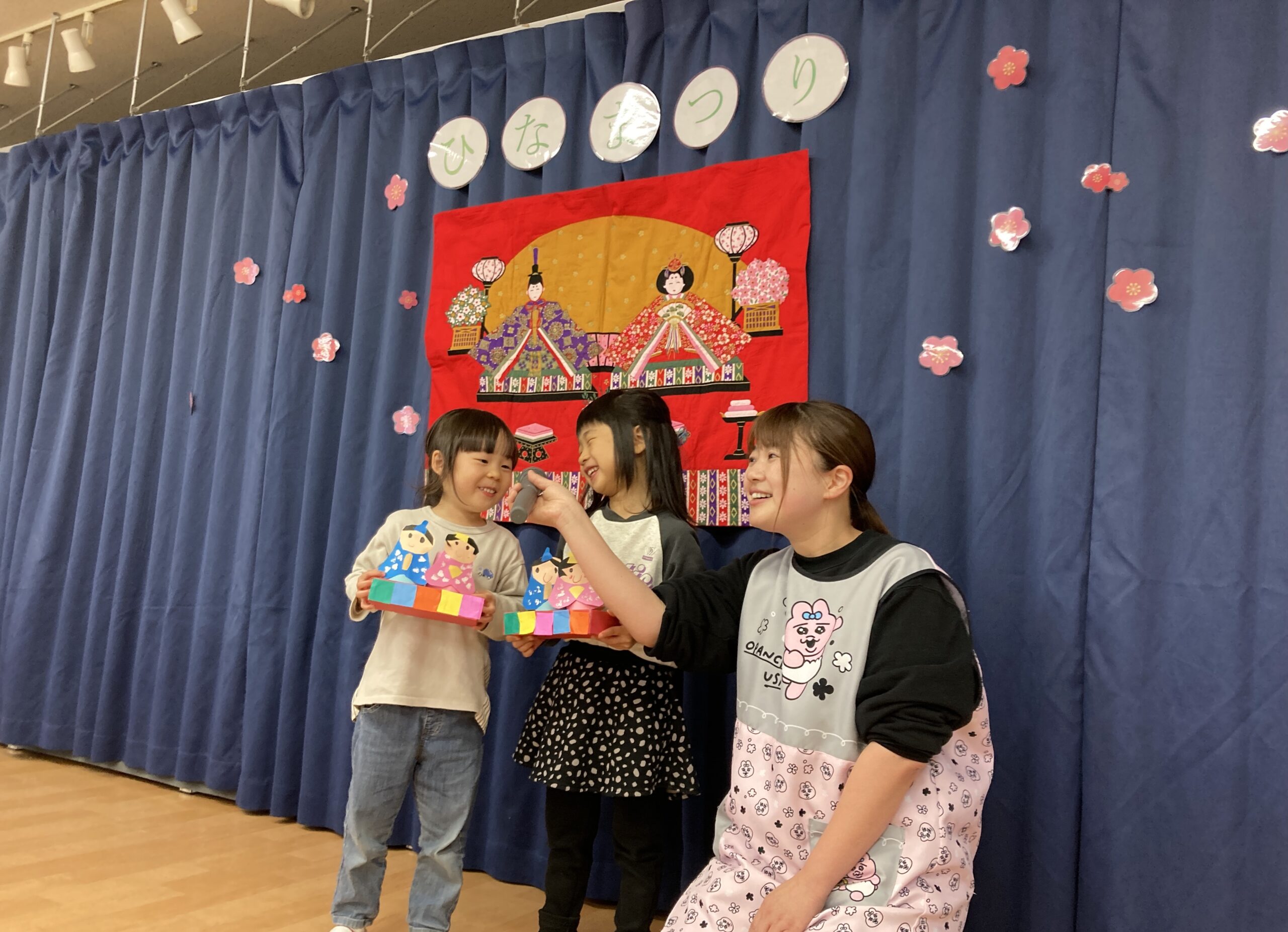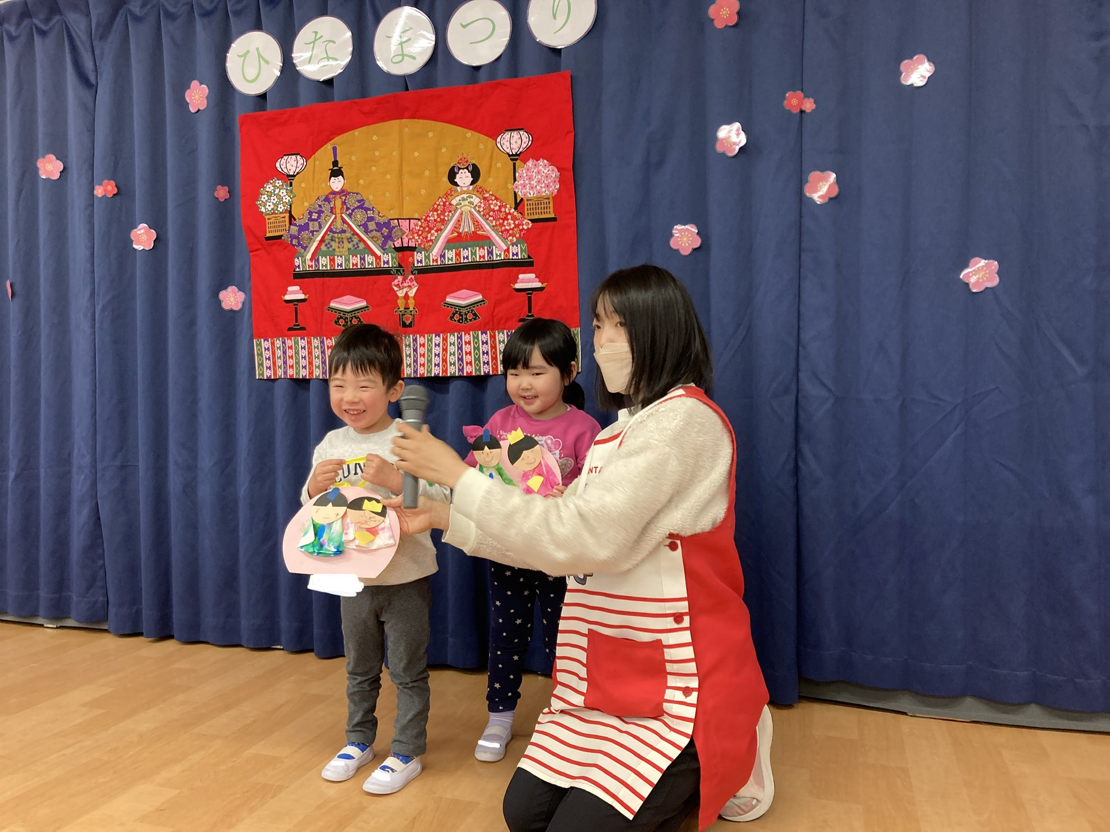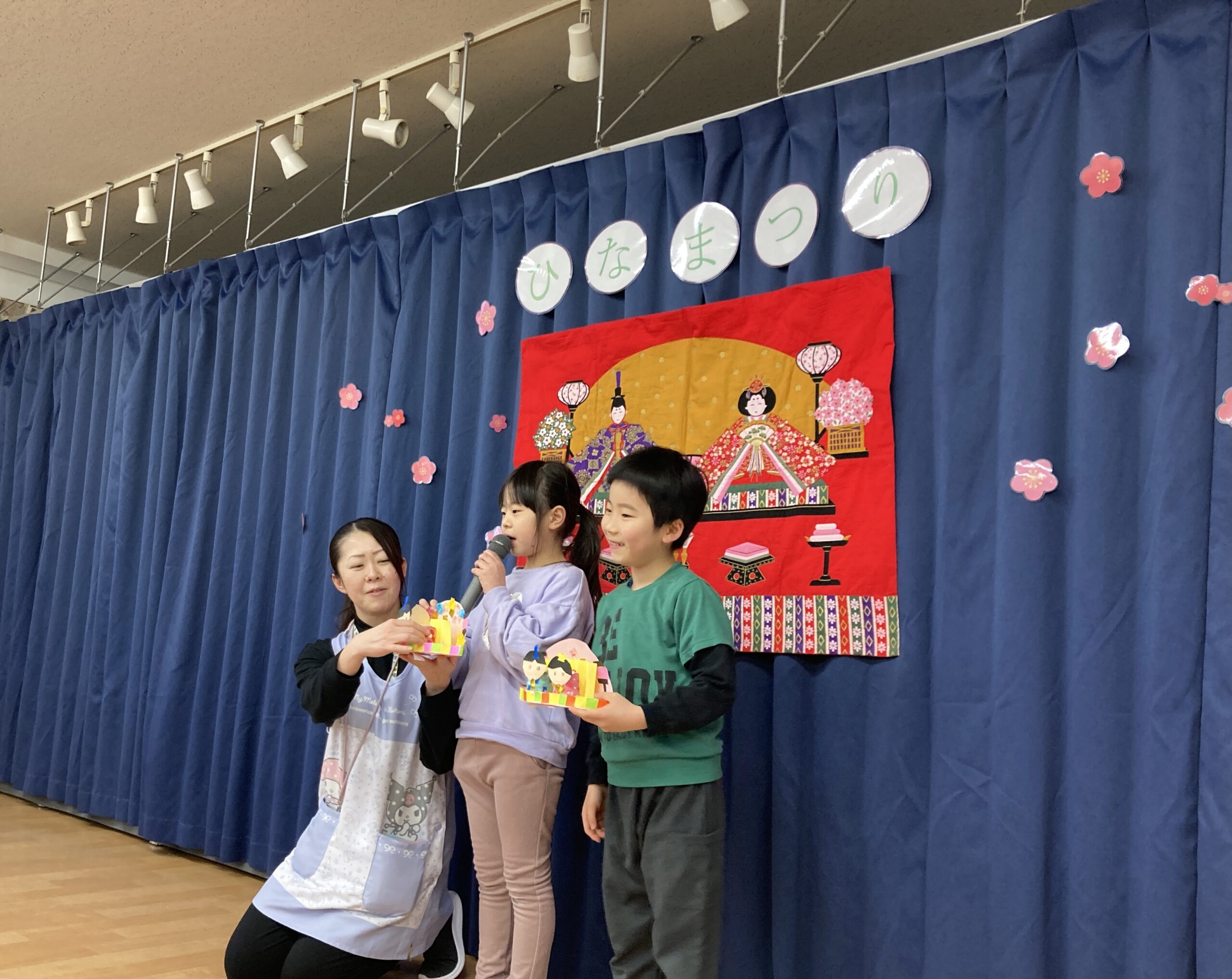 まずは、各クラスで作ったひな祭り製作を、クラスの代表者が紹介してくれました。