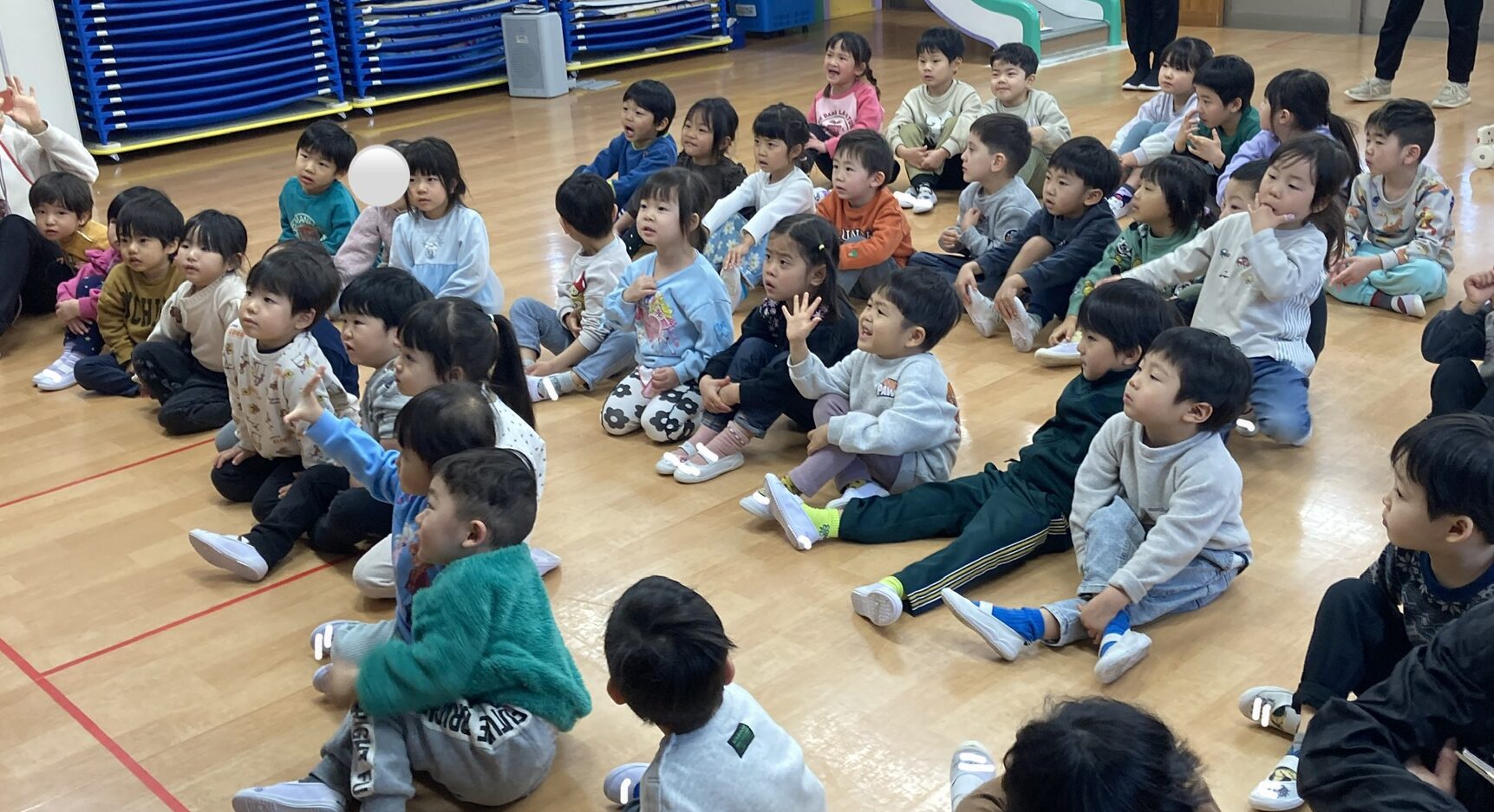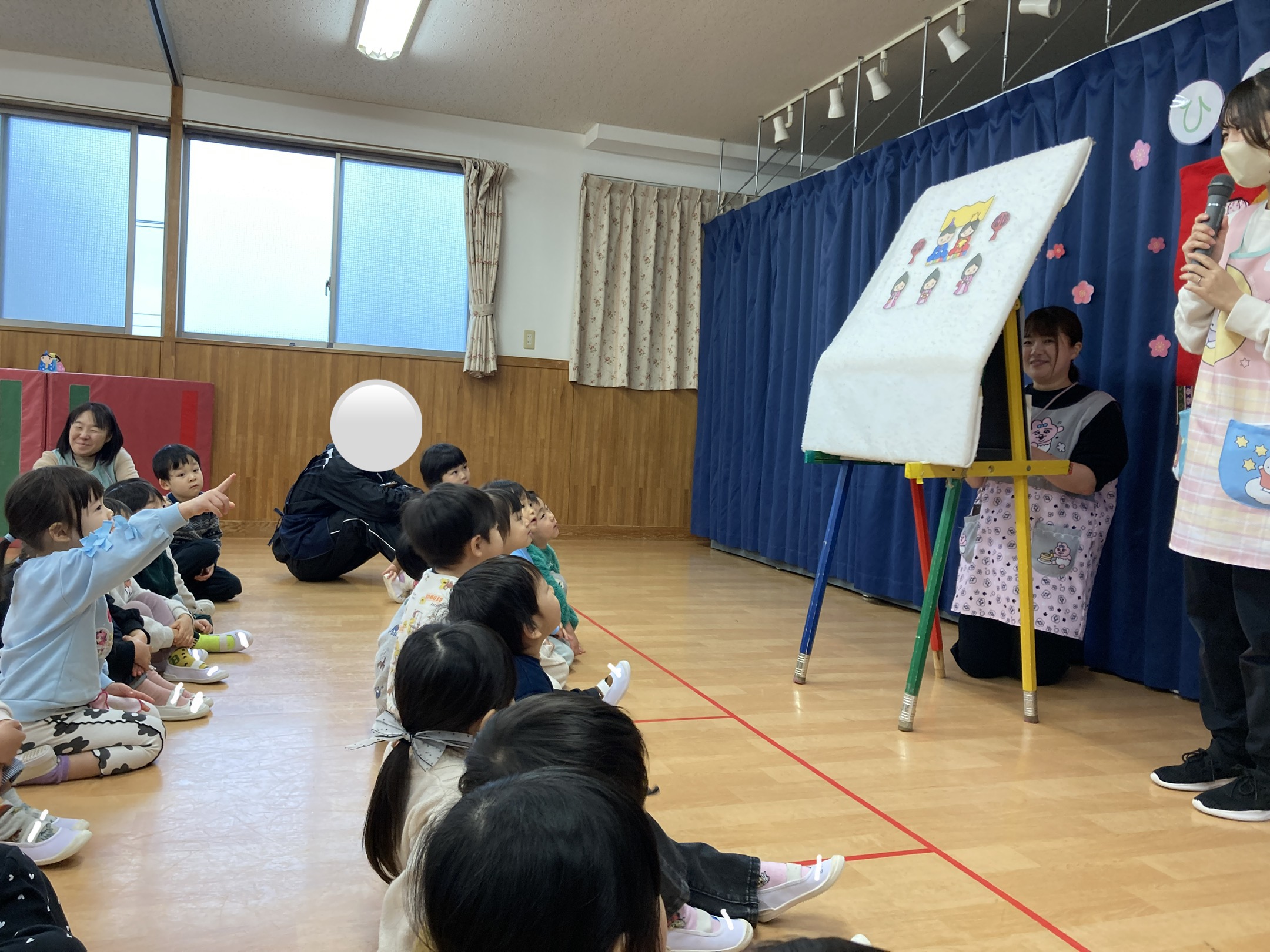出てきたペープサートを見ただけで「ぼんぼり!」と即答する場面や