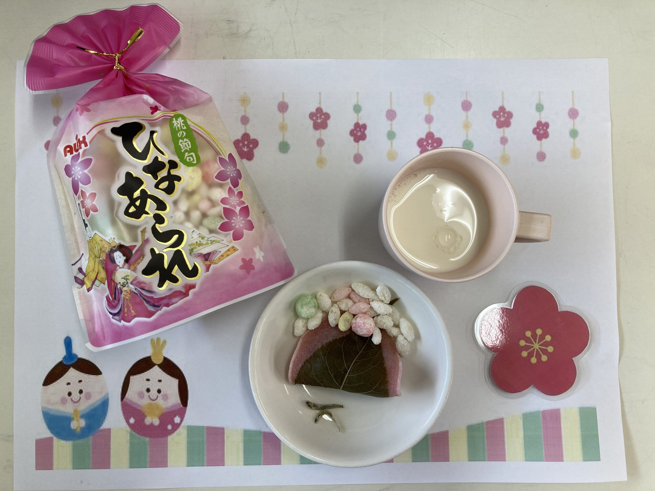 可愛らしい桜餅とひなあられに子どもたちもワクワクです。