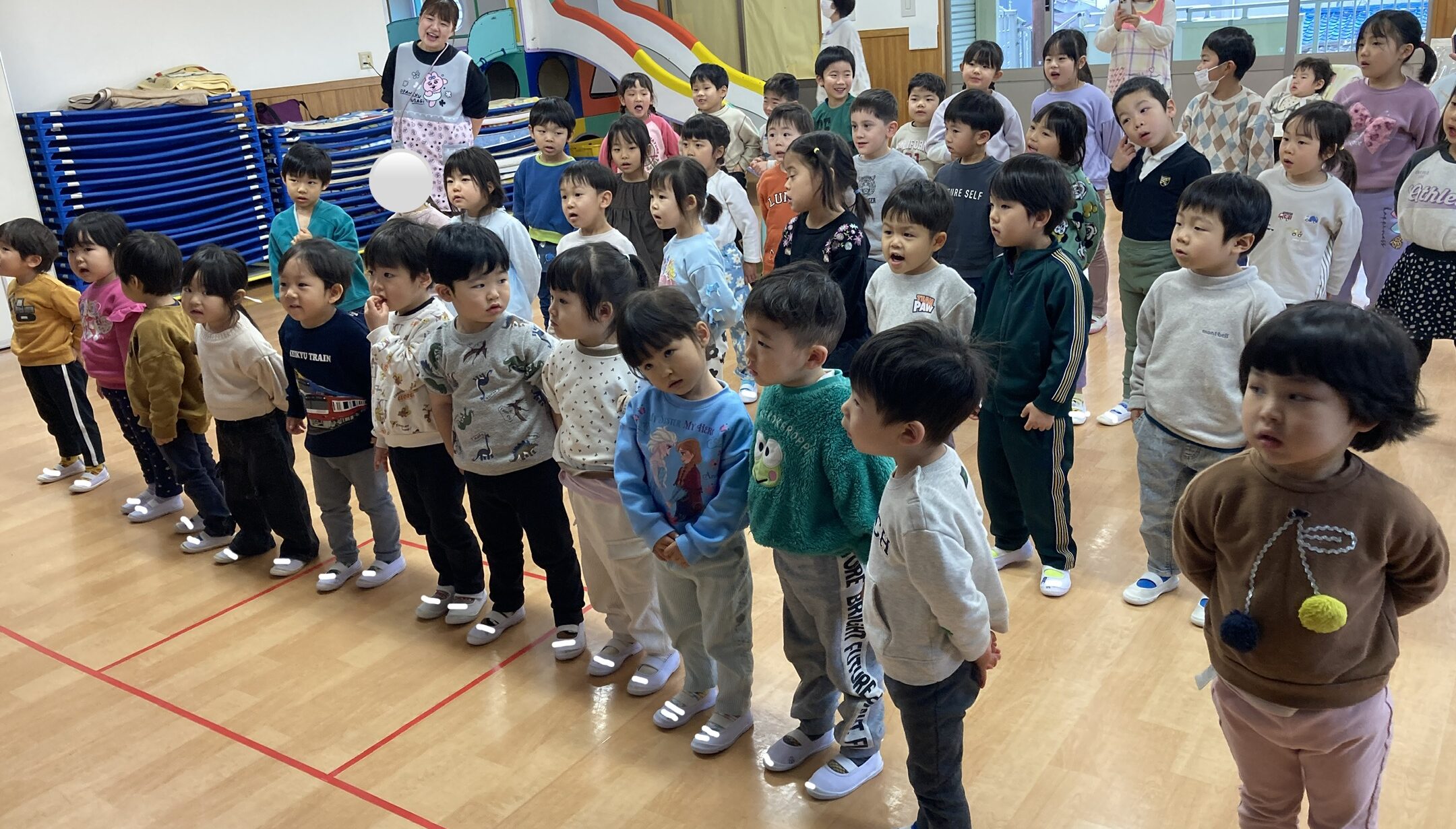ひな祭りに関して少し詳しくなった後は、みんなで「たのしいひなまつり♪」の歌をうたいました。