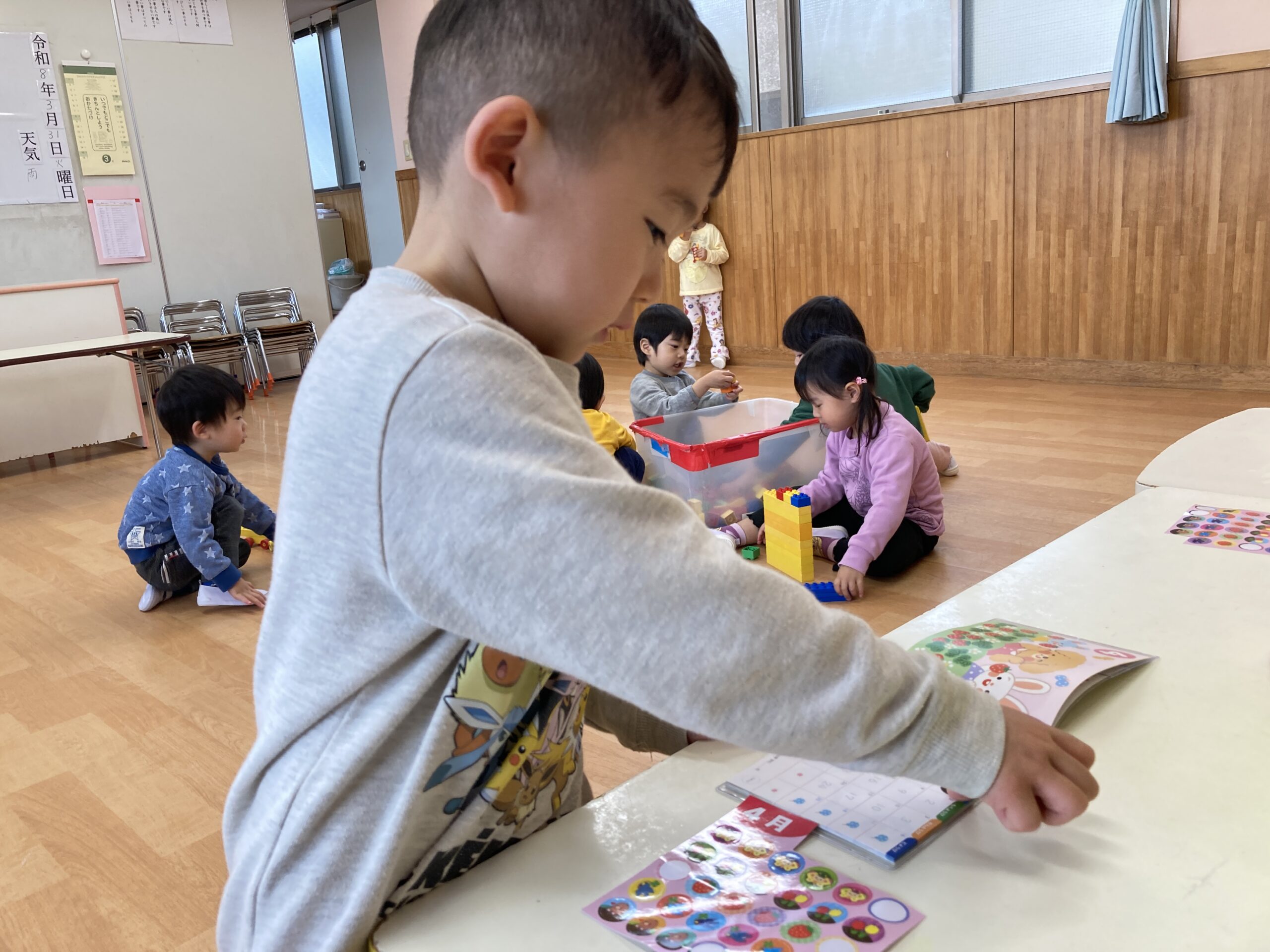 「今日はどれにしようかな?」と嬉しそうにシールを選び、丁寧に貼る姿が見られます。回数を重ねる中で、自分のページを開き、数字を見つけることも上手になってきました。