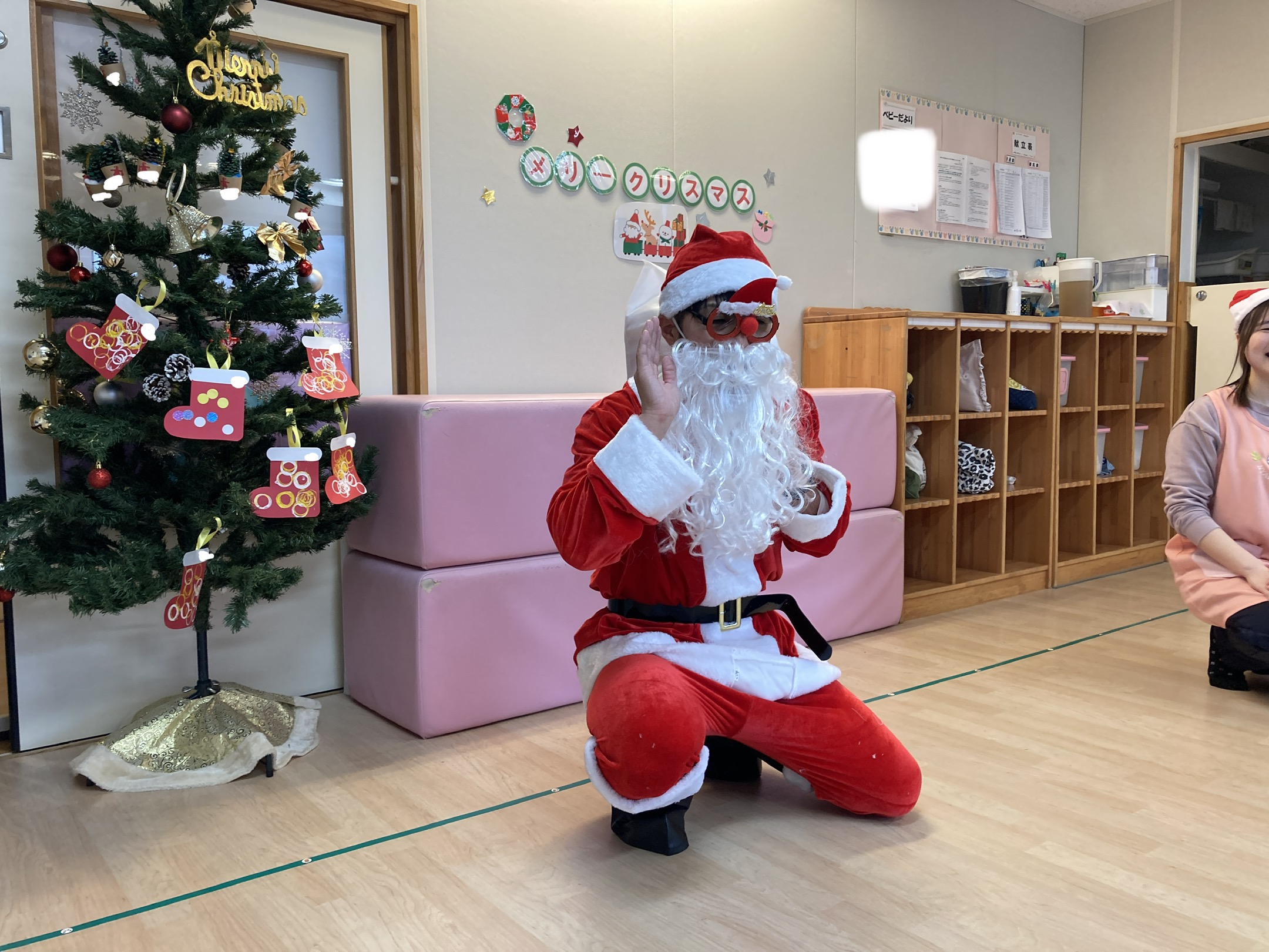 そしてクリスマスの手遊びを楽しんでいると…どこからかリンリンと鈴の音が聞こえてきました!みんなで耳を澄ませていると、なんとサンタさんが登場‼︎