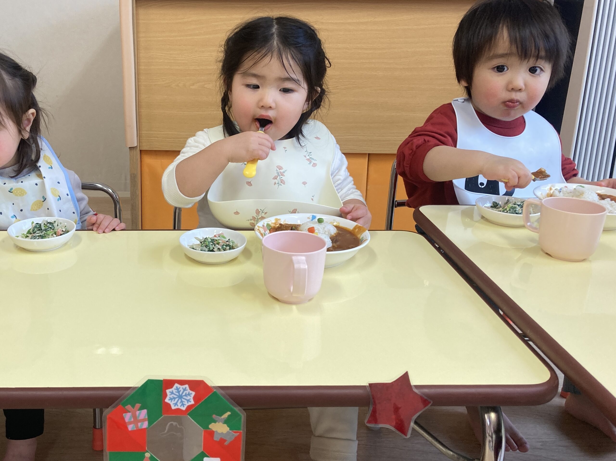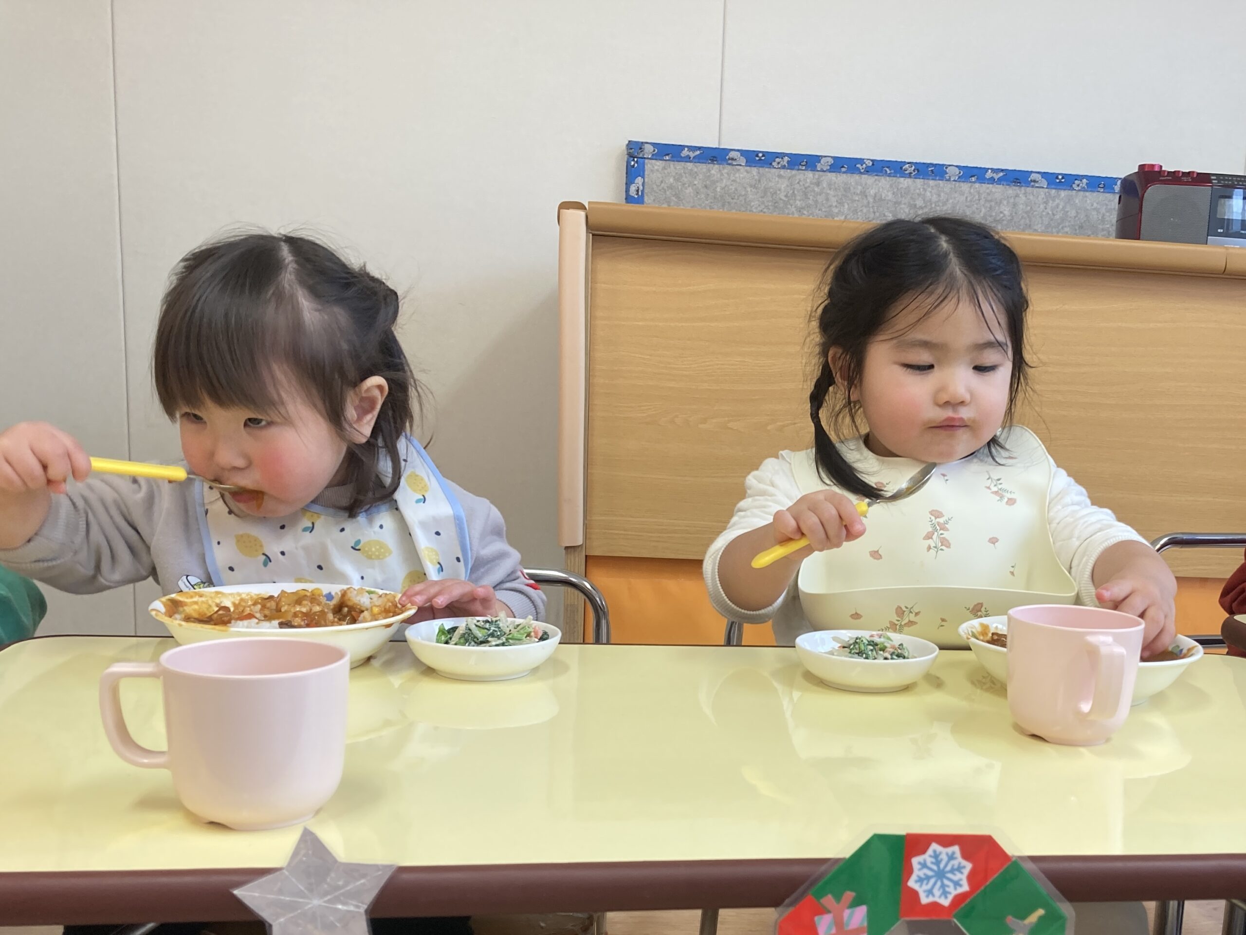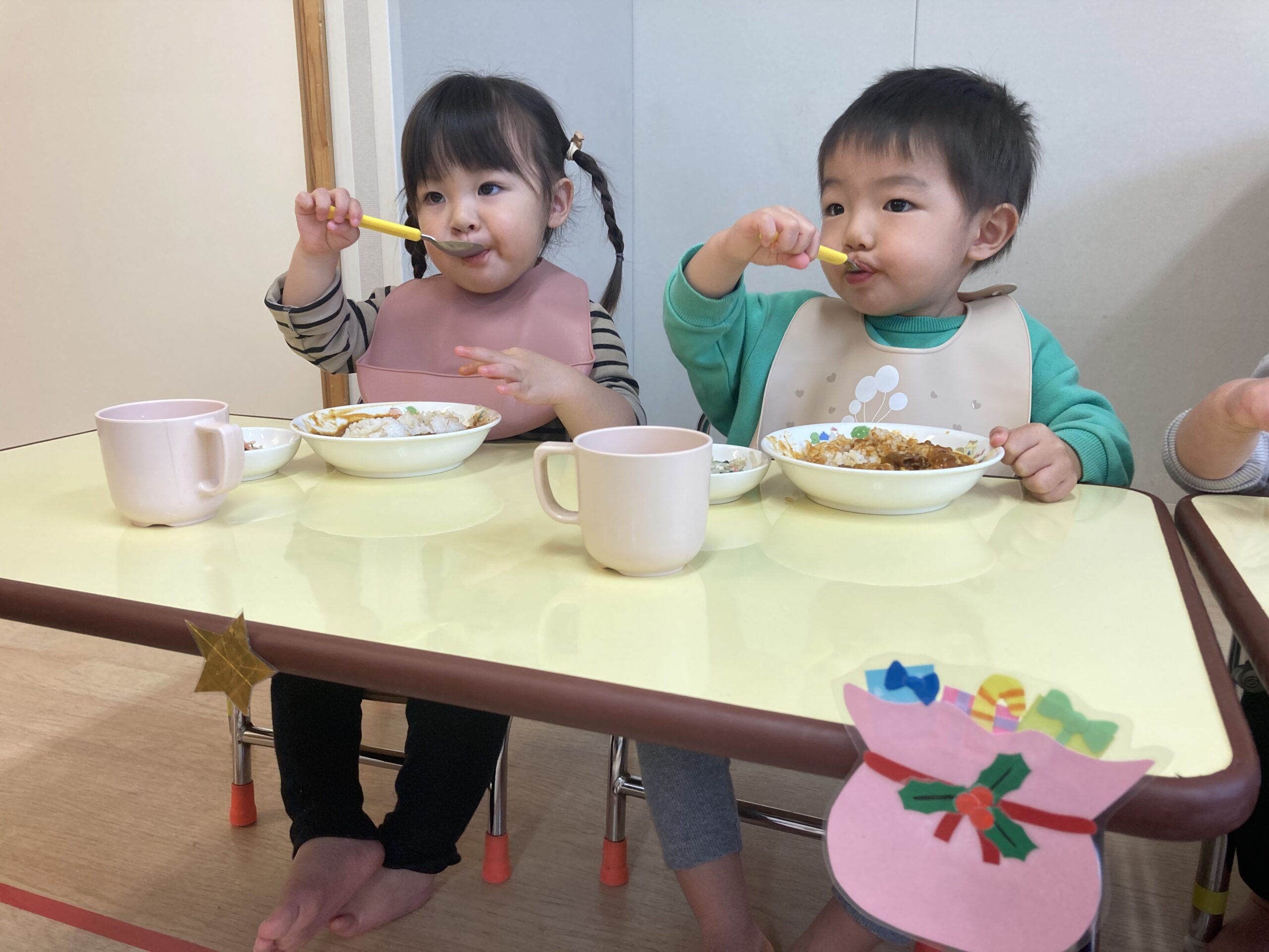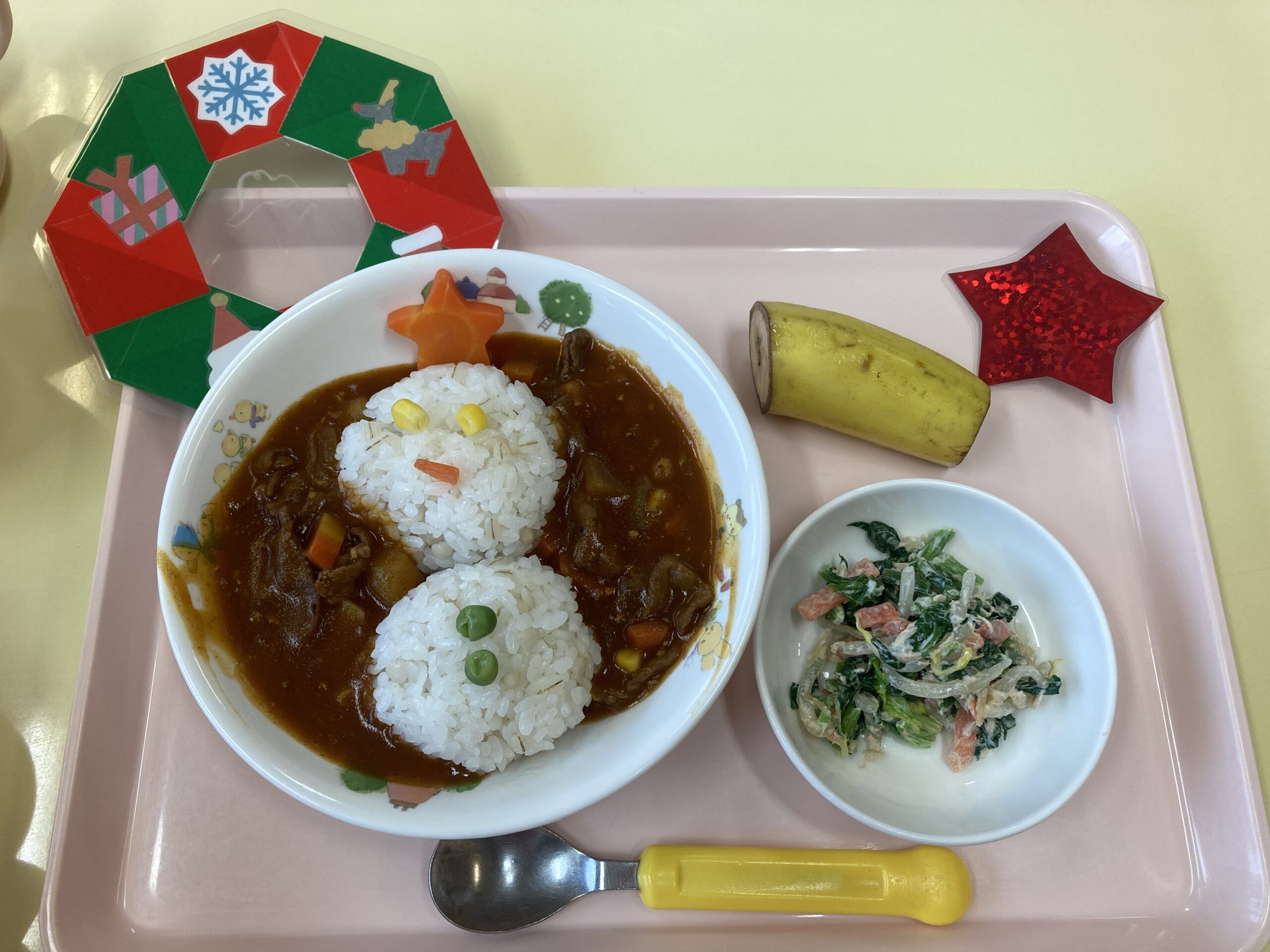 クリスマス会の後は、給食です。今日はクリスマスの特別メニューでした!