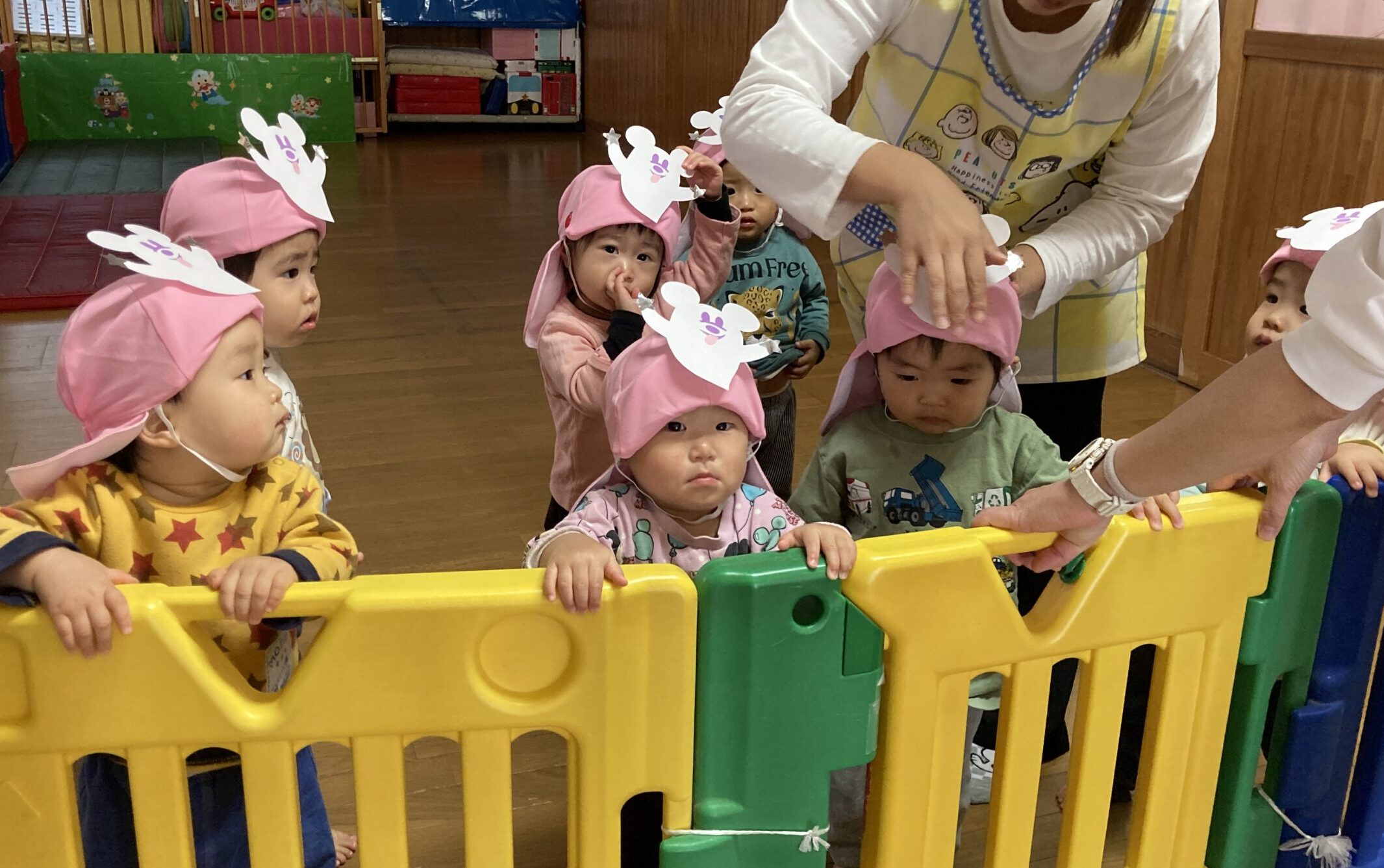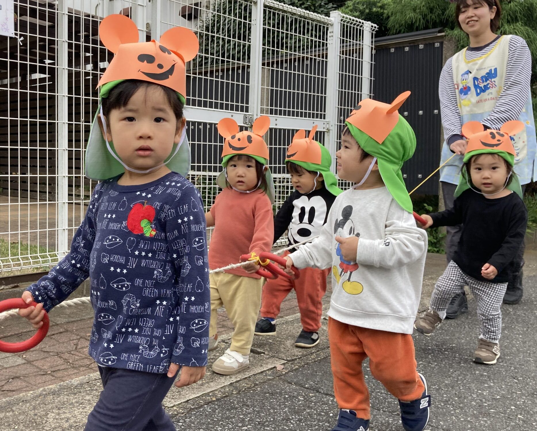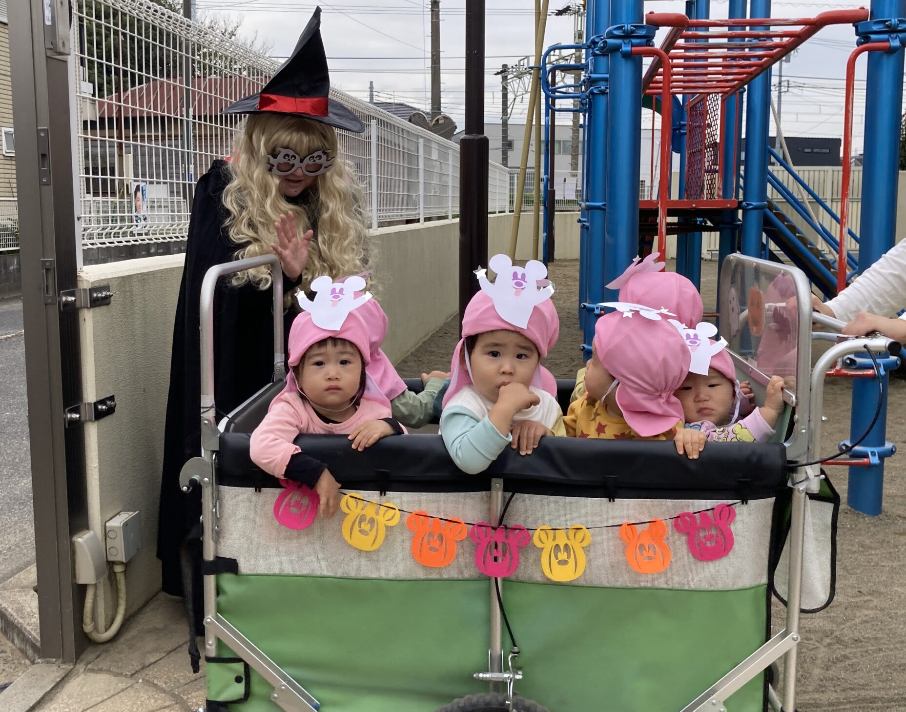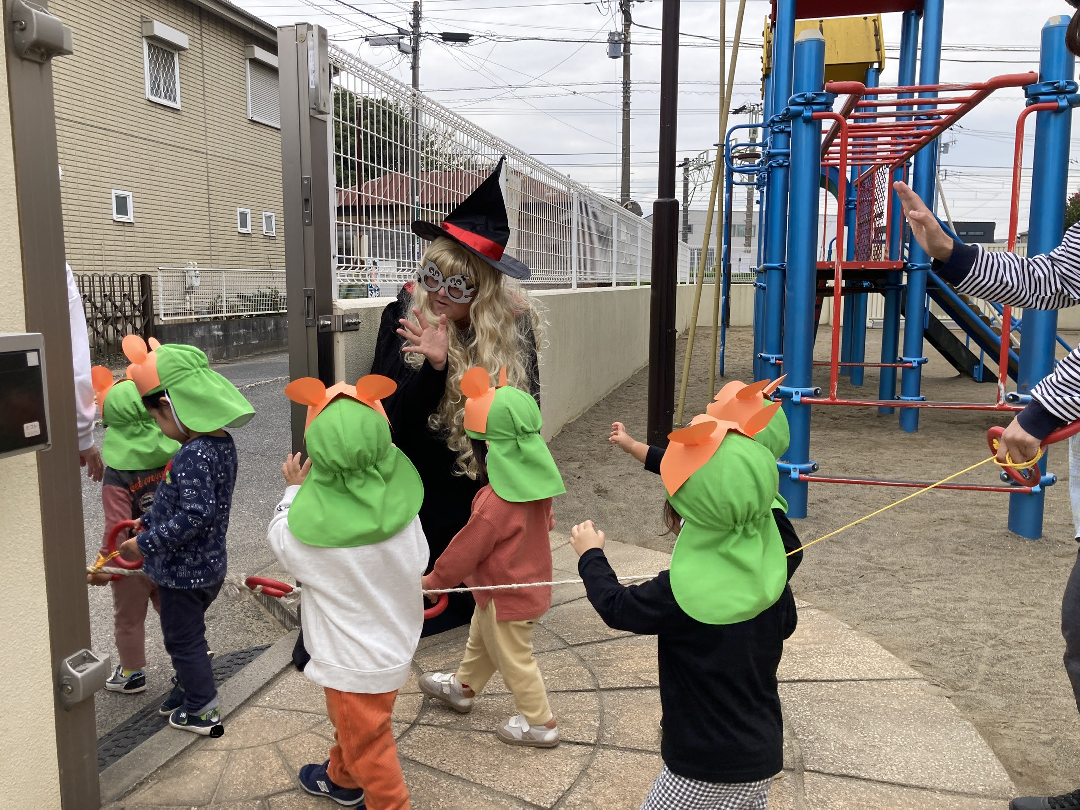 まずはハロウィンパレードをするためにお外に行く準備をしました。