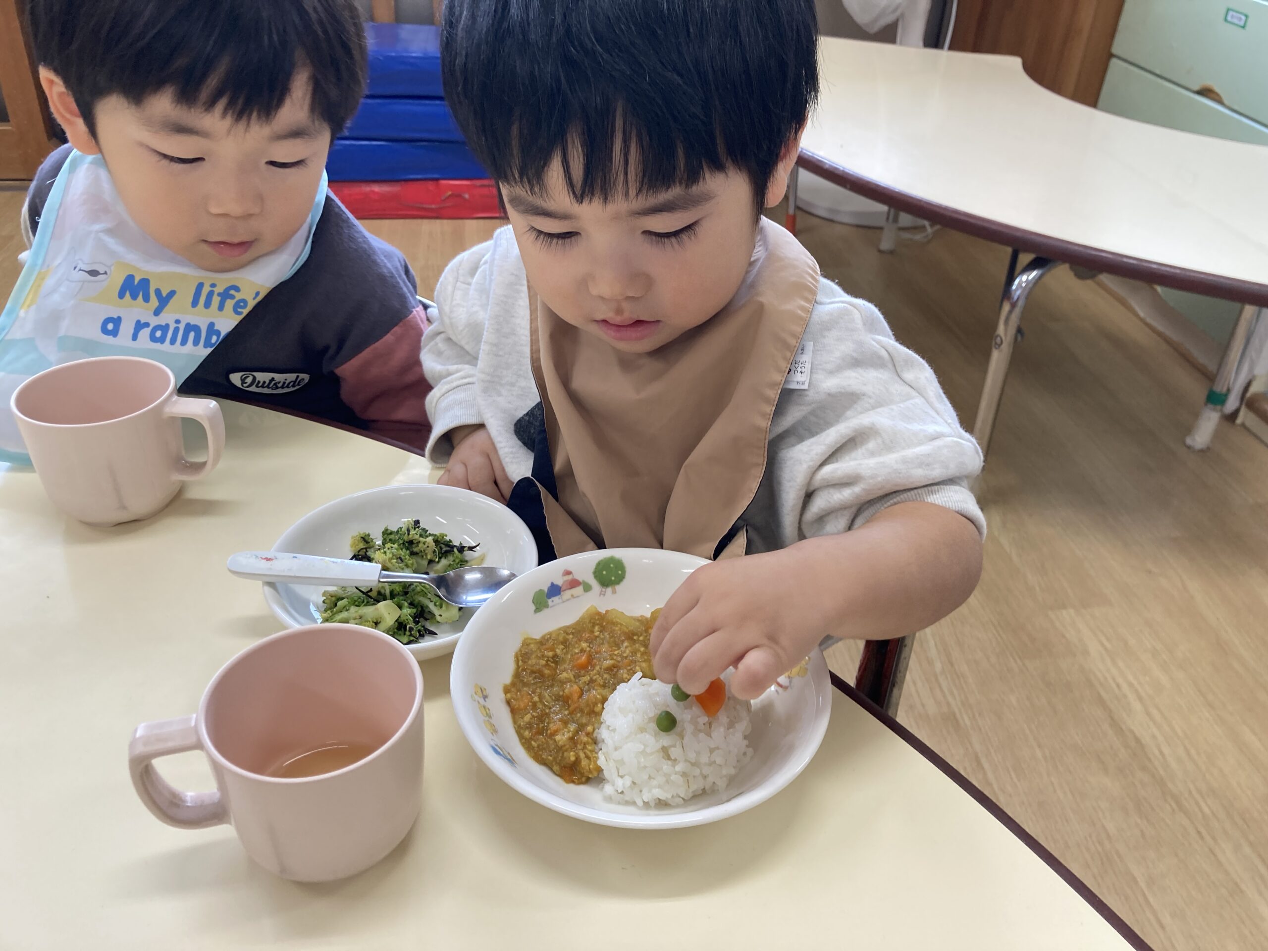 カレーライスに夢中な子もいれば、お顔を先にパクっと食べてしまう子もいましたよ。