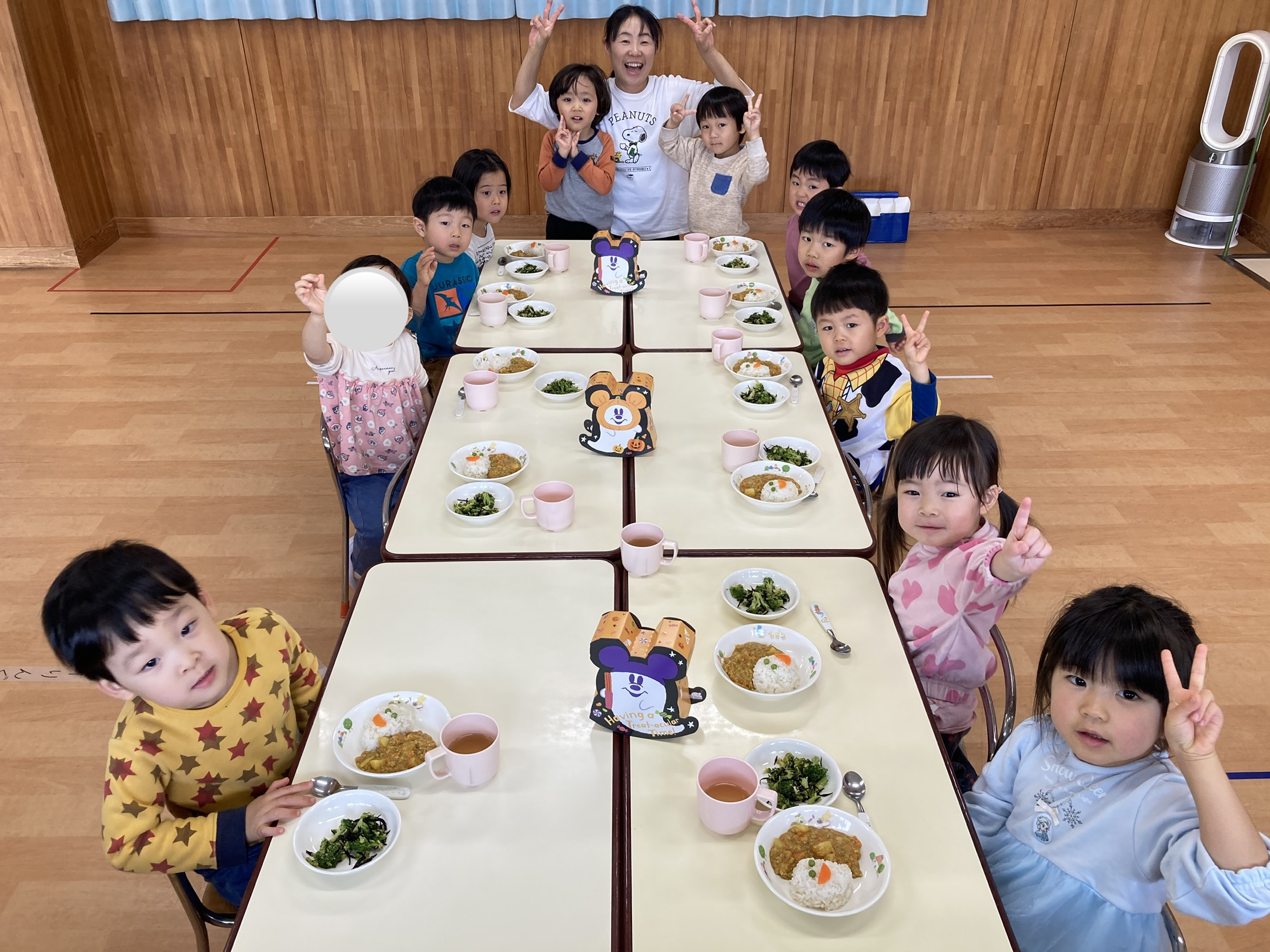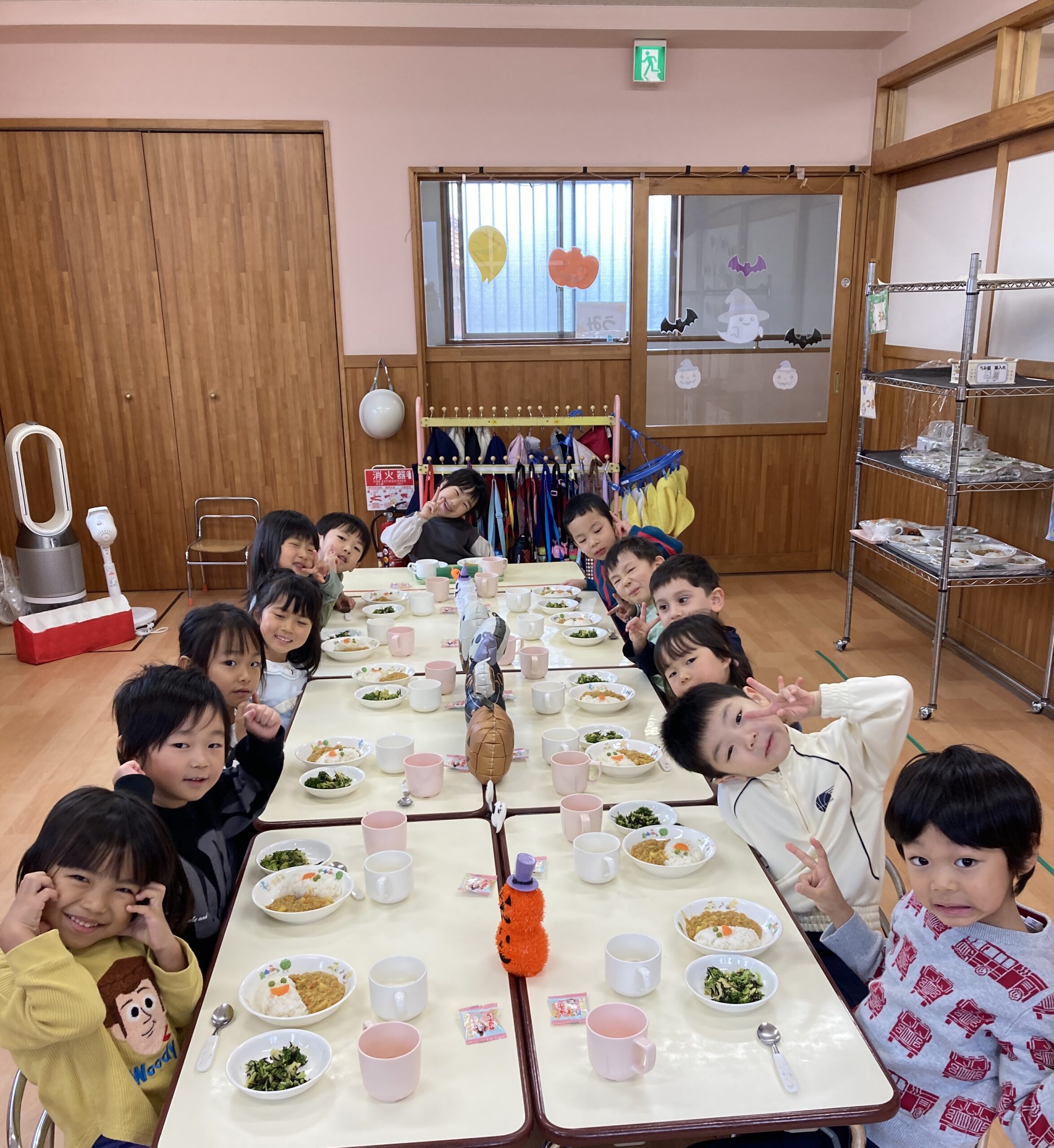 本日のメニューはハロウィンにちなんで「オバケカレー!!」子どもたちも大喜びでした!!