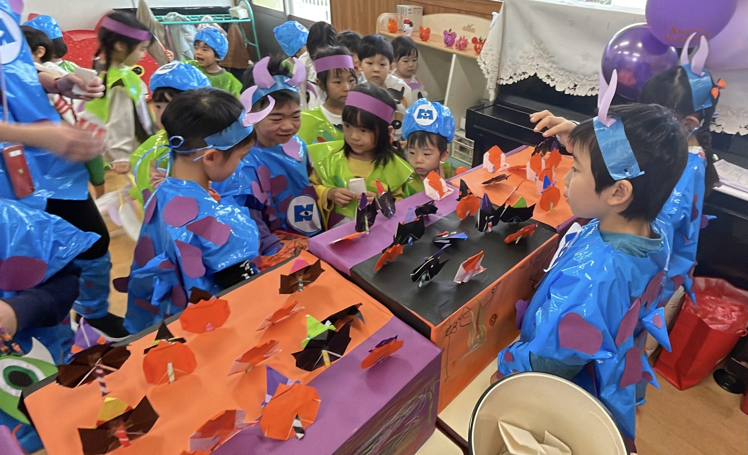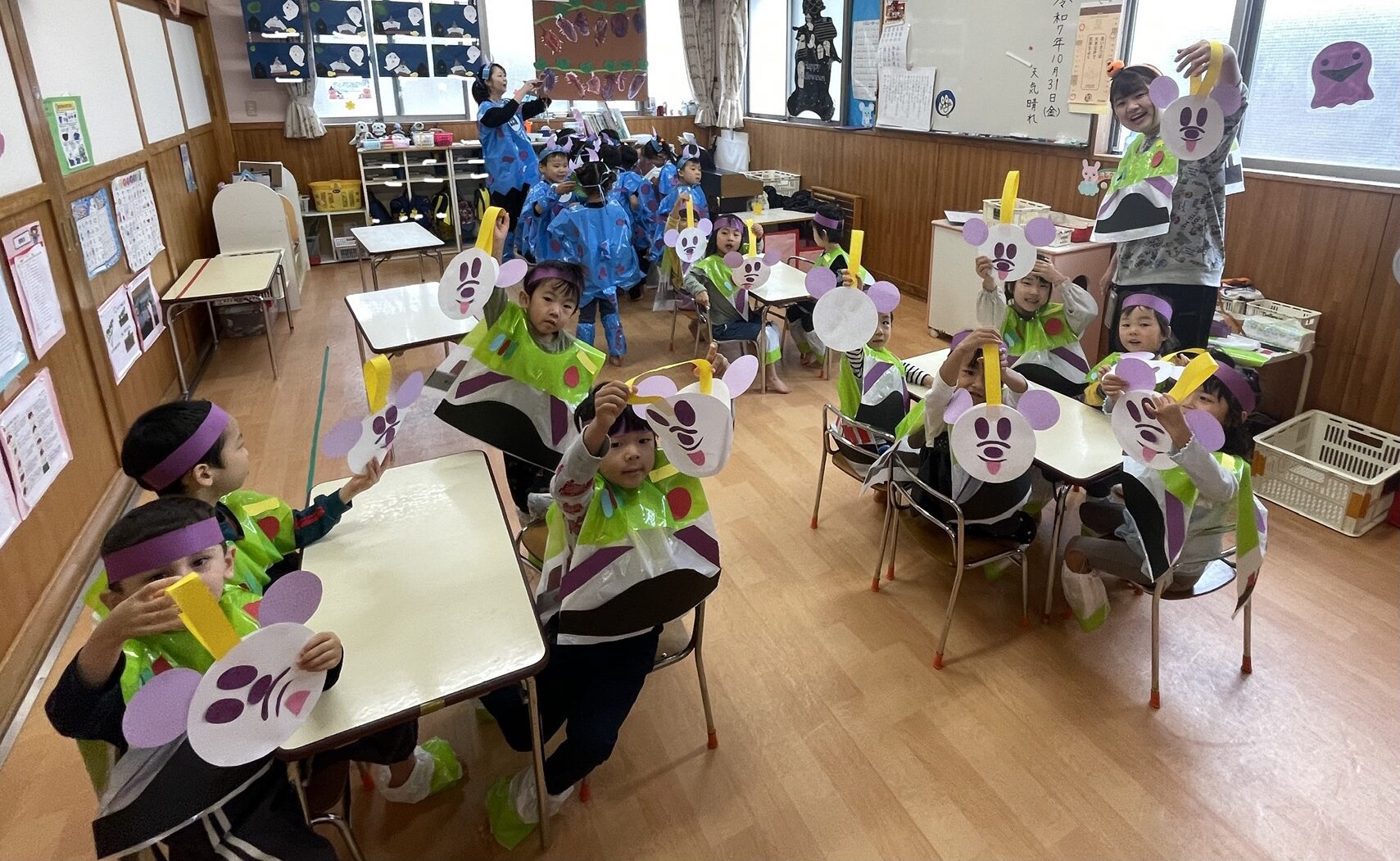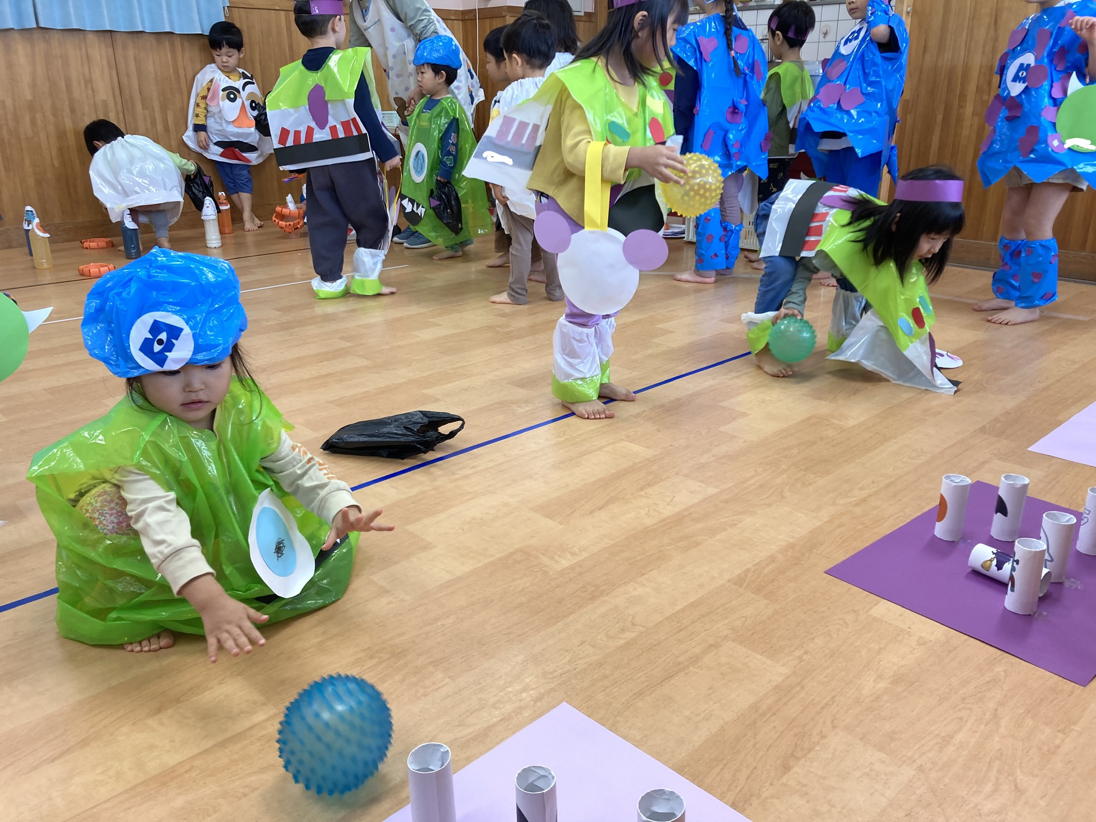 今年は、はな組・にじ組・うみ組・つき組の4クラス合同でハロウィンパーティーを行いました🎃