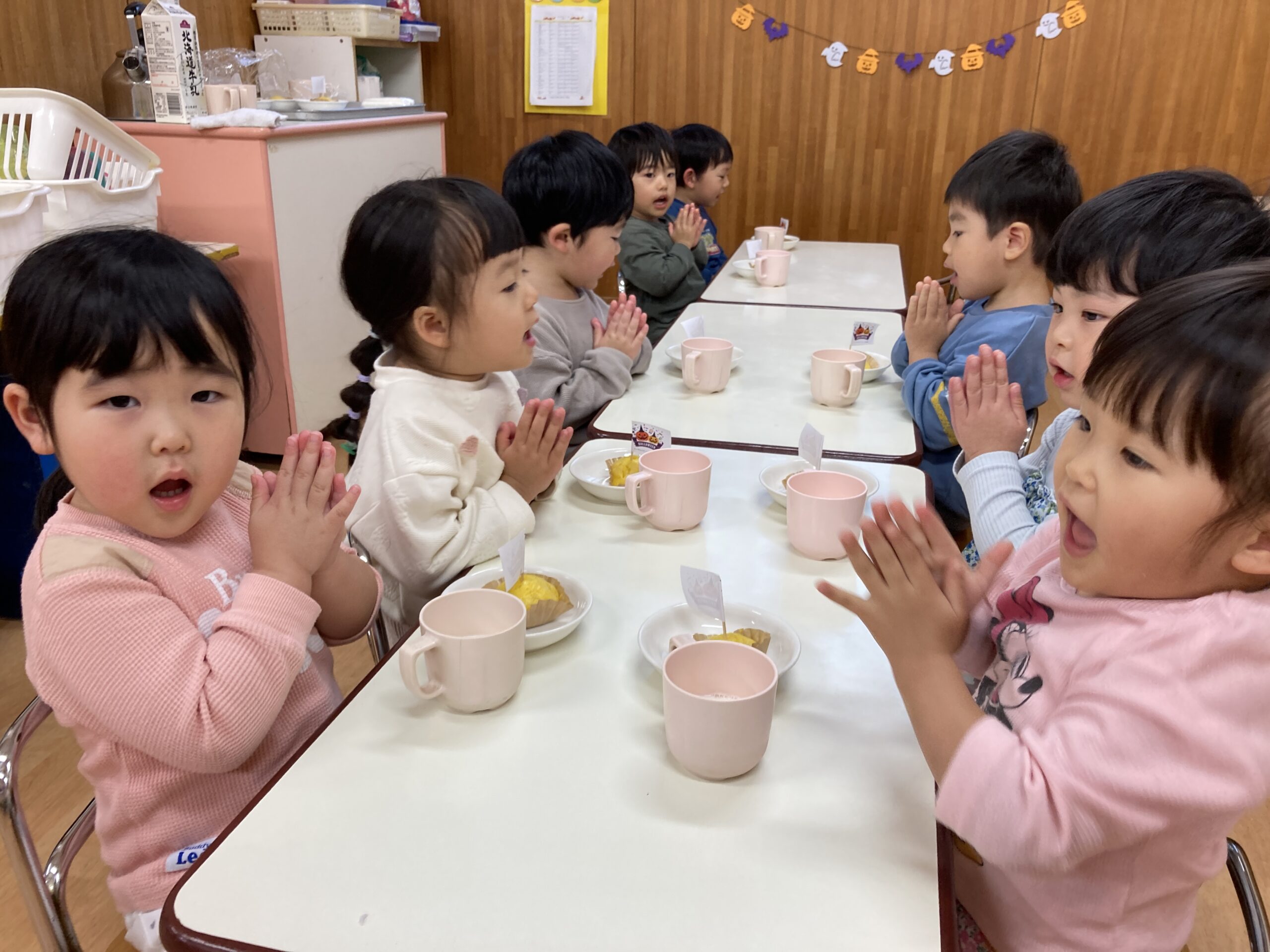 ハロウィンパーティーを存分に楽しんだ後は、楽しみにしていた給食の時間です♪
