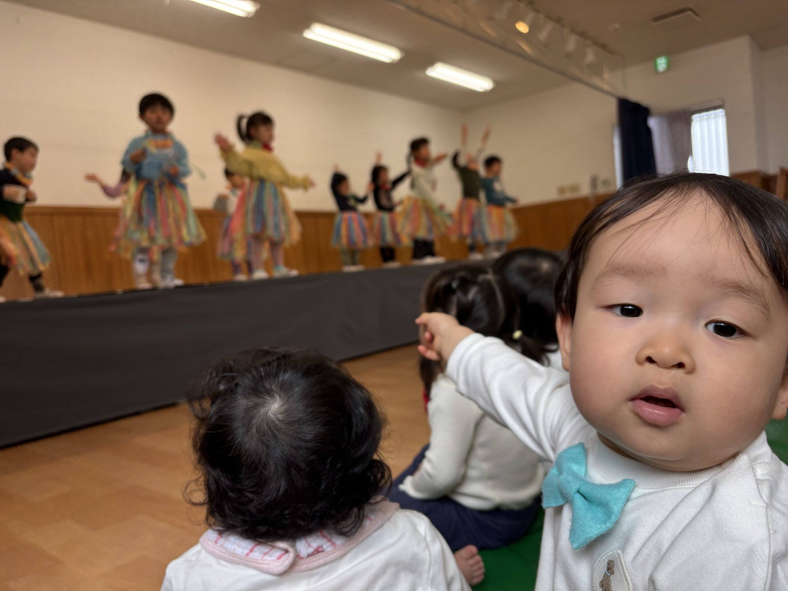 他のクラスの演目が始まると興味津々で見入っていたひかり組さん。「あっ!お兄ちゃんがいた〜」と教えてくれるお友だちもいます♪