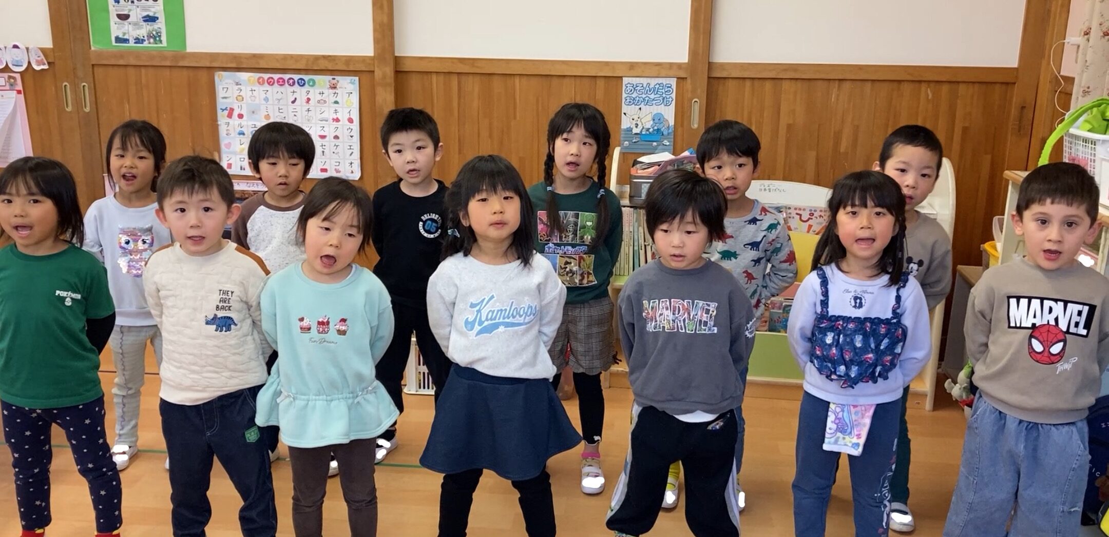 曲が体にしみついて遊びながらも口ずさんだりしている子どもたちです。