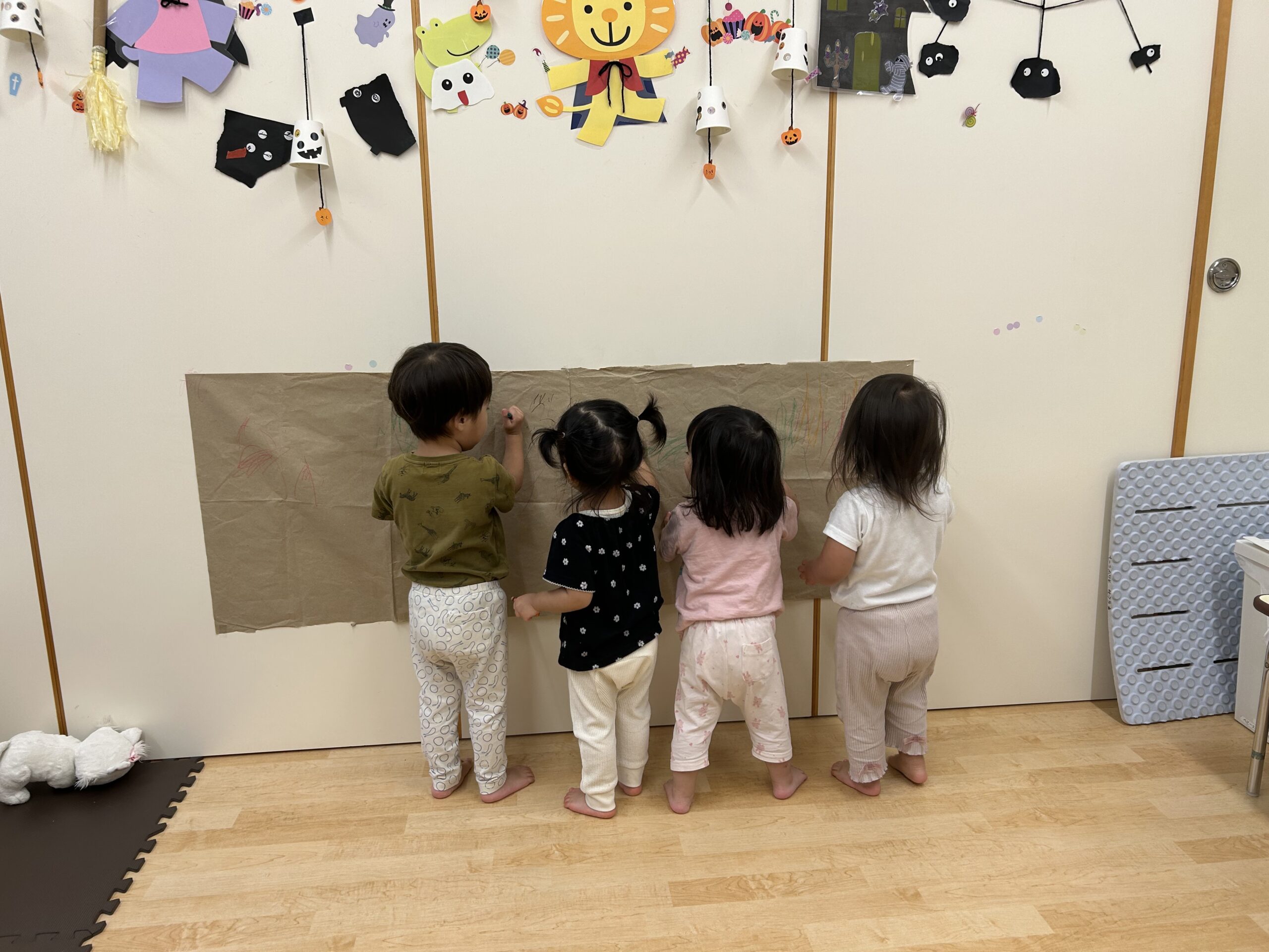 今月もたくさん遊びました。来月はもっと寒くなりなすね。体調に気をつけて元気に過ごしたいと思います。お散歩にも出かけますのでフードのついてない動きやすい上着のご準備をよろしくお願い致します。お待ちしてます!