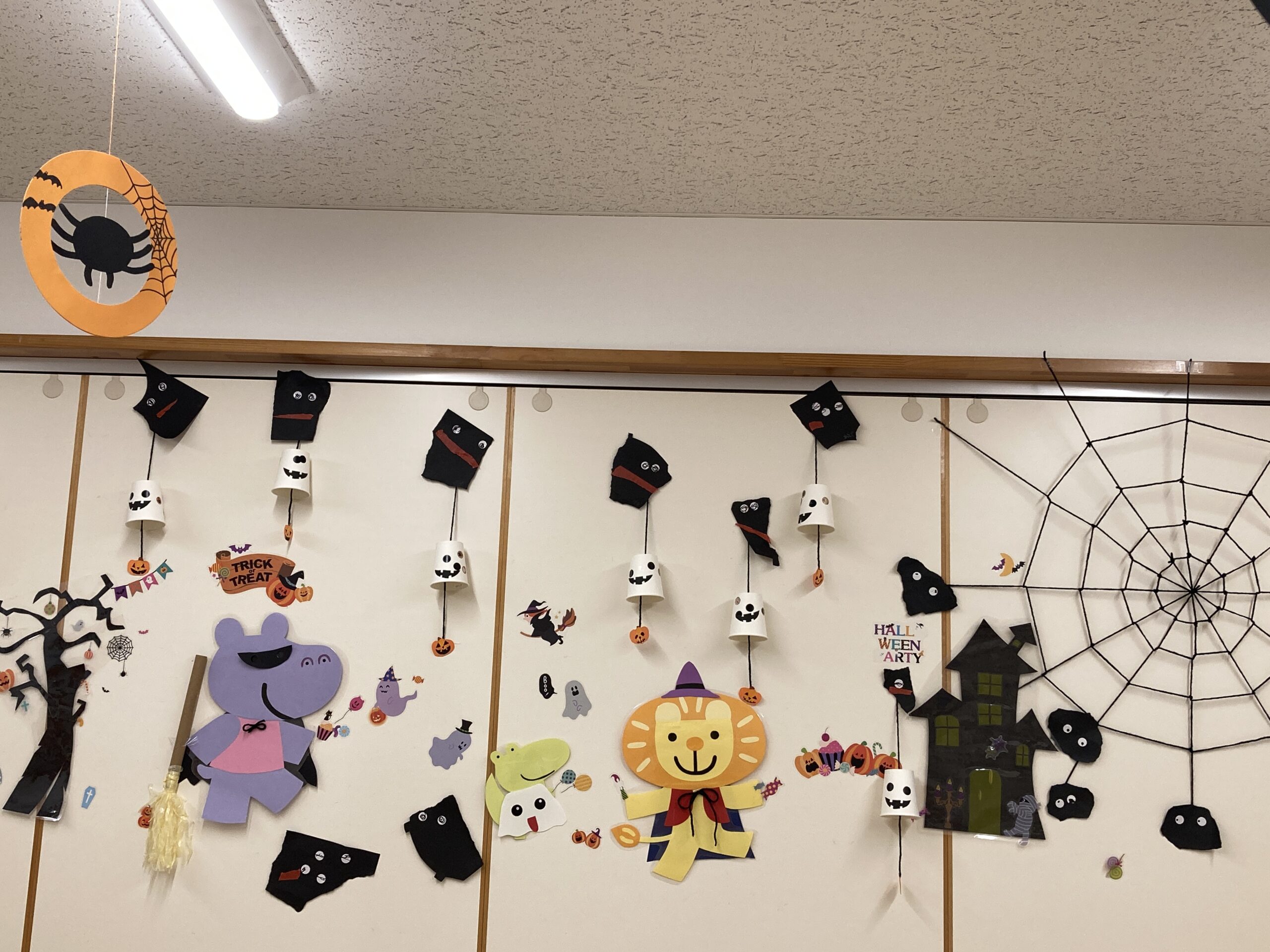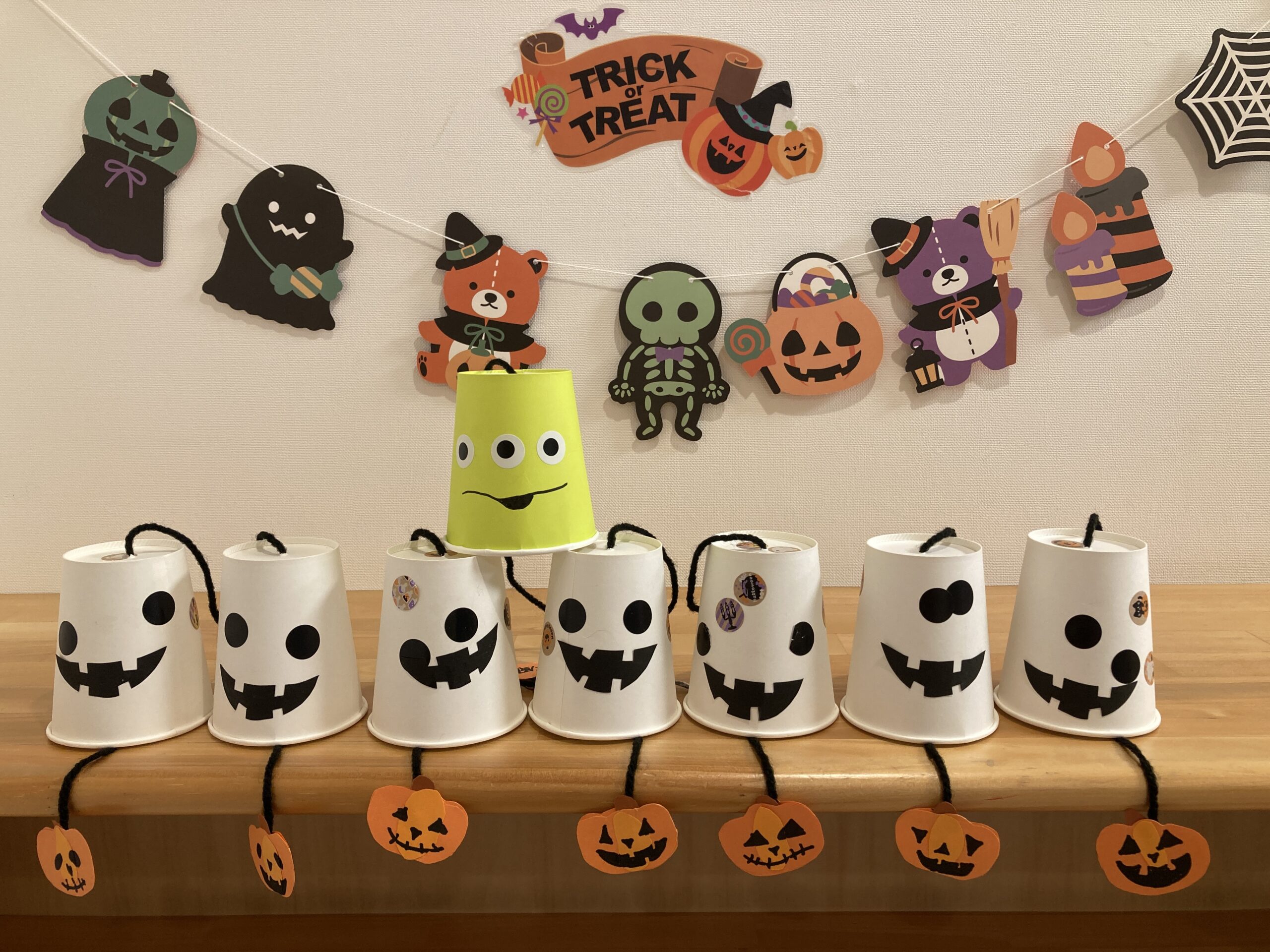 壁面製作はハロウィンにちなんで紙コップでお化けを作りました!