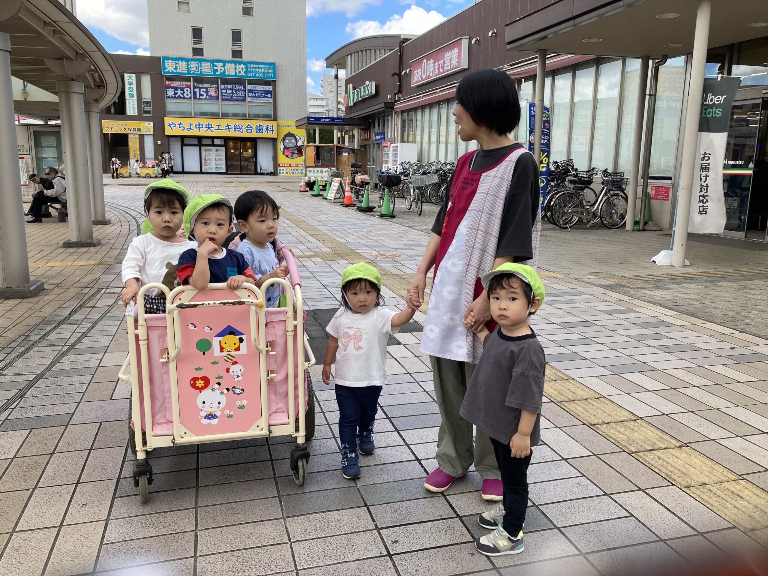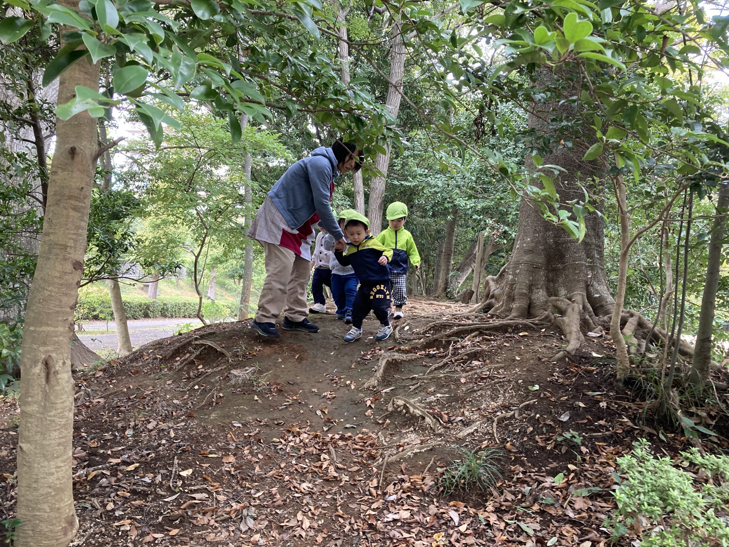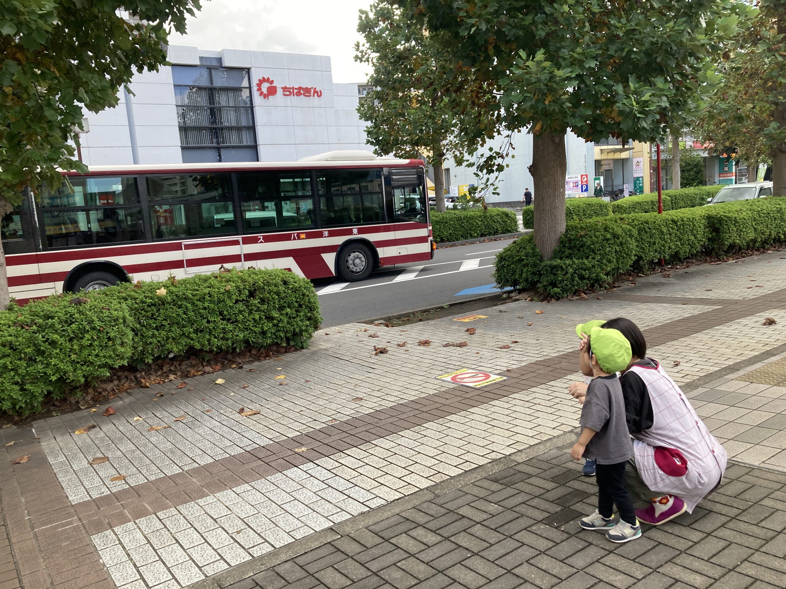 お散歩にも行きました♪駅周辺に電車や車を見に行ったり、近くの第五公園に念願のどんぐり拾いにも行きました。