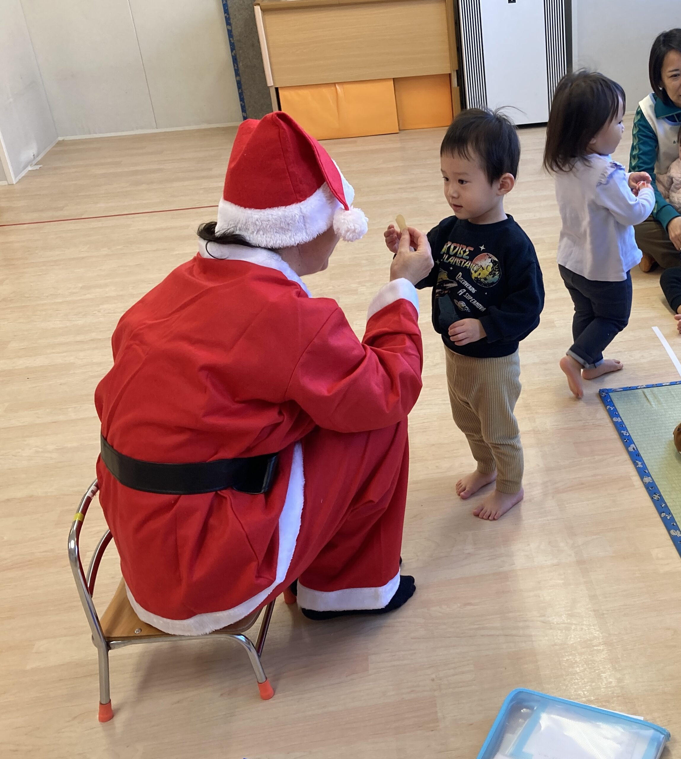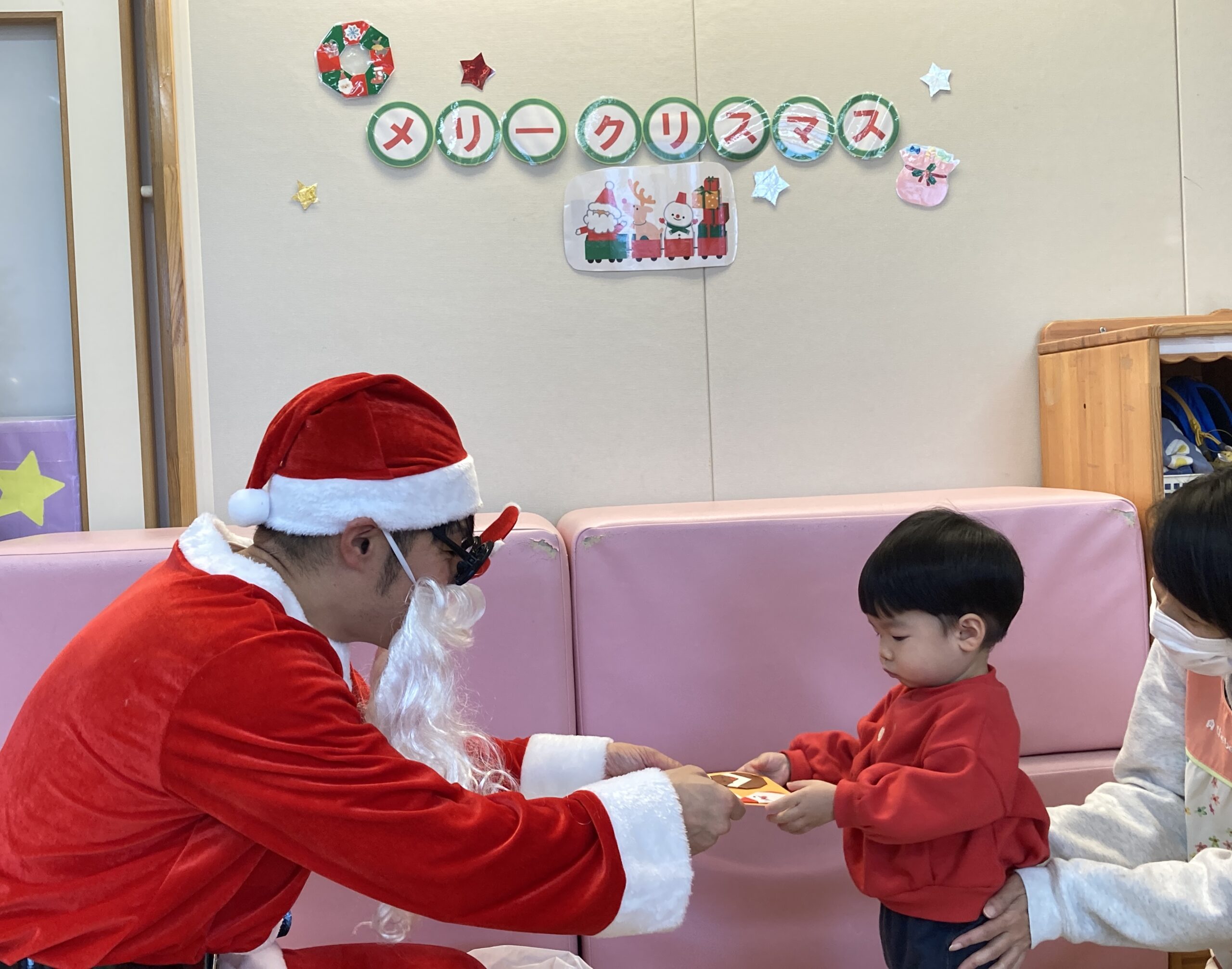 25日のクリスマス会でもサンタさんからカードのプレゼントを頂いました♪みんなちょっぴり緊張していましたが…楽しいひと時を過ごすことができました。