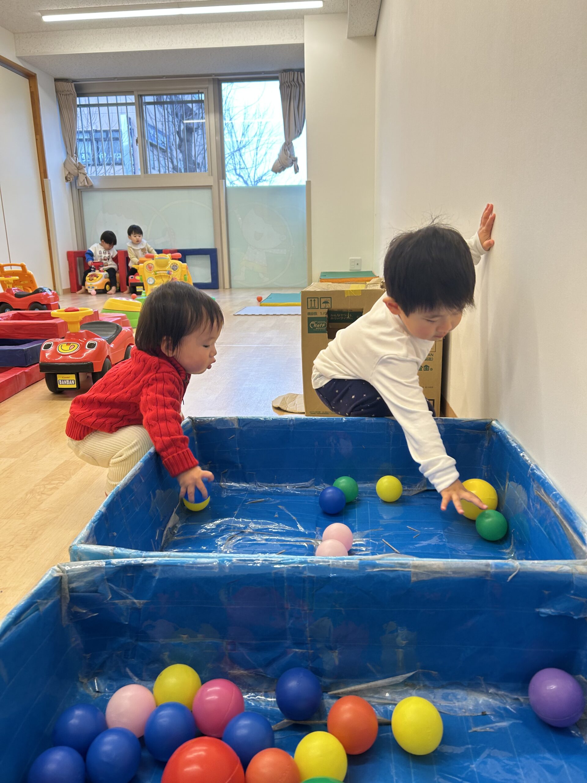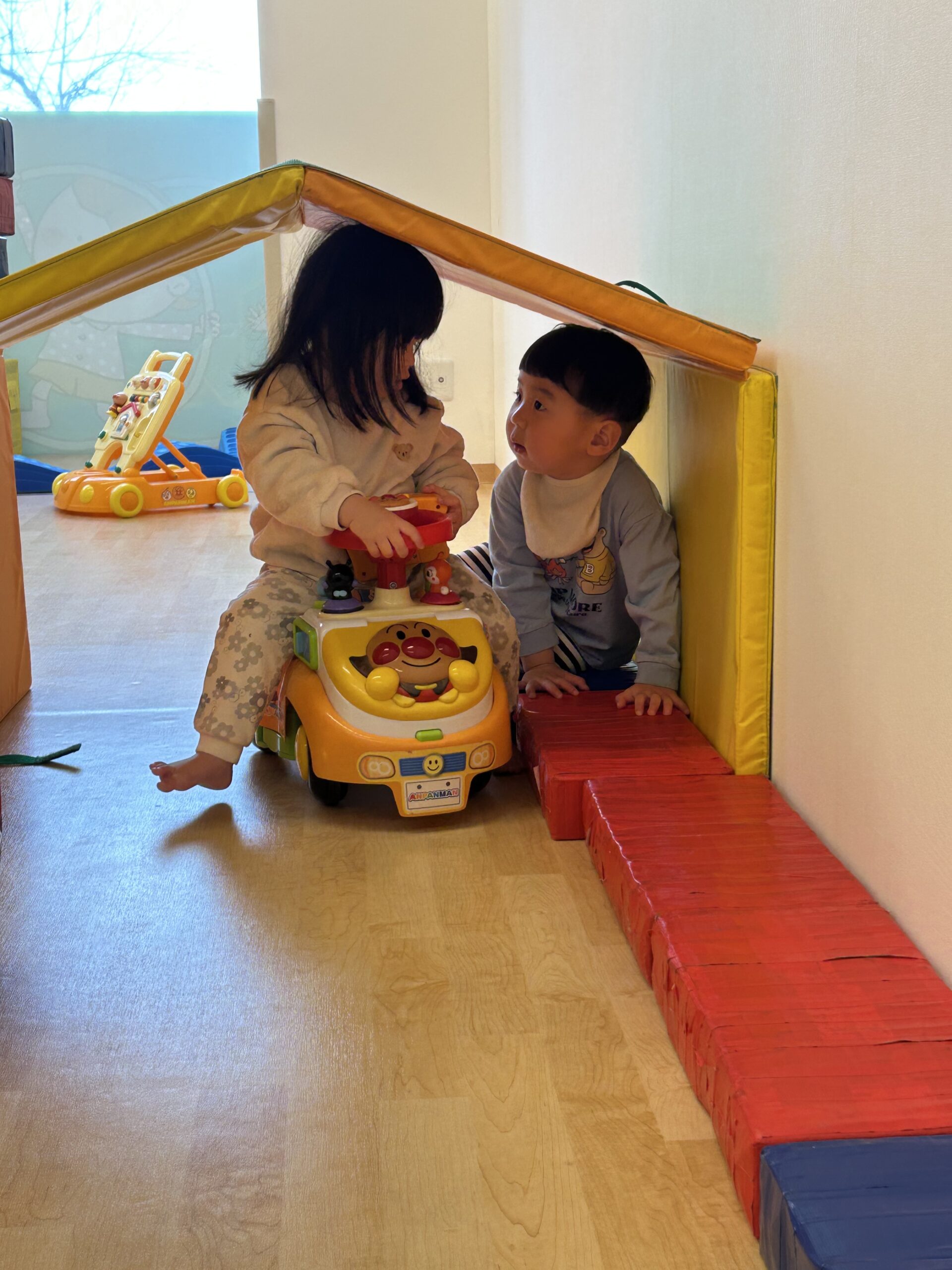 お部屋では顔馴染みのお友達も増えて仲良く何やらお話して遊ぶ姿が見られてきました。