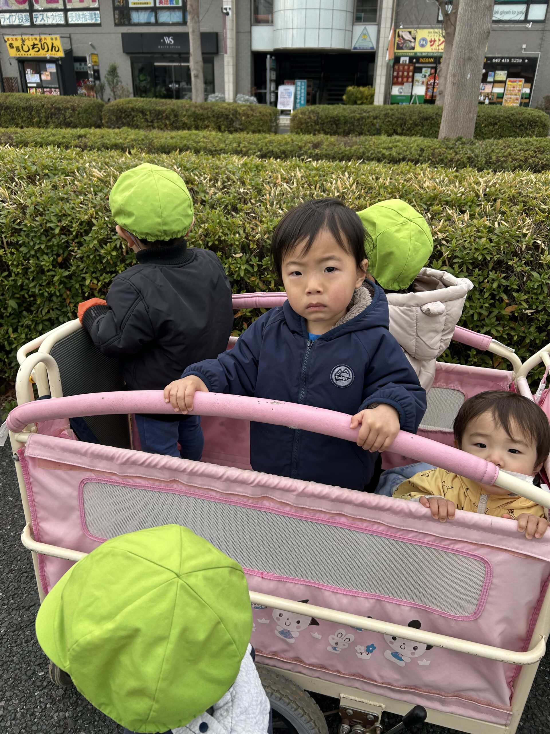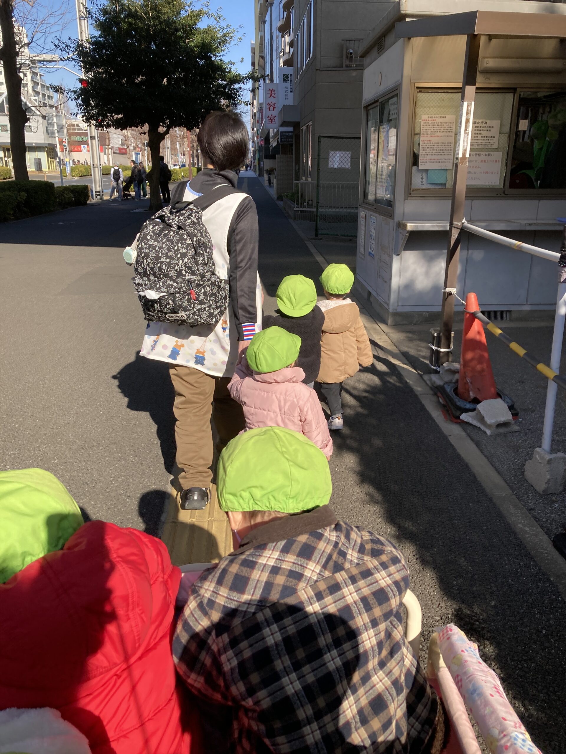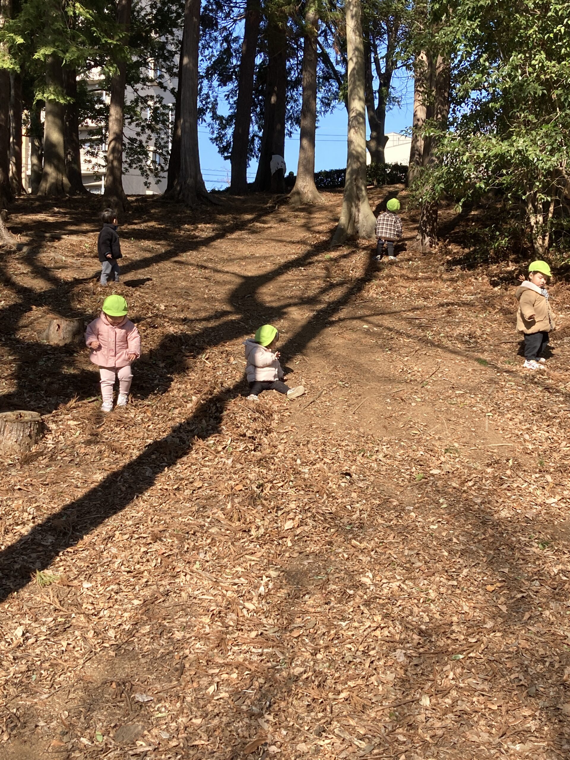 年が明けて早いもので1ヶ月。暖かい日には第一緑地にお散歩に出かけました。「今日は暖かいね♪」「今日は寒いね〜。」とお話しながら元気にお外でも遊べました。