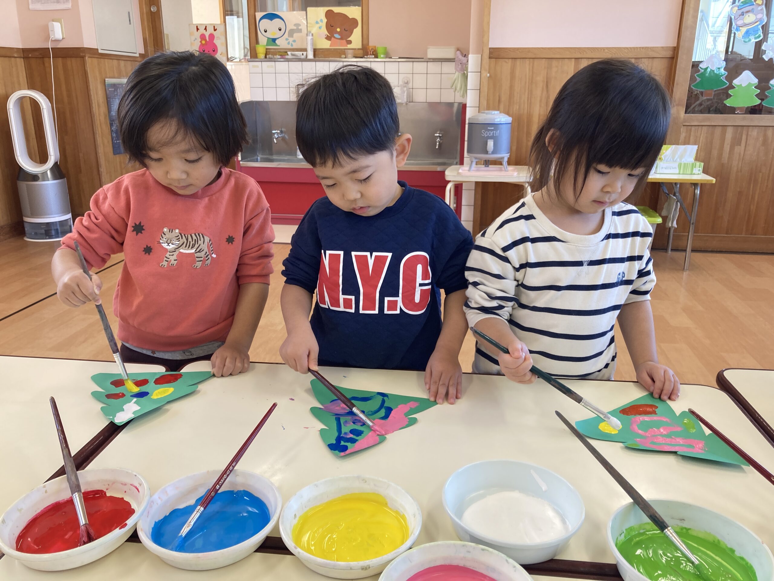 絵の具でクリスマスツリーの飾り付けをしました。