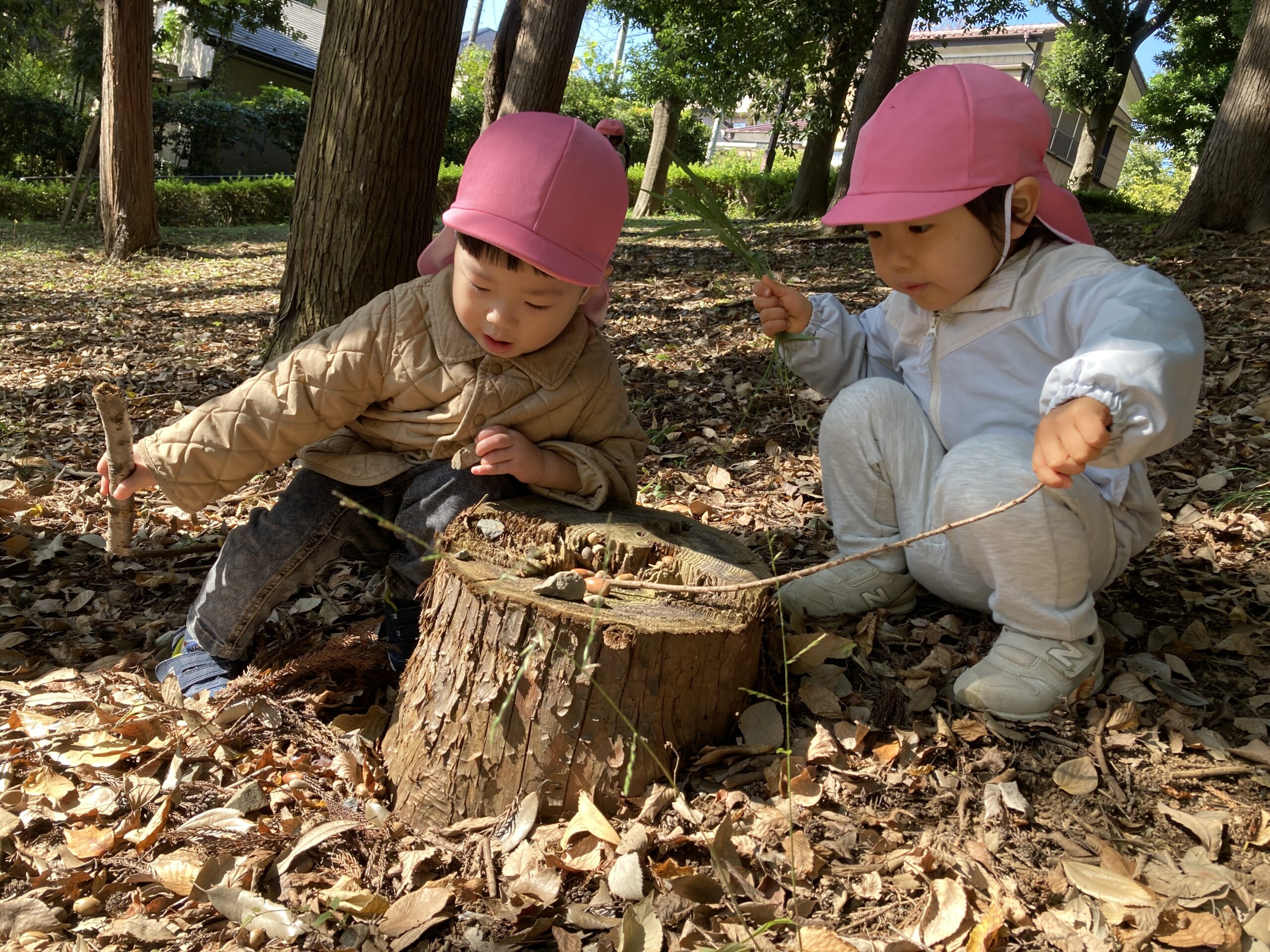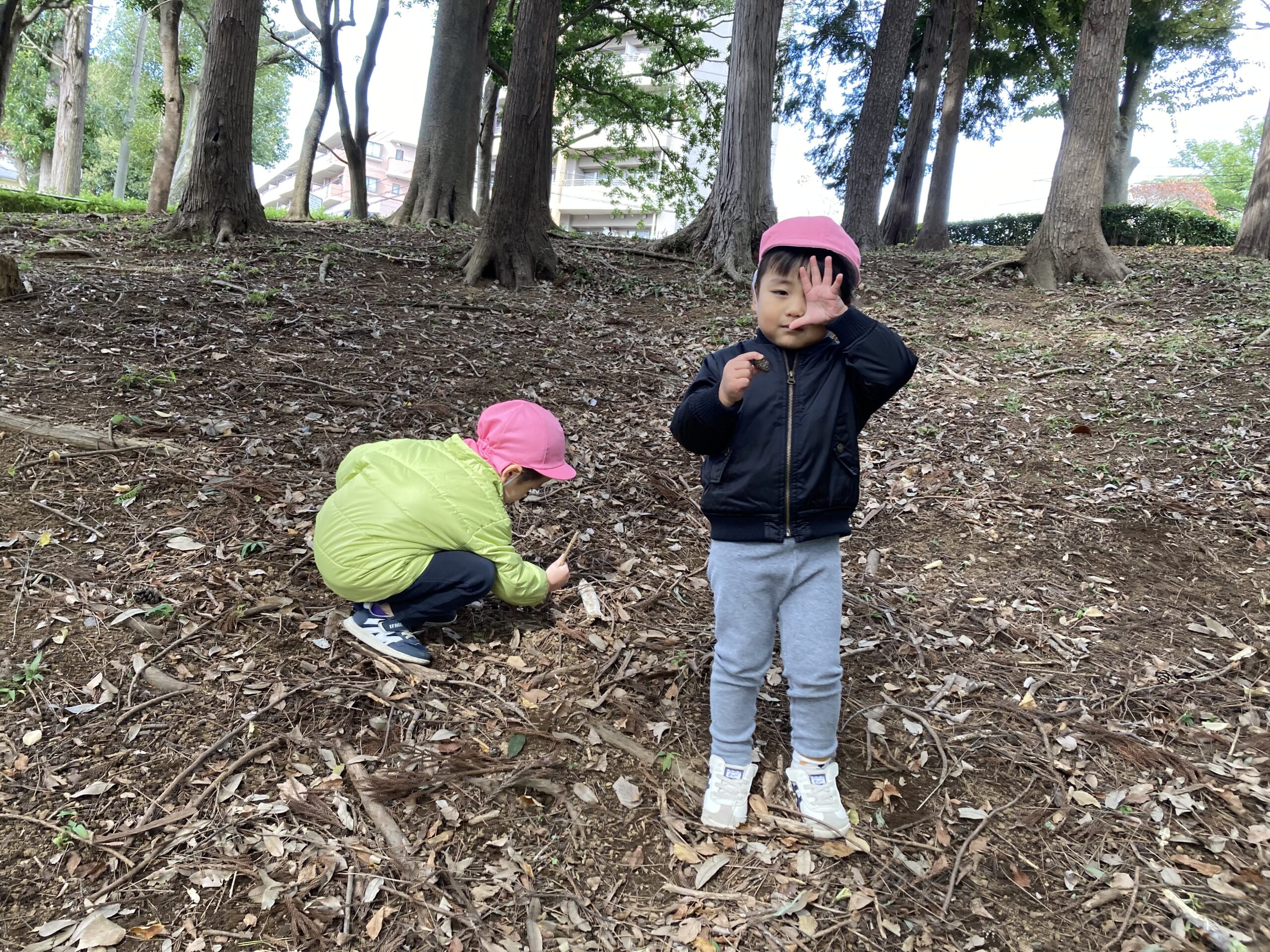 まつぼっくりやどんぐりも沢山あり集めることを楽しんでいます!