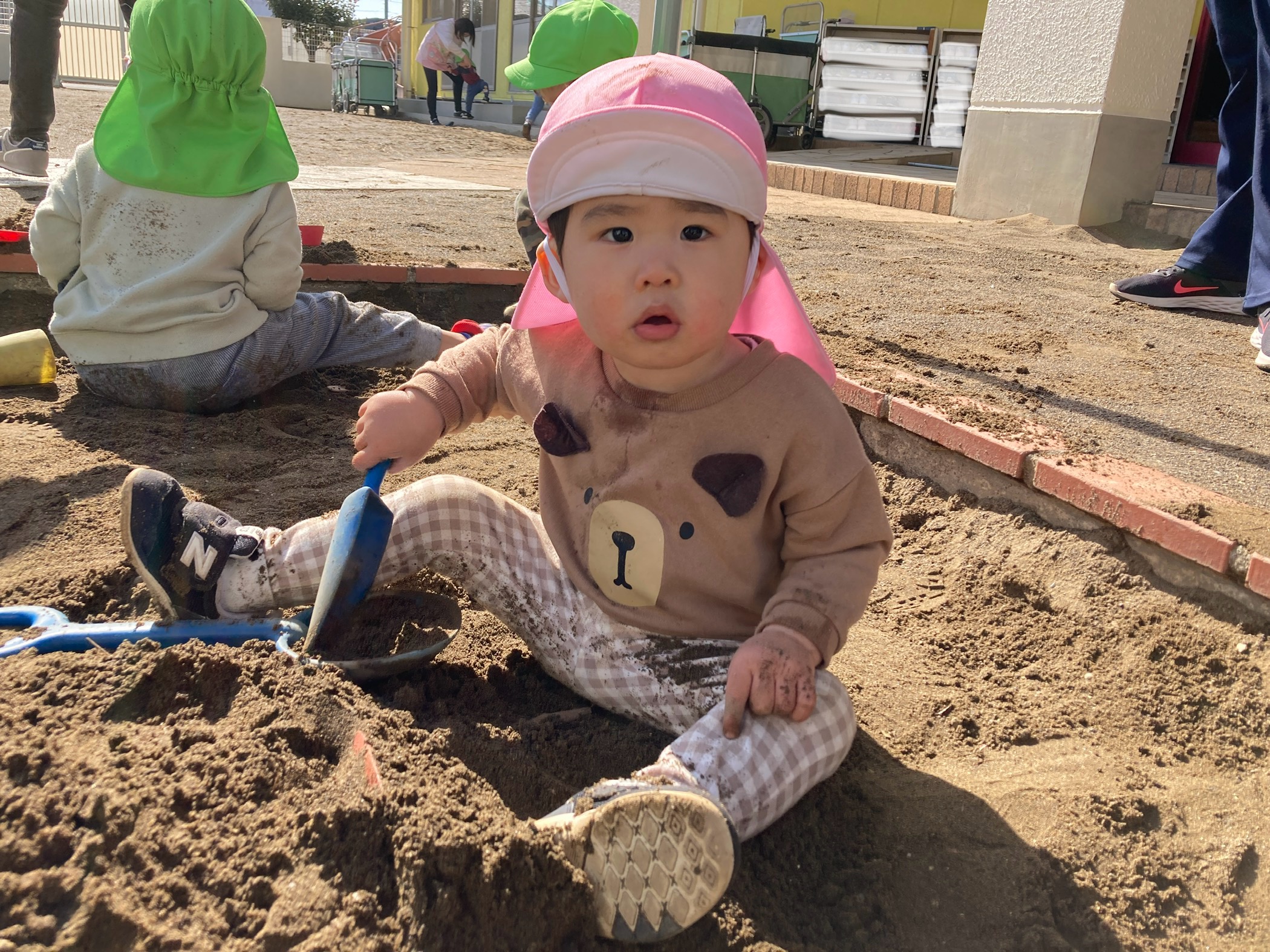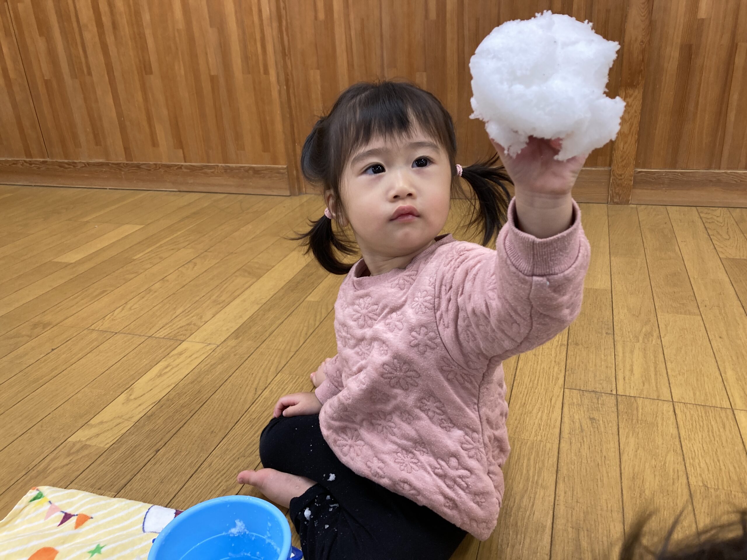前日にお家でも雪遊びをしたお友達は、掴んで持ち上げたりしていました♪