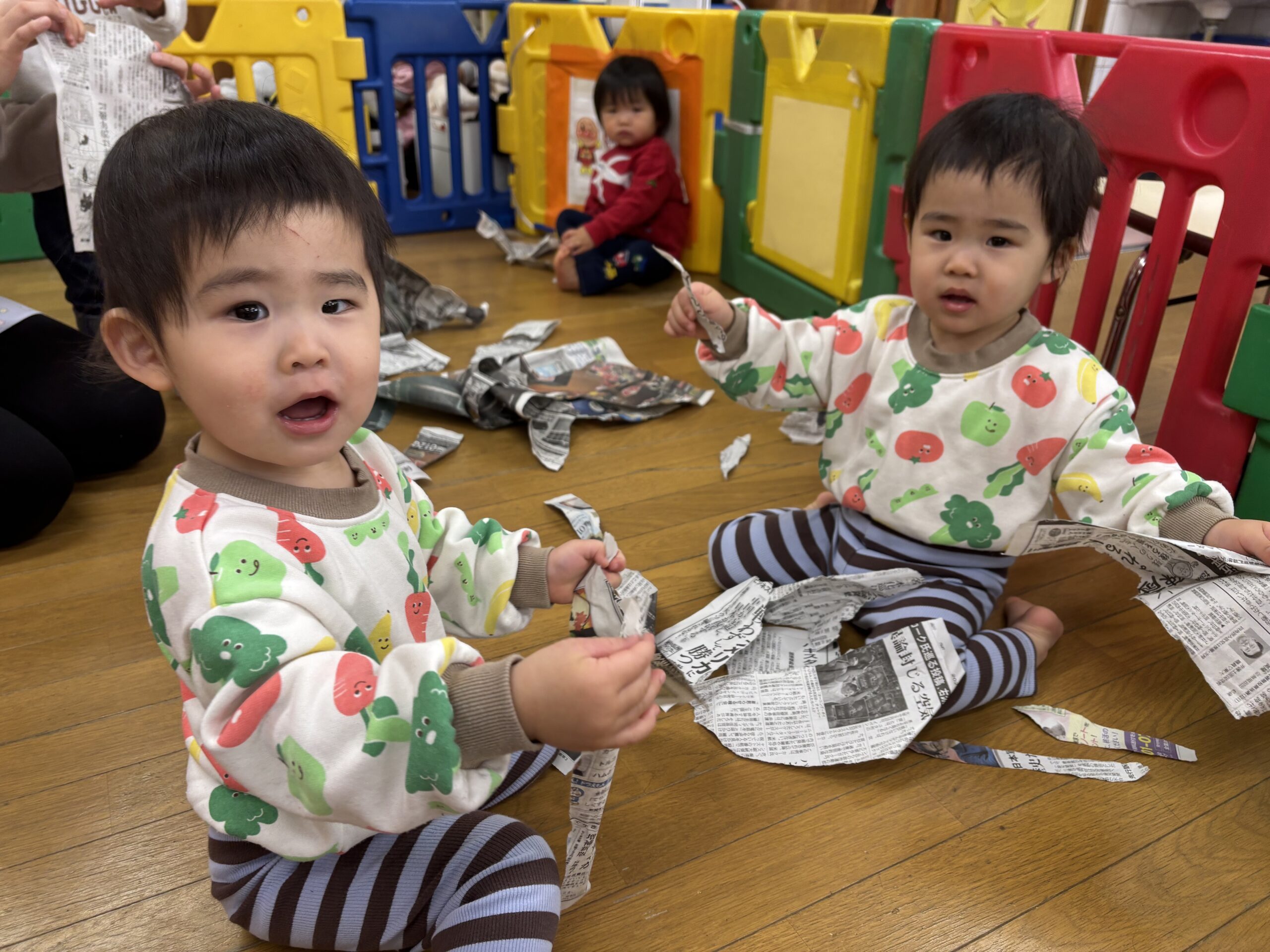 新聞紙遊びをしたり…