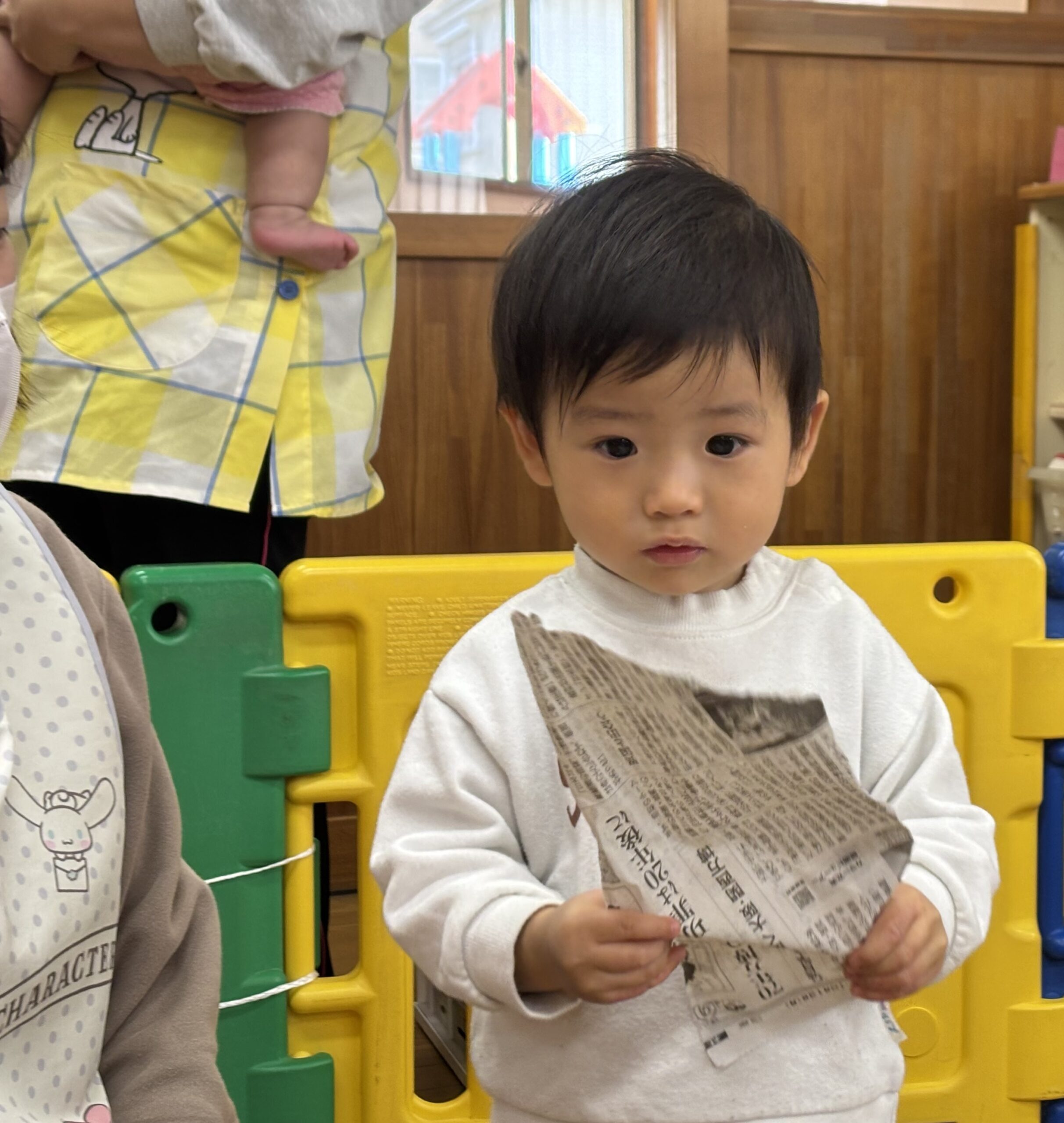 新聞紙遊びをしたり…