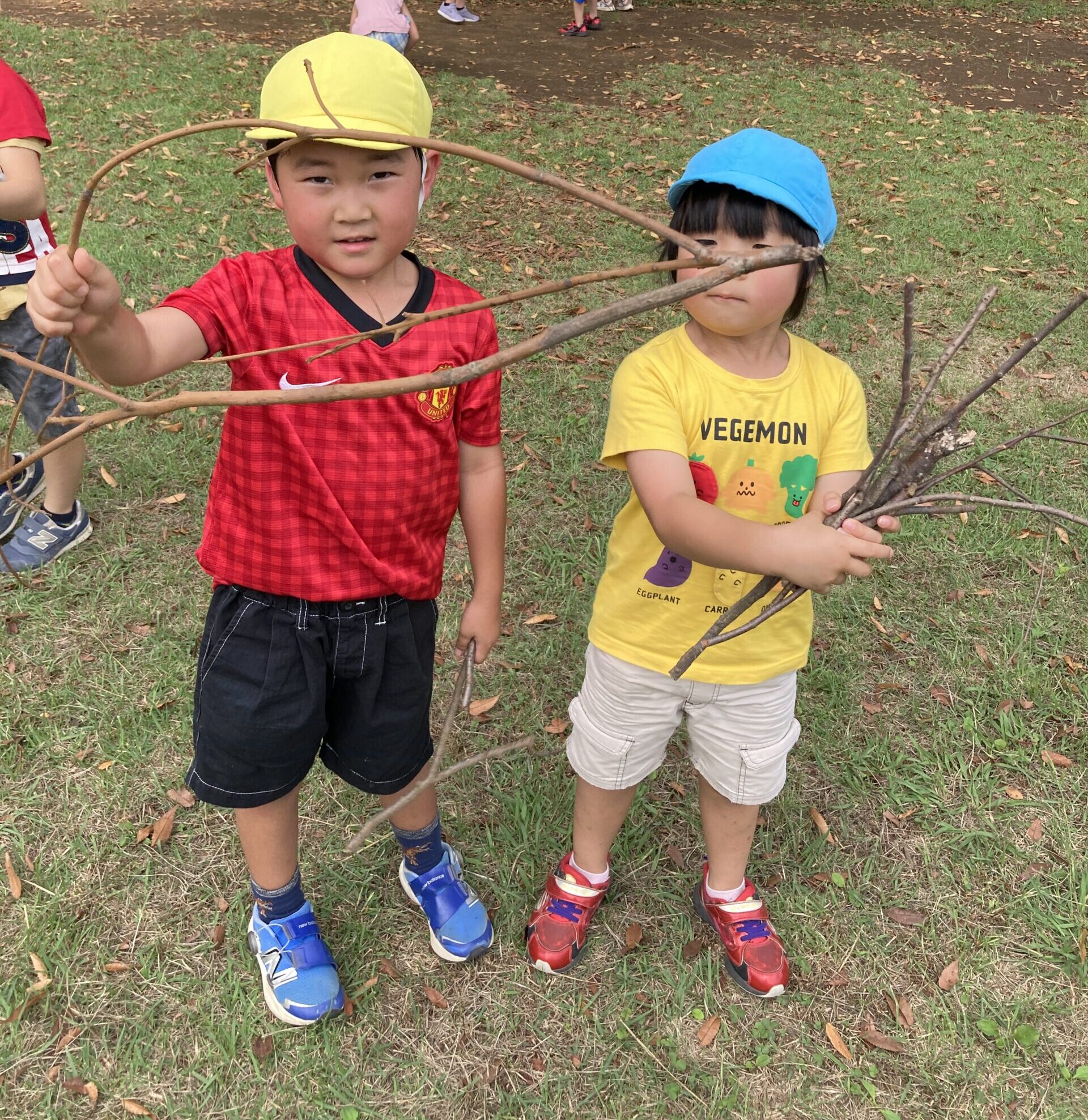 大きな枝を見つけて「先生~見て~!大きいの見つけたよ!」「いっぱい集めたよ!」と報告してくれました!