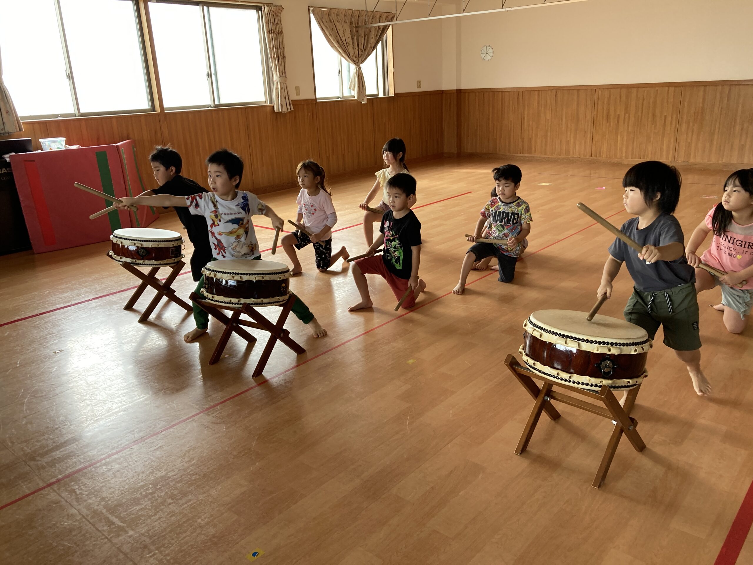 こちらは太鼓の様子です!9月から再開した和太鼓!運動会練習もありますが、毎週行われる太鼓はまた特別楽しみにしています。