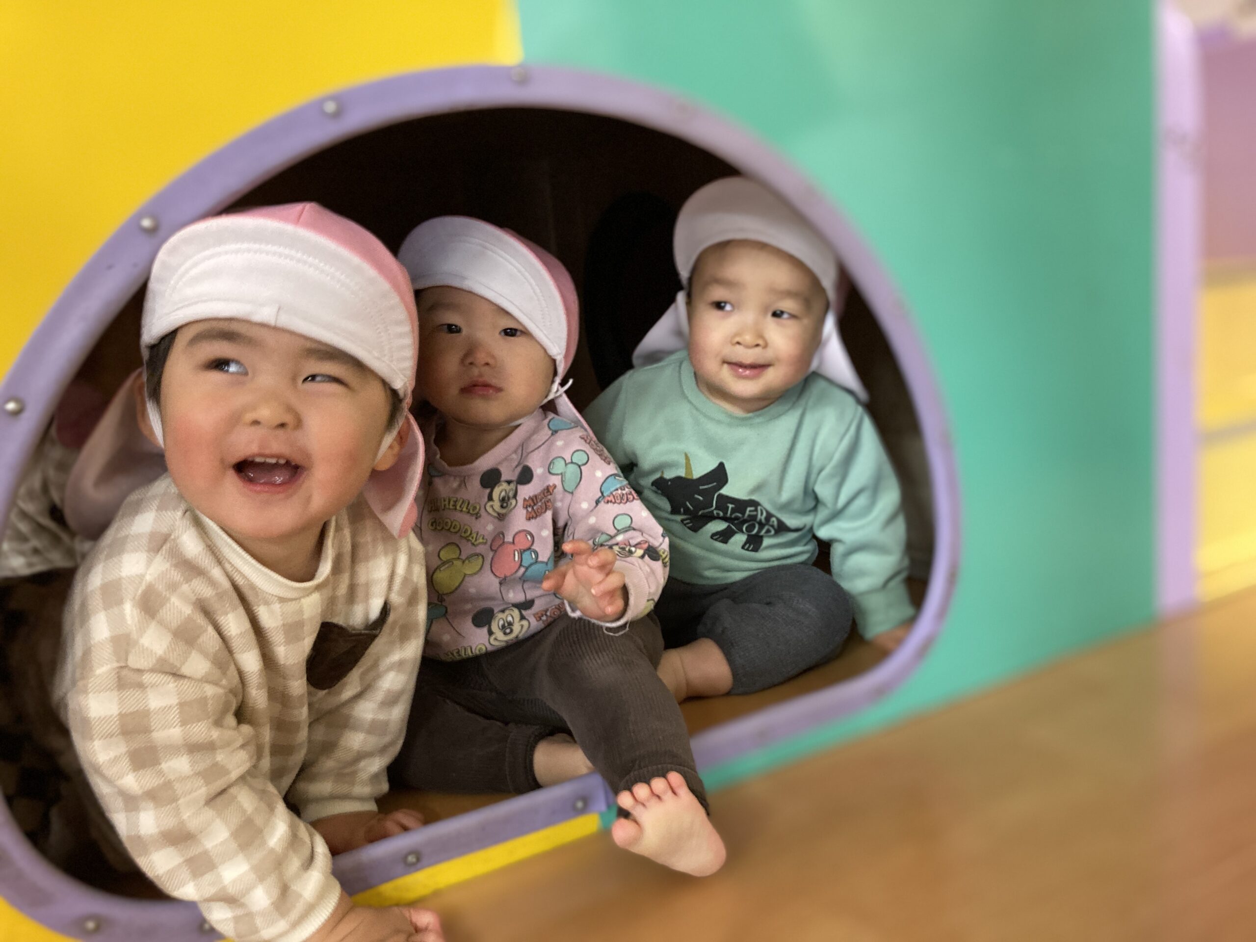 この一年で、子ども達はたくさんの「初めて」を経験し、笑顔いっぱいで大きく成長しました。泣いていた子が安心して遊べるようになったり、お友達や保育者と笑い合う姿もたくさん見られるようになりました😊
