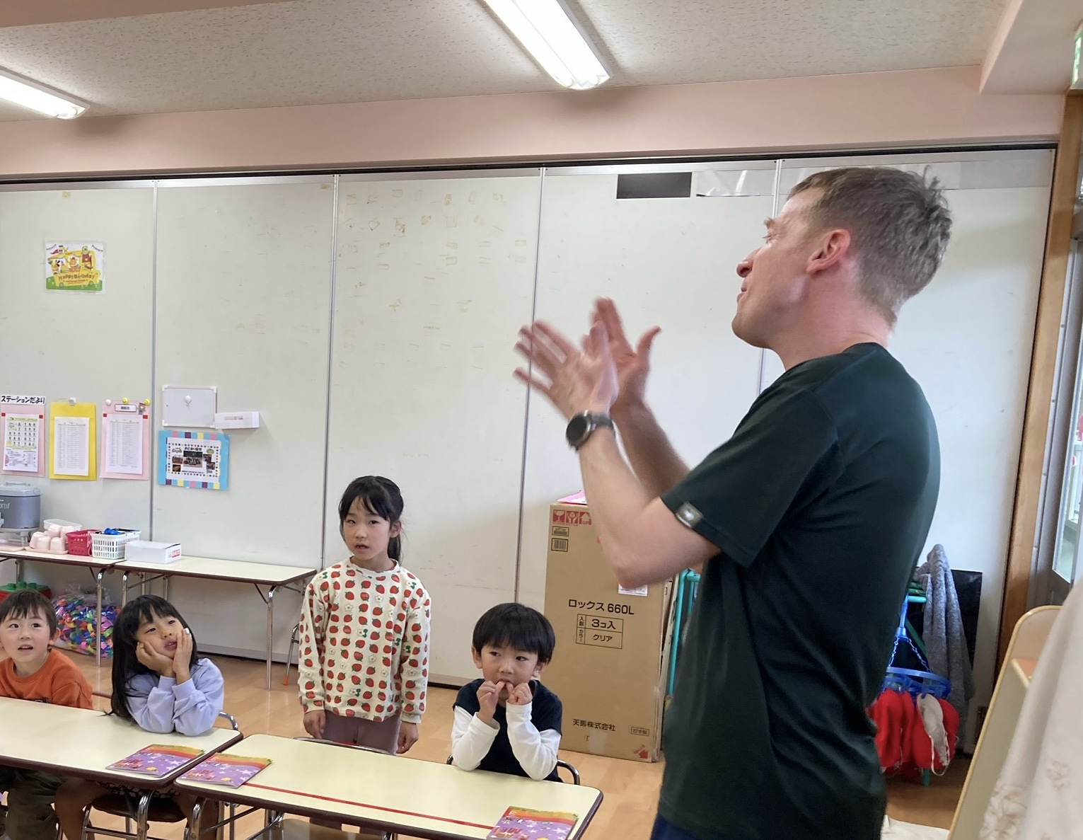 一人ひとり、先生からのquestionに、「I′m 3」と答えていましたよ✨