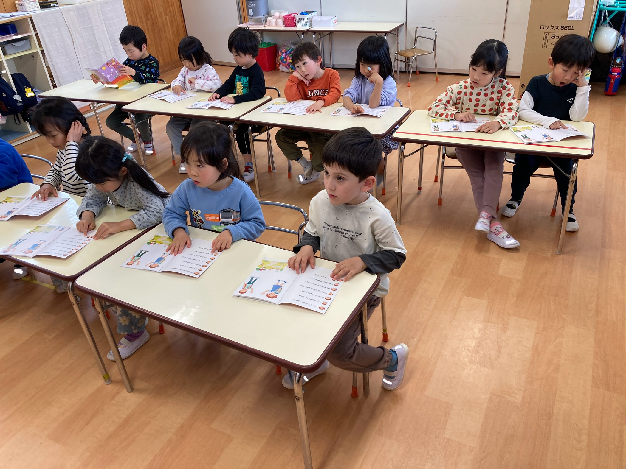 にじ組クラスから、英語のテキスト「リーダー」を使います。