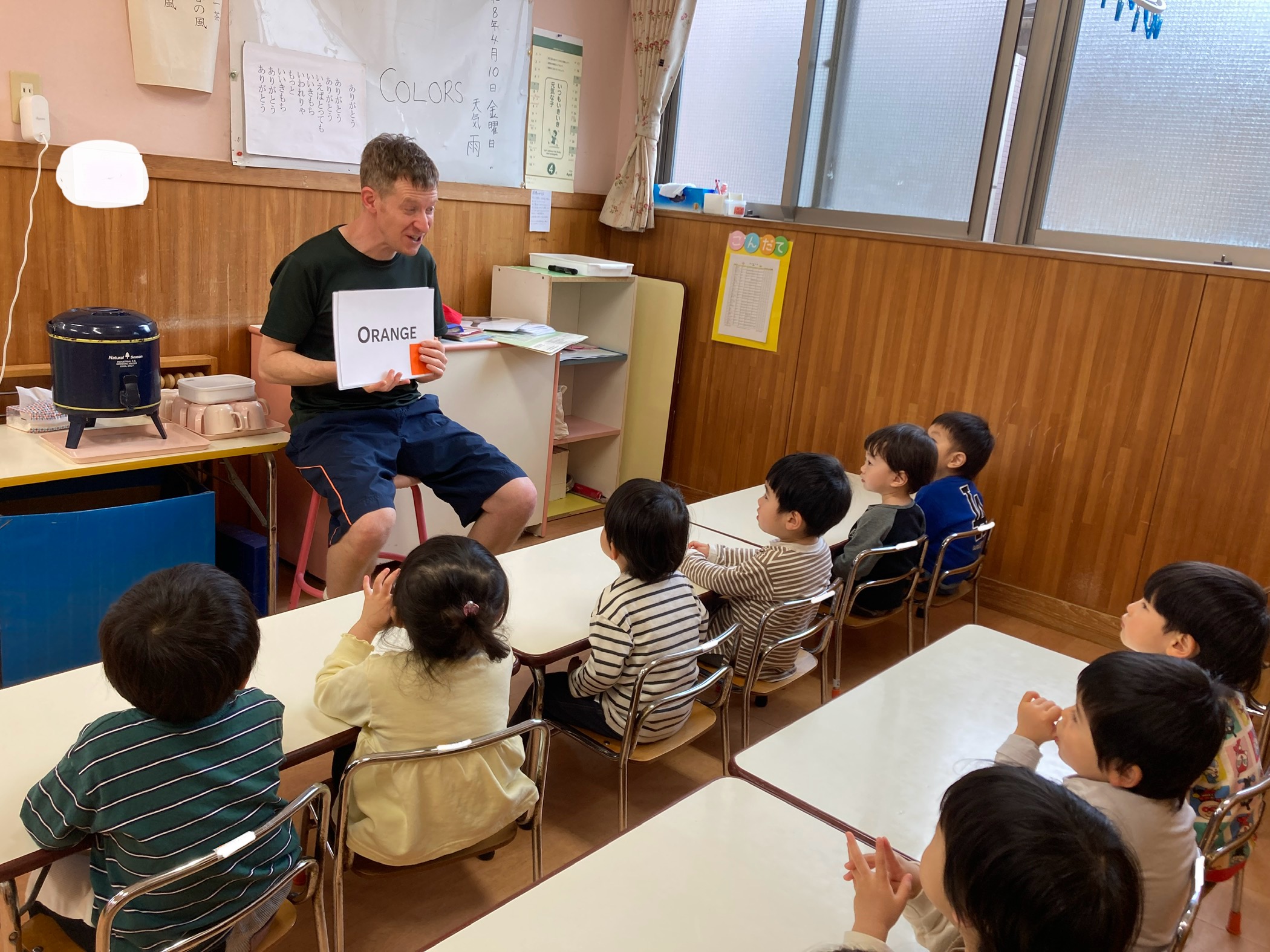 バーニィ先生から「I like green」はどこ? 見つけると元気に教えてくれました!