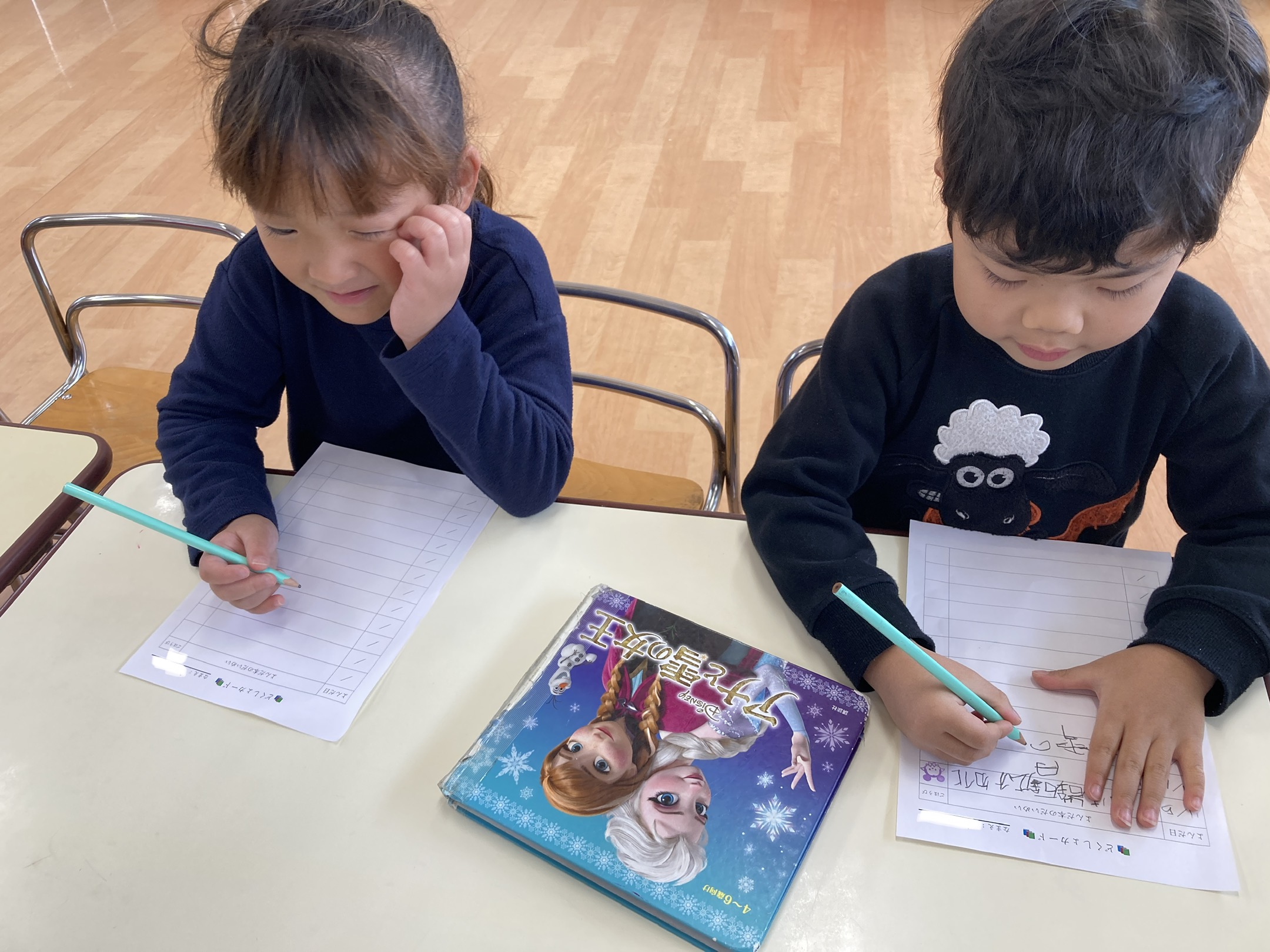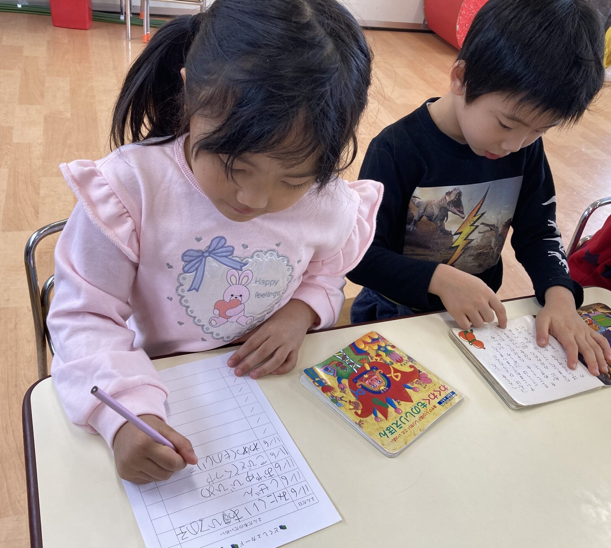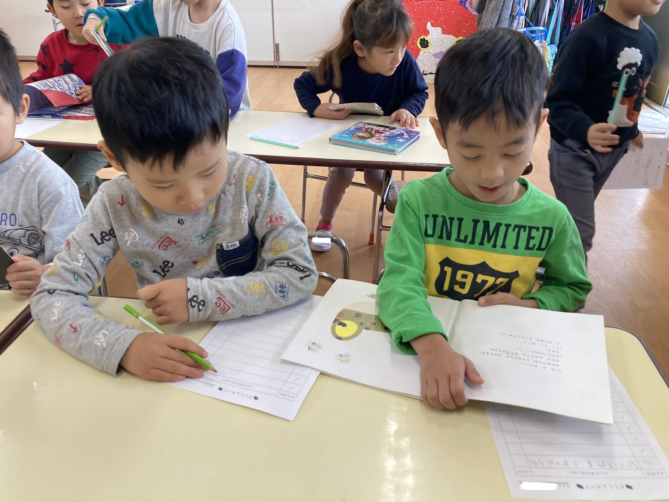 本を読むのが大好きなつき組!今月から「読書カード」を利用して、自分で読んだ本を書きだしています!