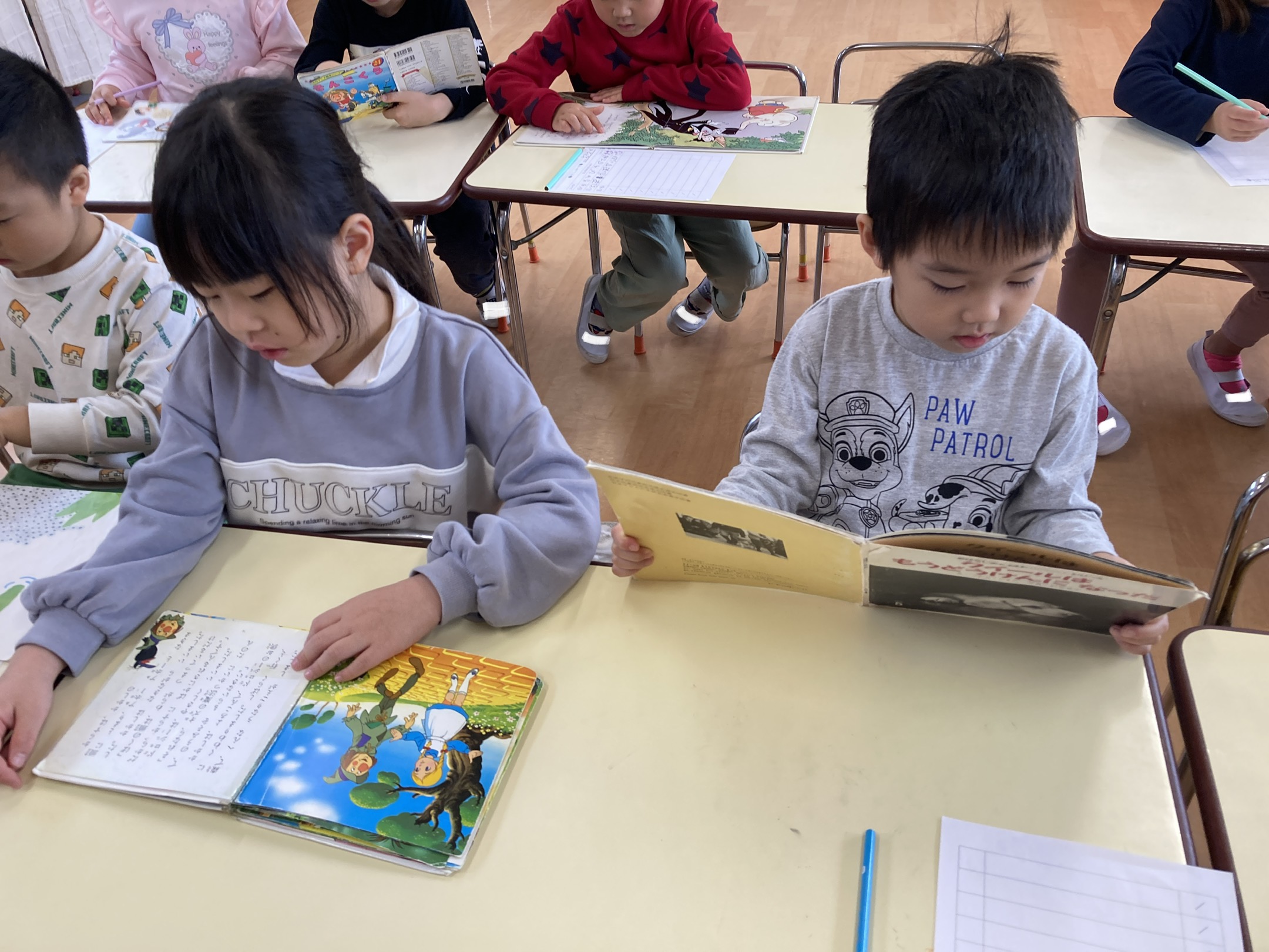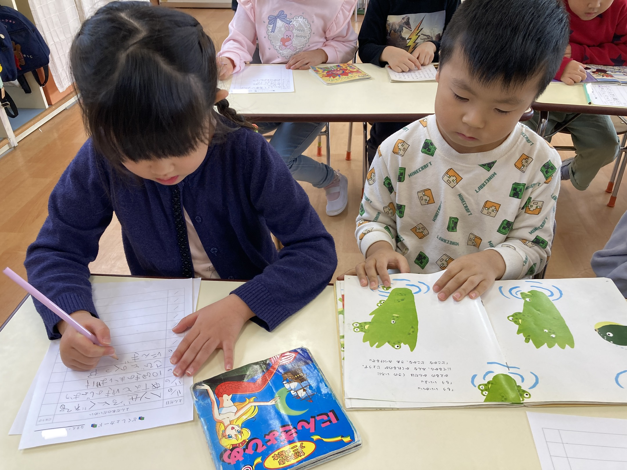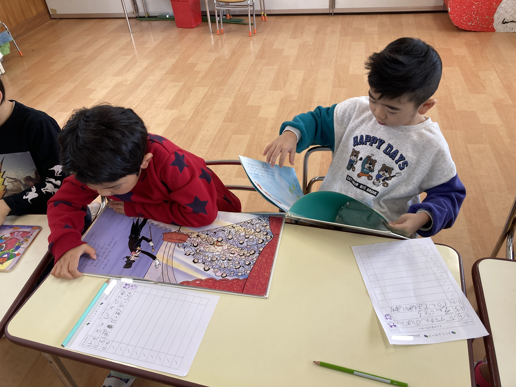 本を読むのが大好きなつき組!今月から「読書カード」を利用して、自分で読んだ本を書きだしています!