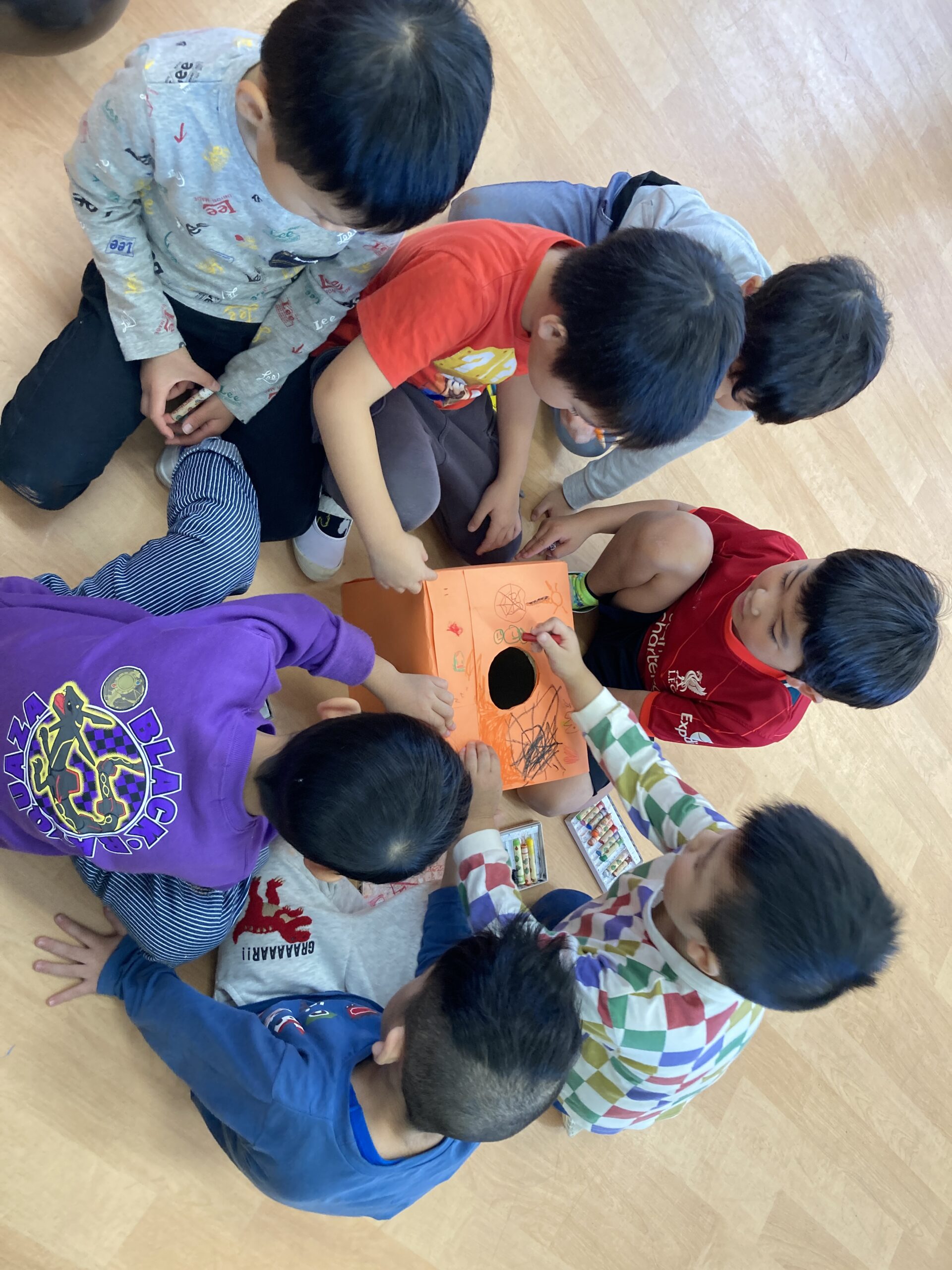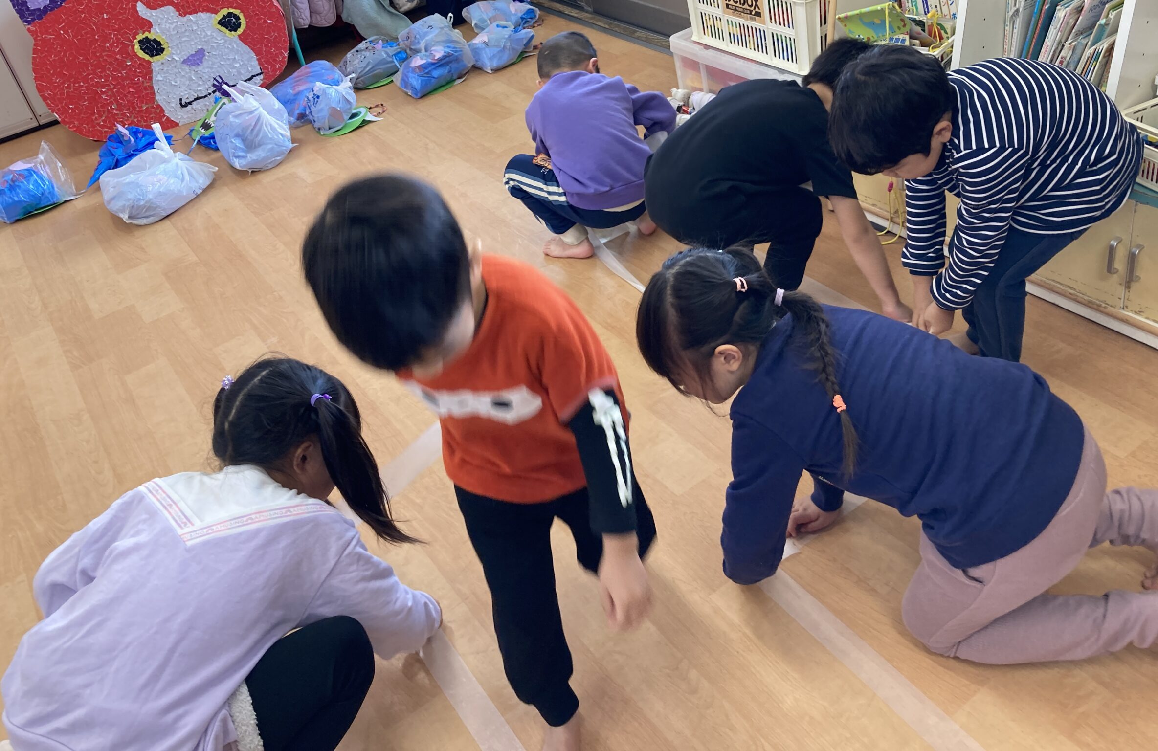 「はなぐみさんに棒が長いと危ないから短くしてあげた方がいいよね?」と言う子どもたちの姿もありました!くじ引きもみんなで協力して作りました!