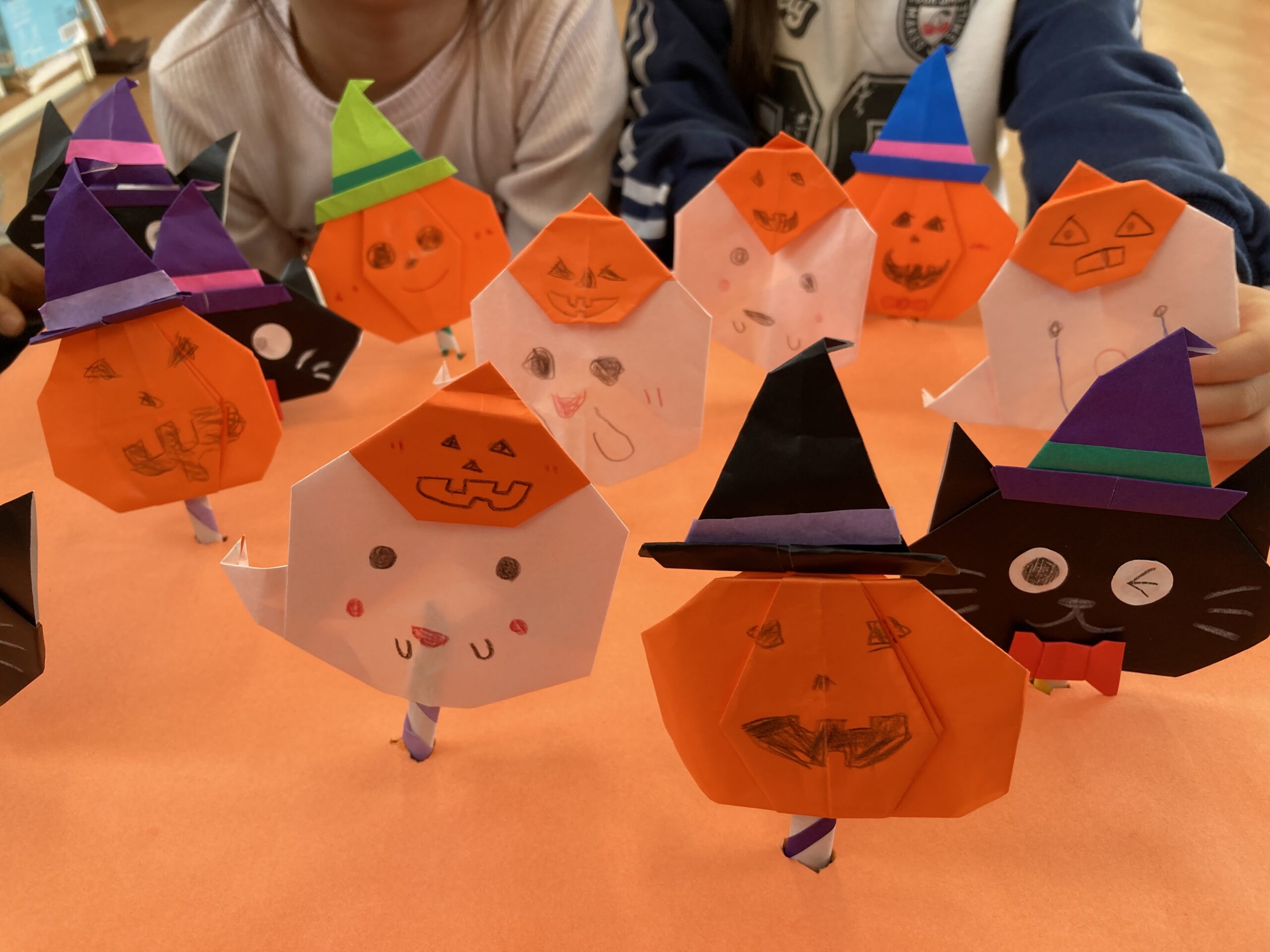 そこで決まった景品が「ハロウィンステッキ🎃」一生懸命折り紙で折って作りました!