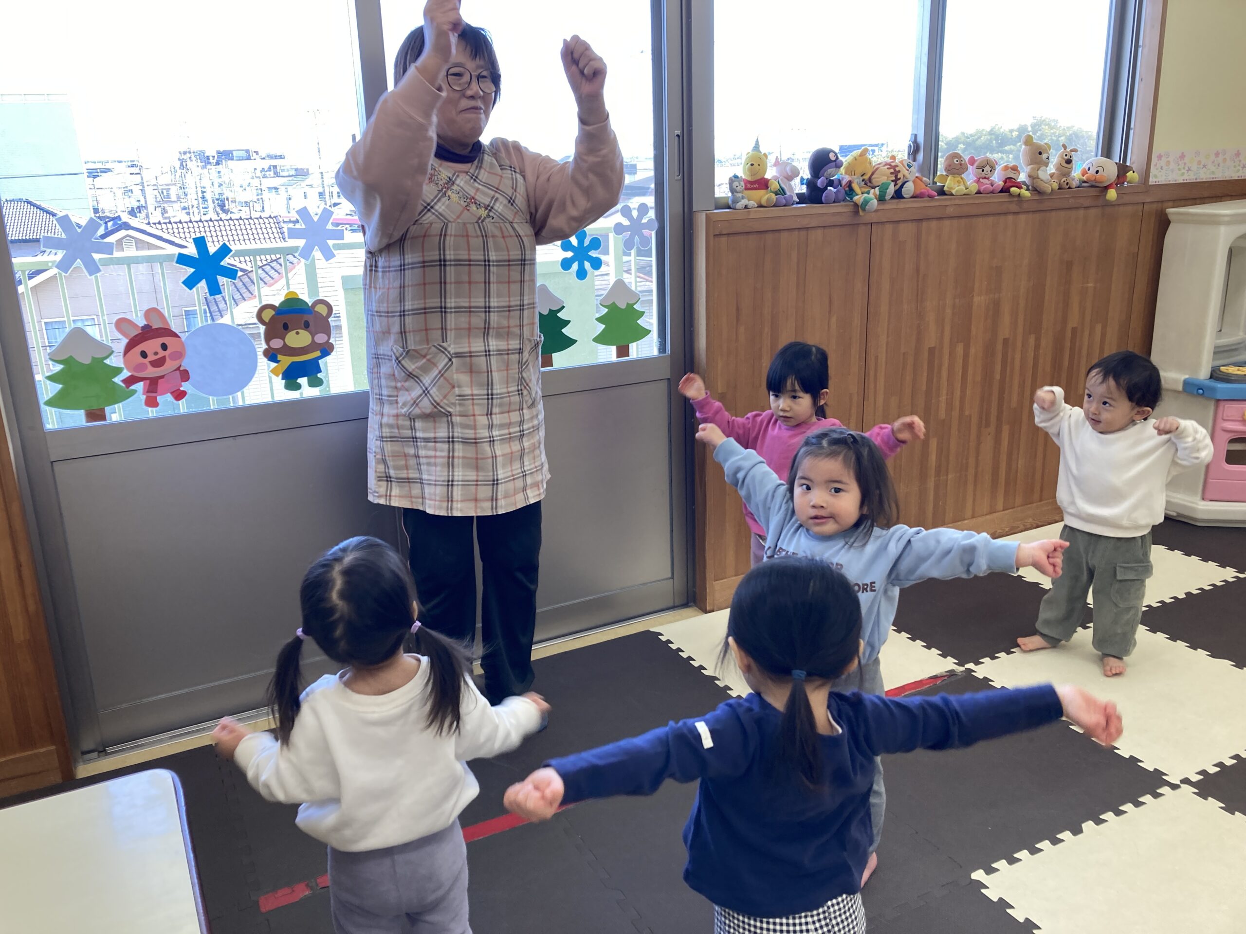 雪が降ったり暖かい日があったりと、最近のお天気模様は様々ですね。どんな時でも、そら組のお友だちはポカポカと心が温かくなる笑顔で来てくれてとっても嬉しいです!