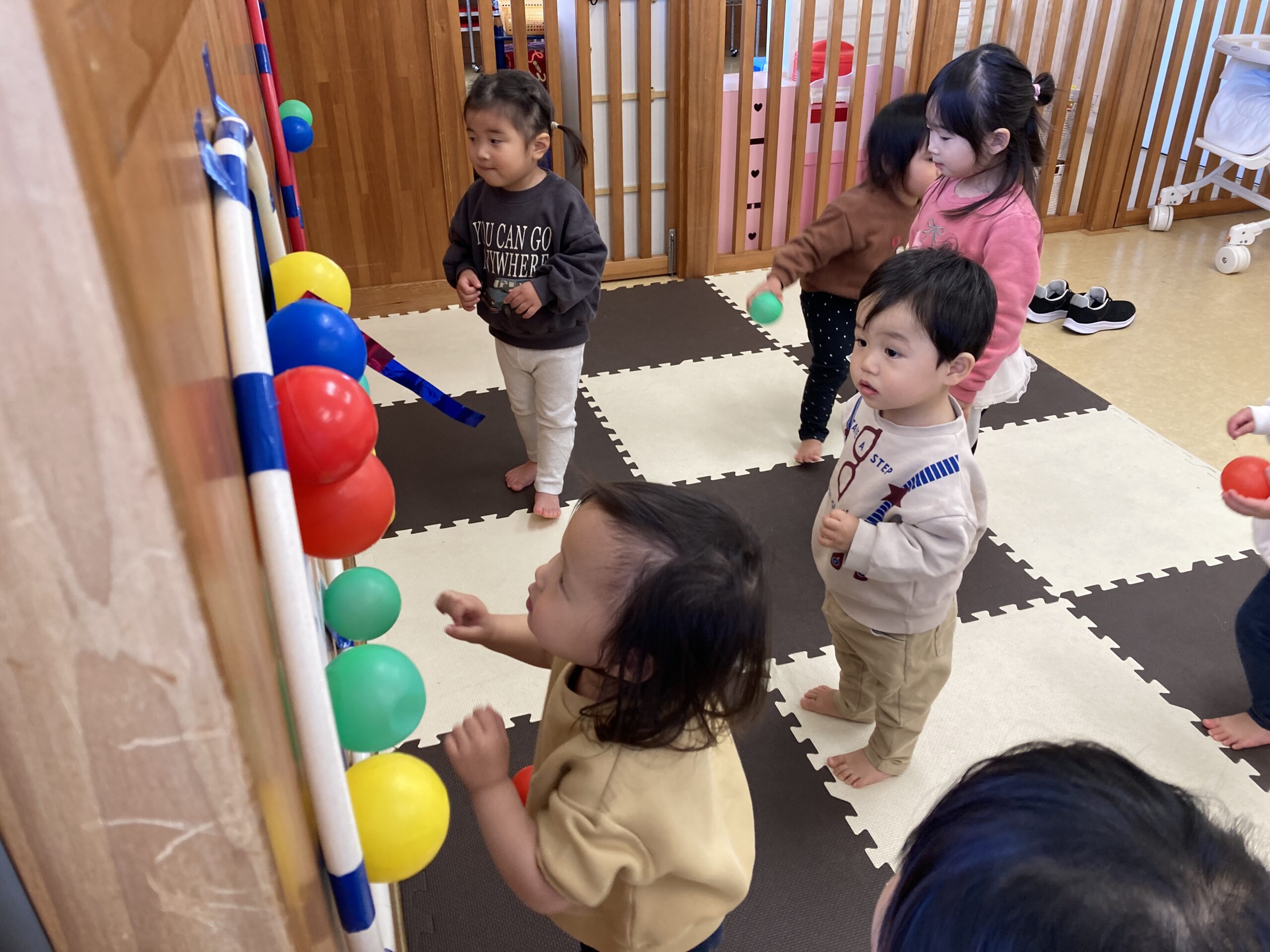 鬼の的に豆に見立てたボールを「鬼はーそと!福はーうち!!」と言いながら投げていました☆