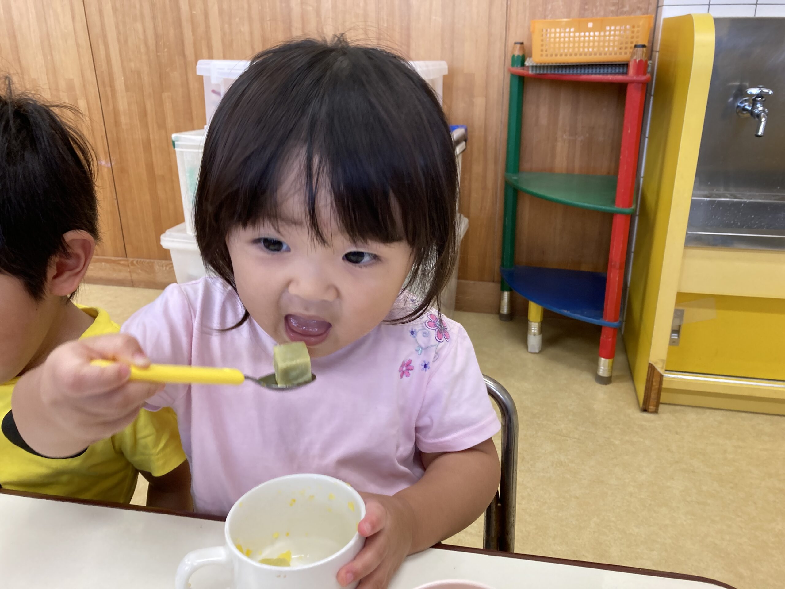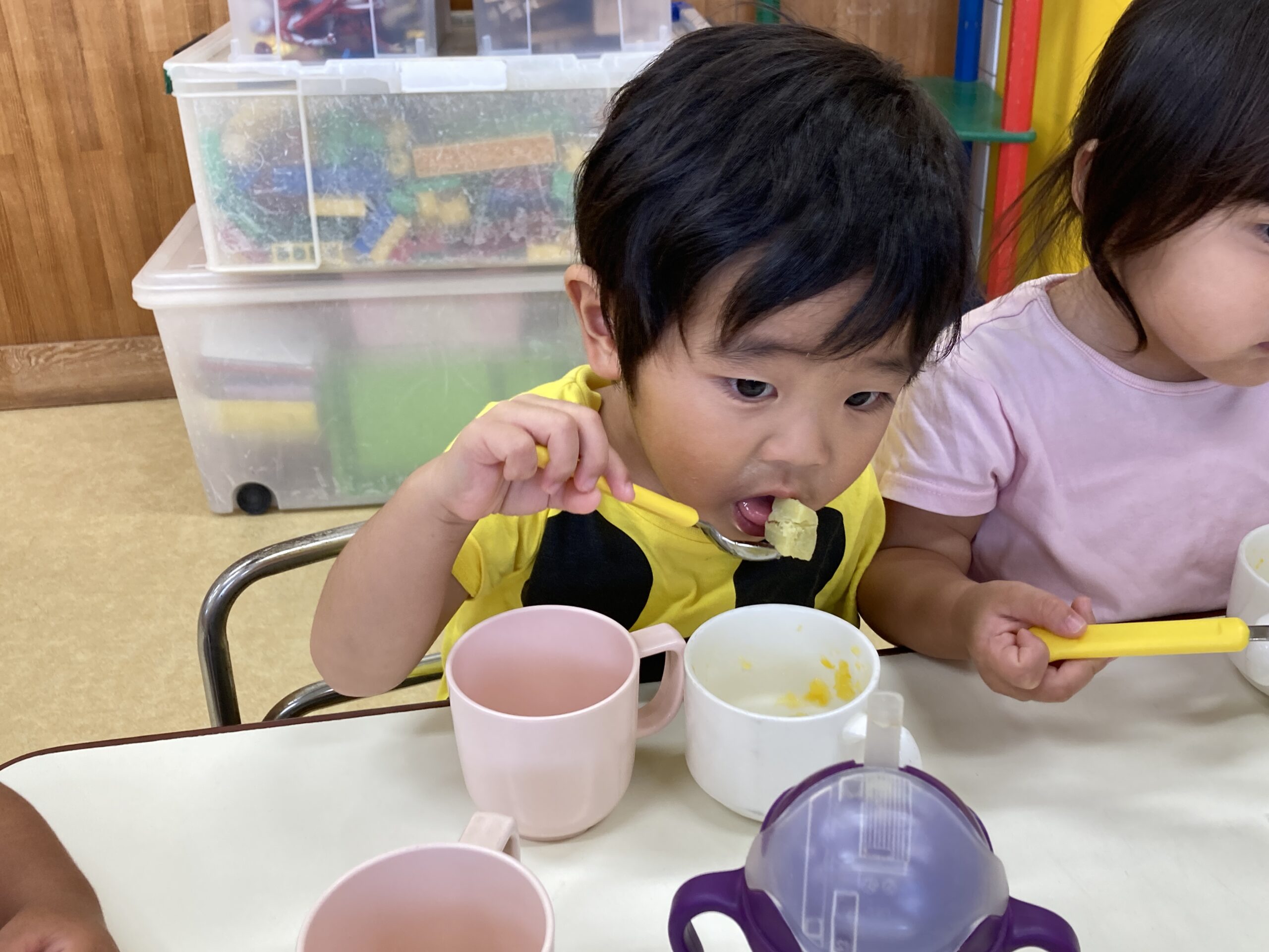 保育園のお兄さんお姉さんが、さつまいもを育てていたことを知っていたので、みんな嬉しそうにおいしくいただきました。