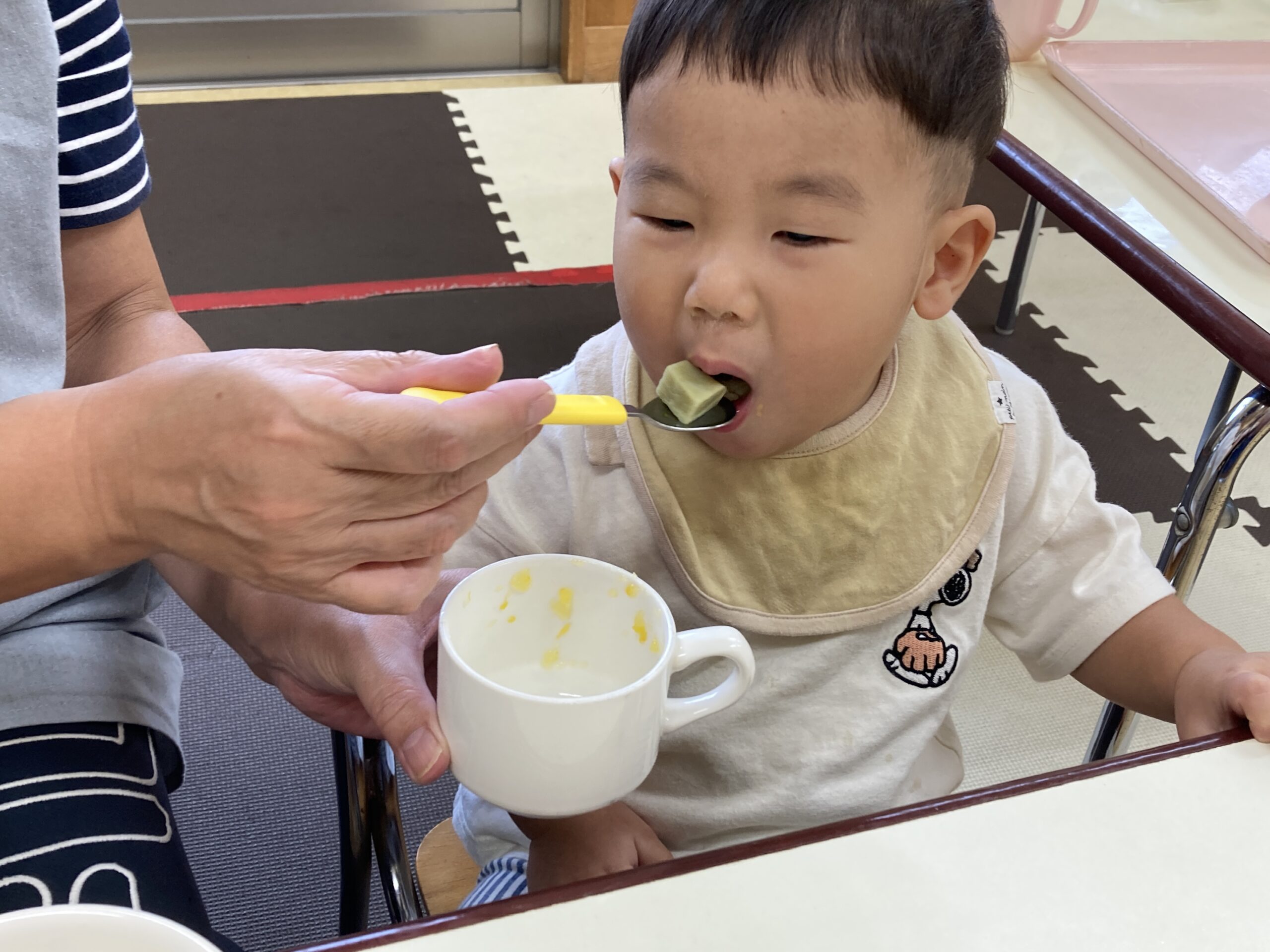 みんな回数を重ねるごとに、お口や手を上手に拭けるようになったり、みんなでごちそうさまができるようになってきました。今後も楽しいおやつの時間を過ごしていきたいと思います。