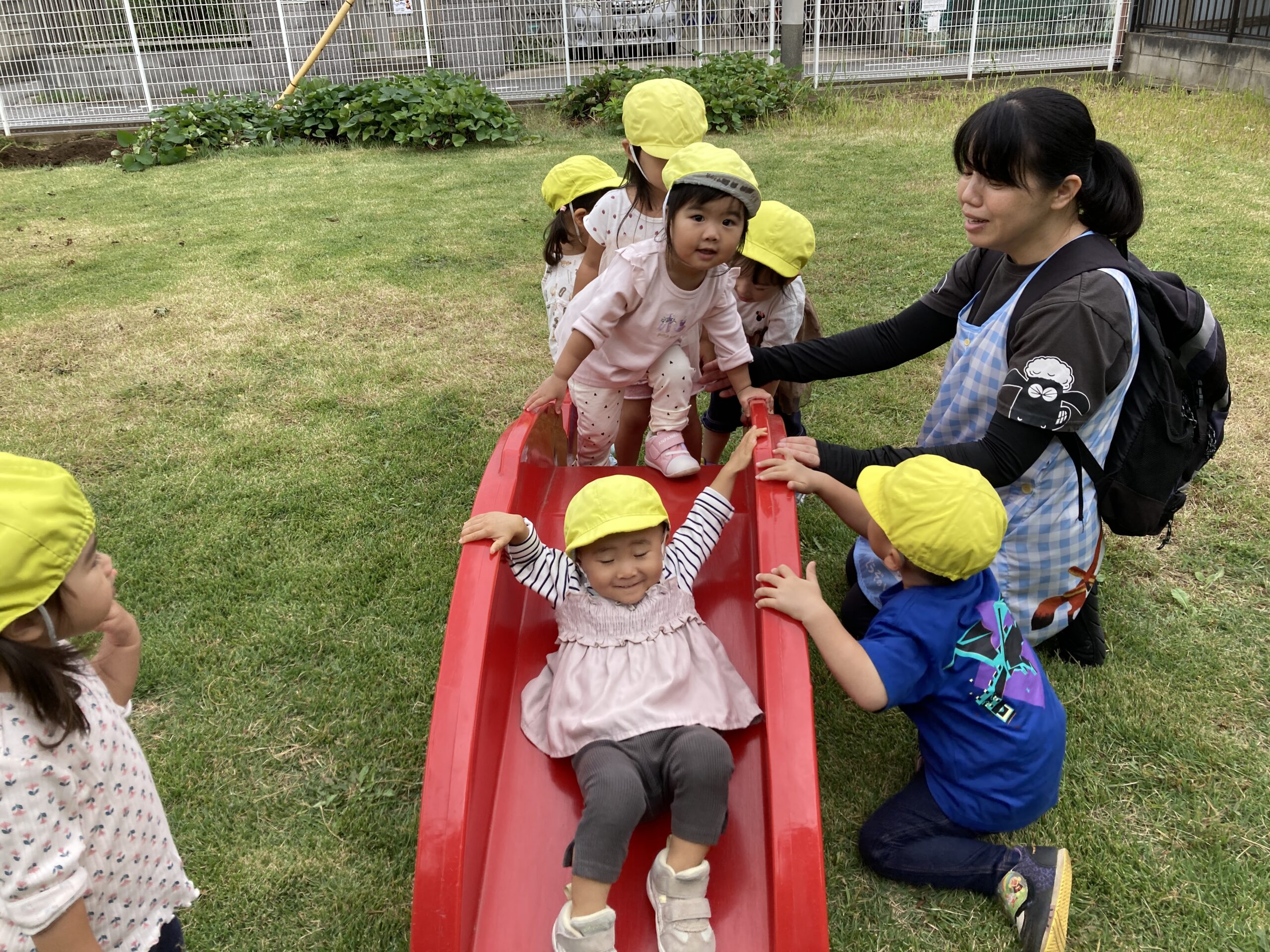 芝園庭では、思いっきり走ったり、すべり台を楽しみました♪