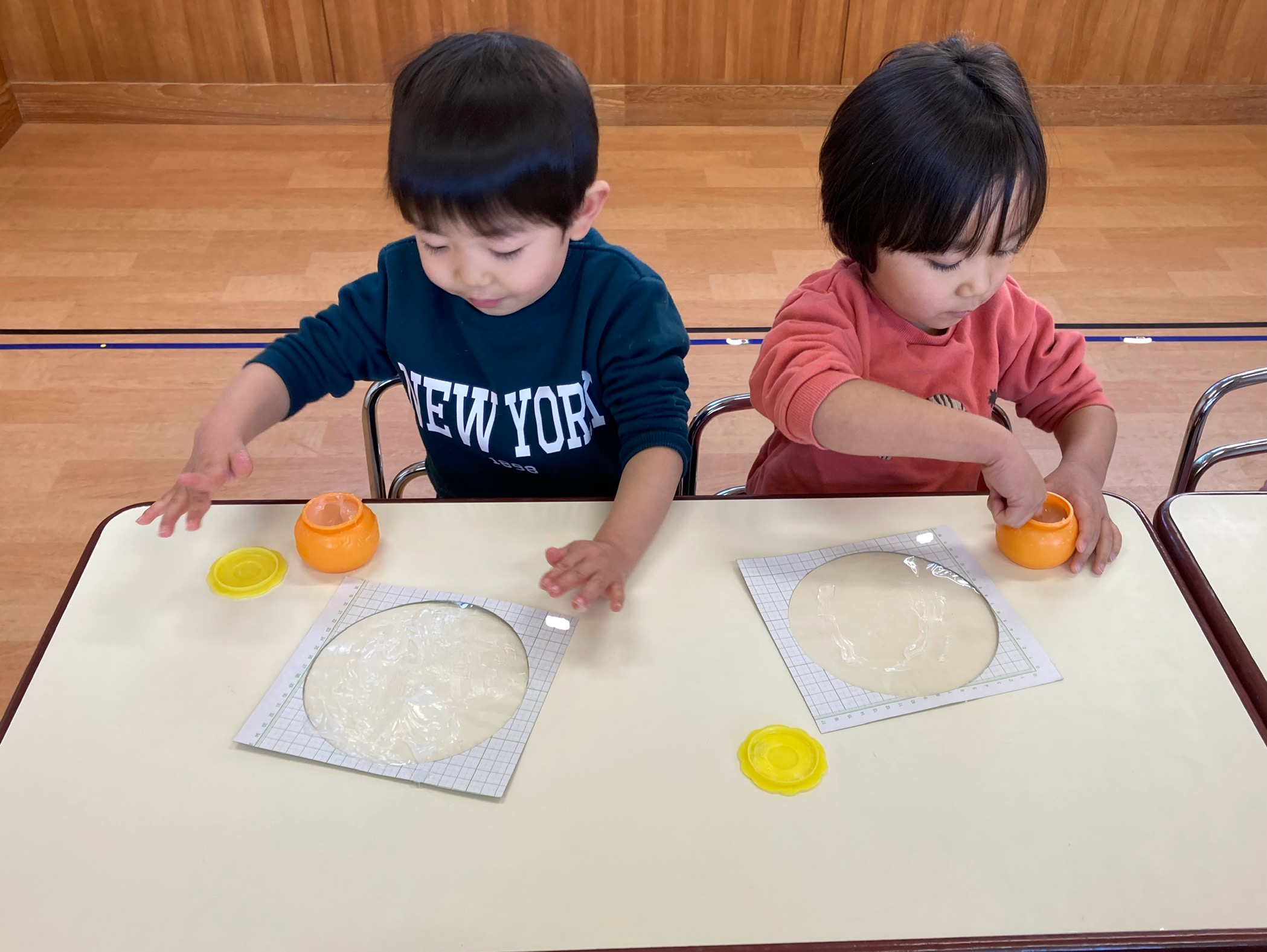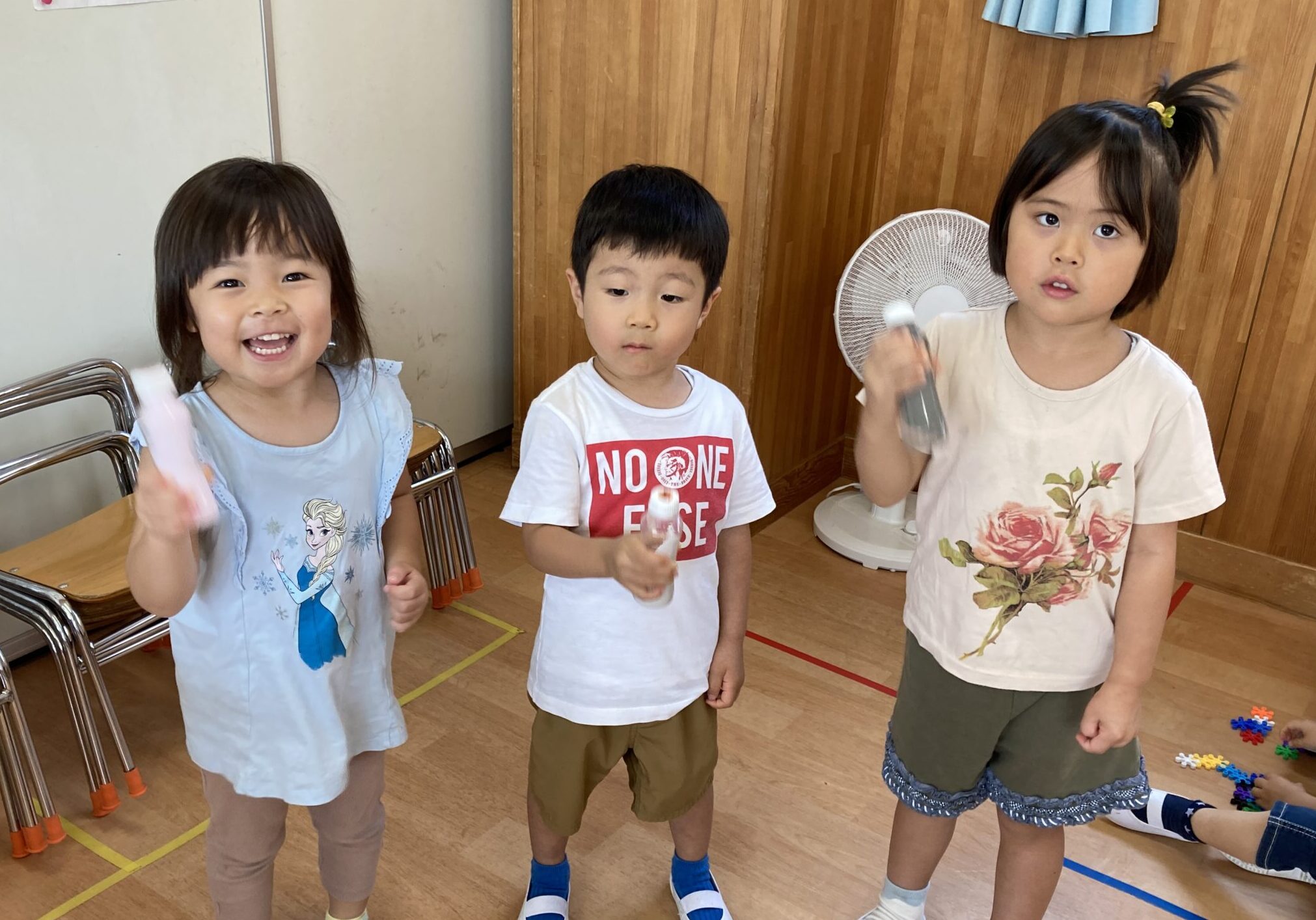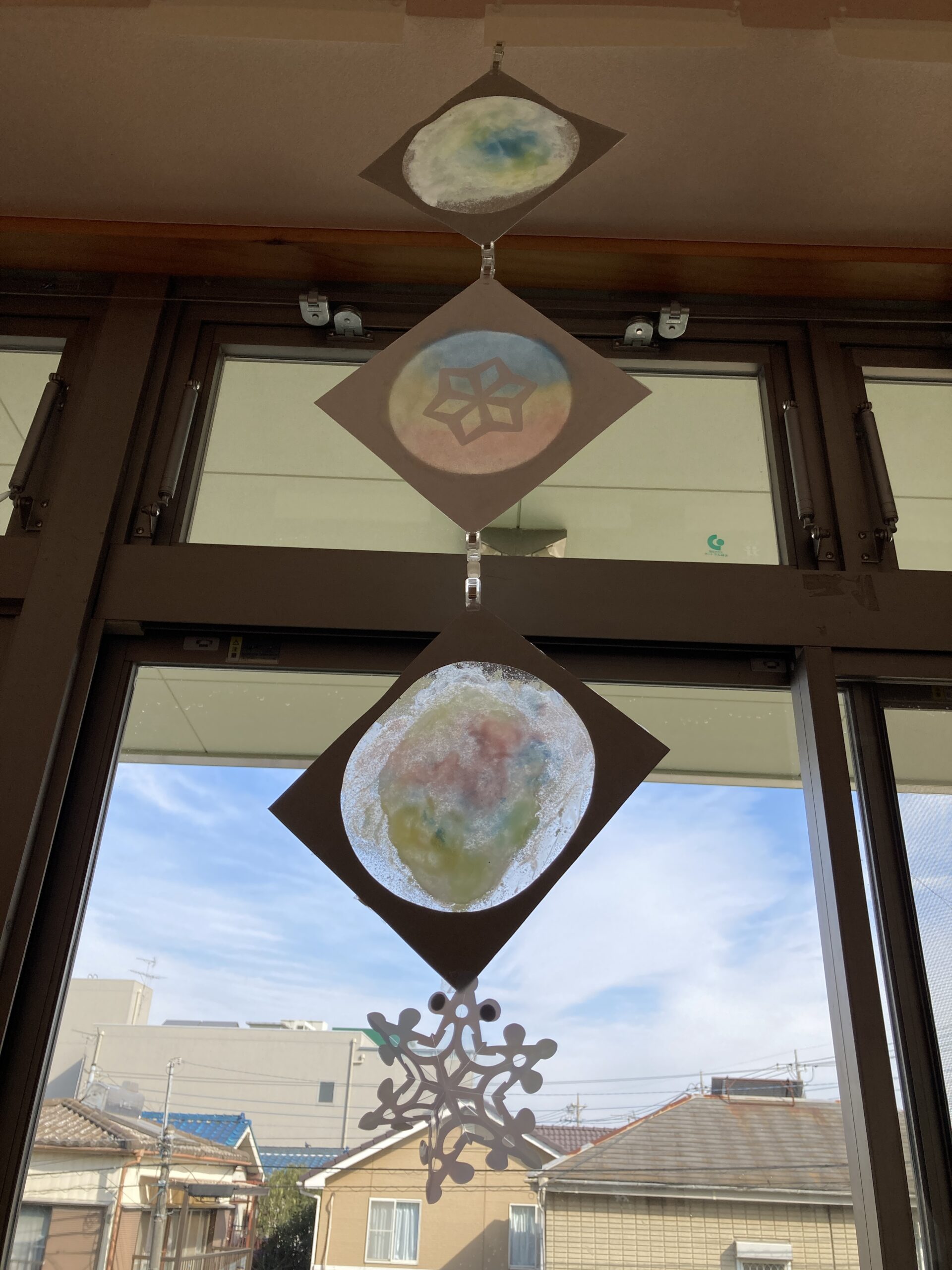 お部屋に吊るして飾ると、ひかりに透けて「きれい!!」ととっても嬉しそうなにじ組さんでした。