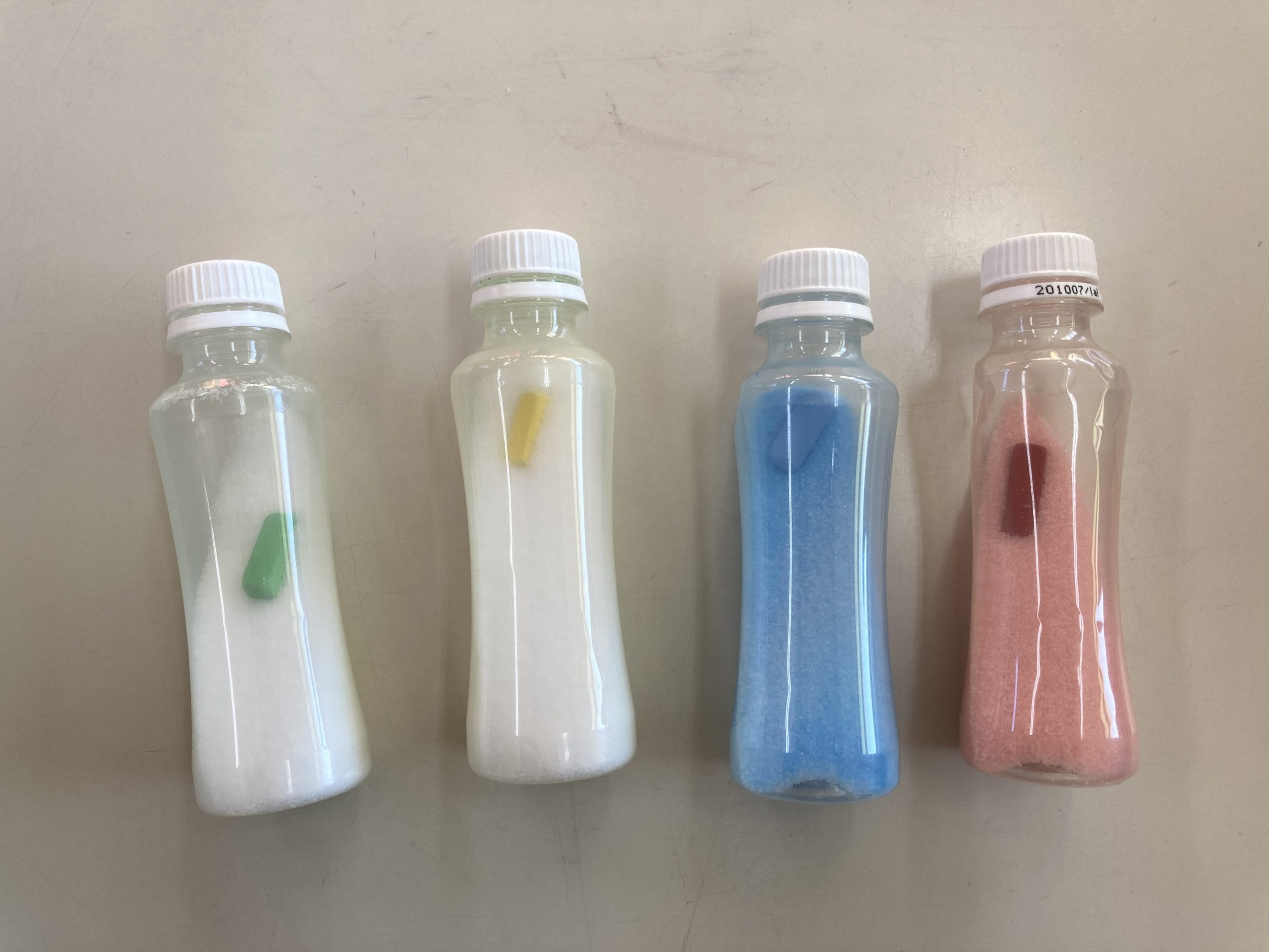 8月から塩マラカスで白い塩にクレパスの色付けを楽しんできました。