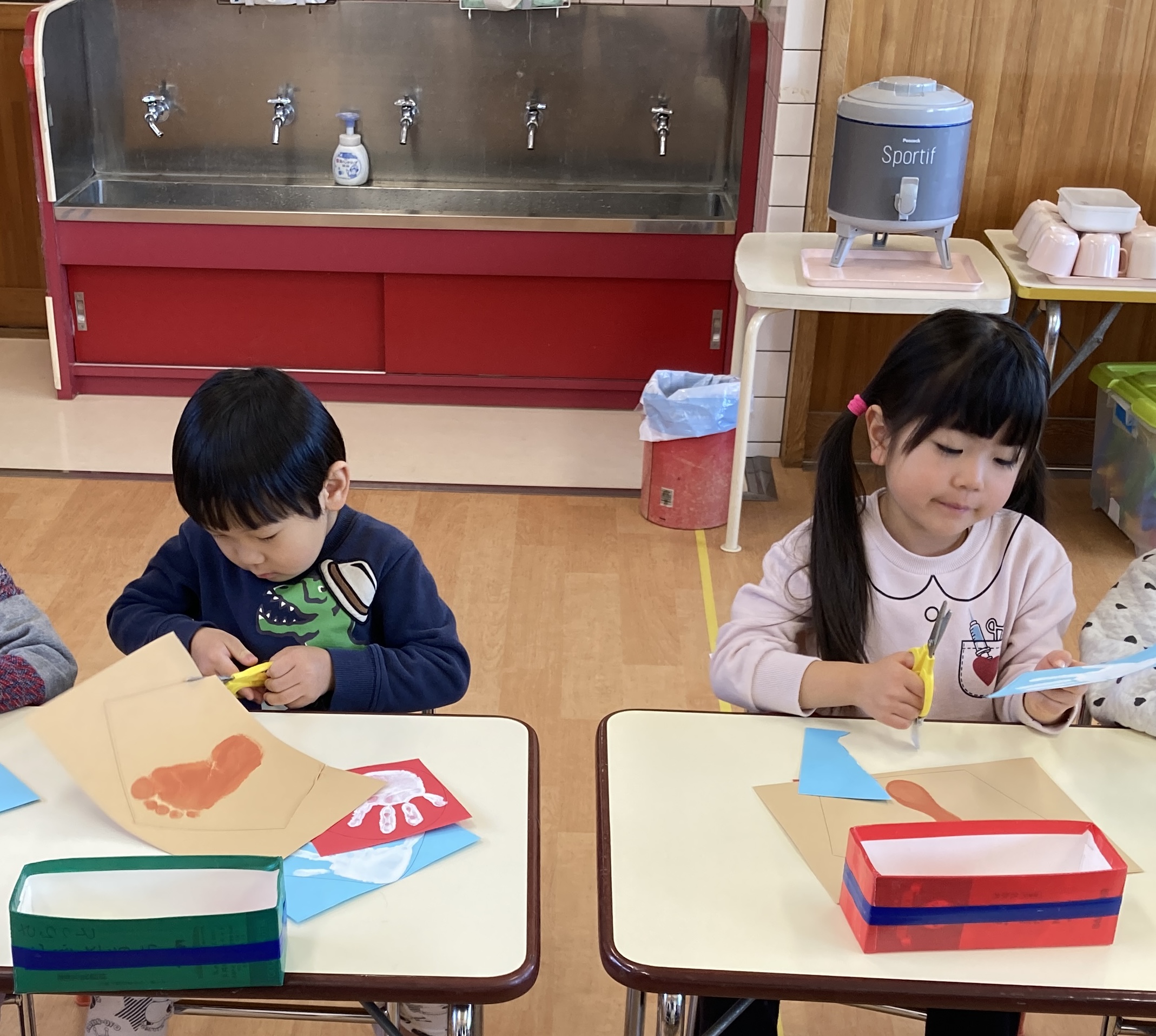 手形と足形が乾いたら、線に沿ってはさみでチョキチョキ✂