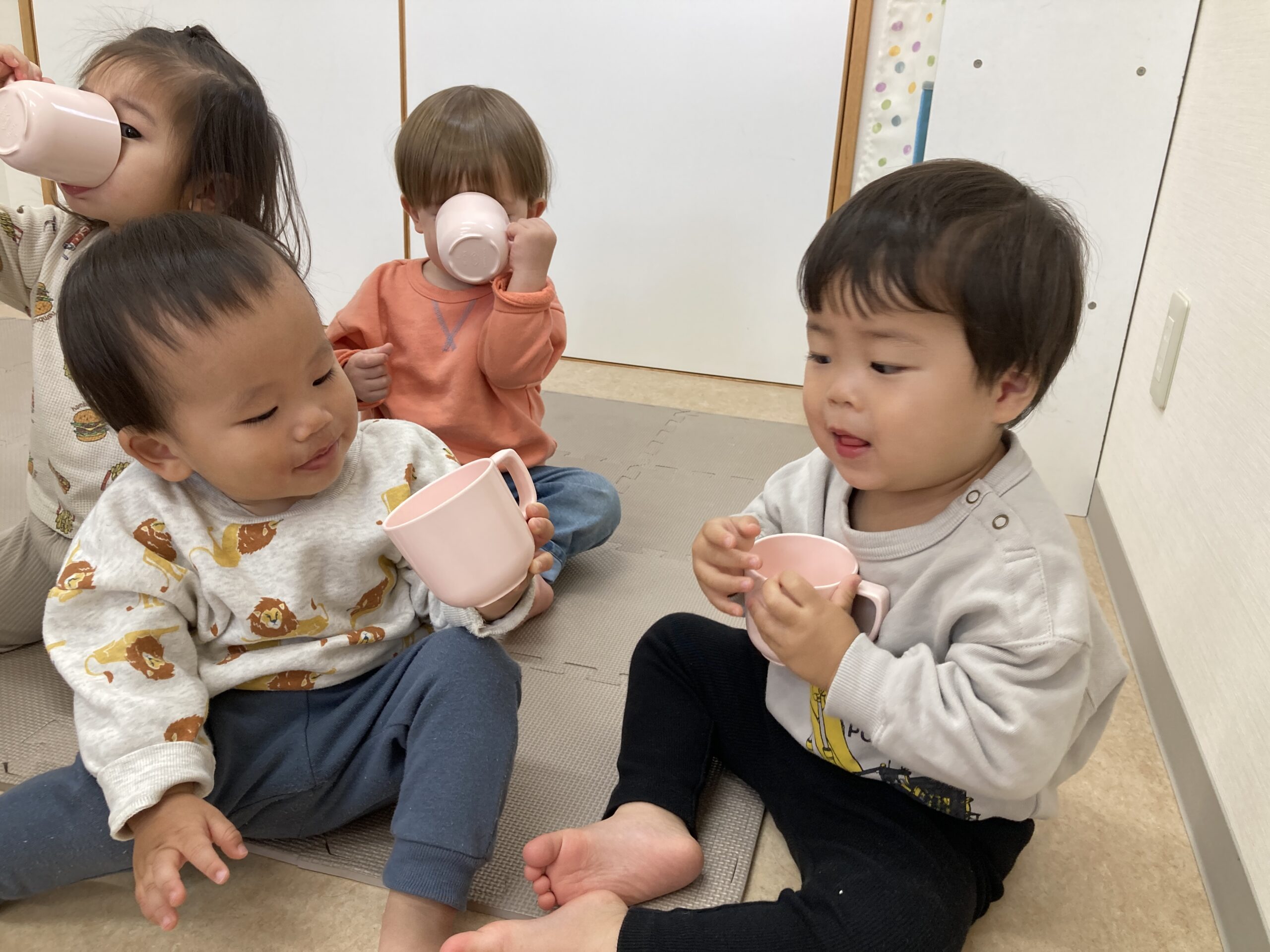 飲み終わったら、自分たちでトレーの上にお片付け!