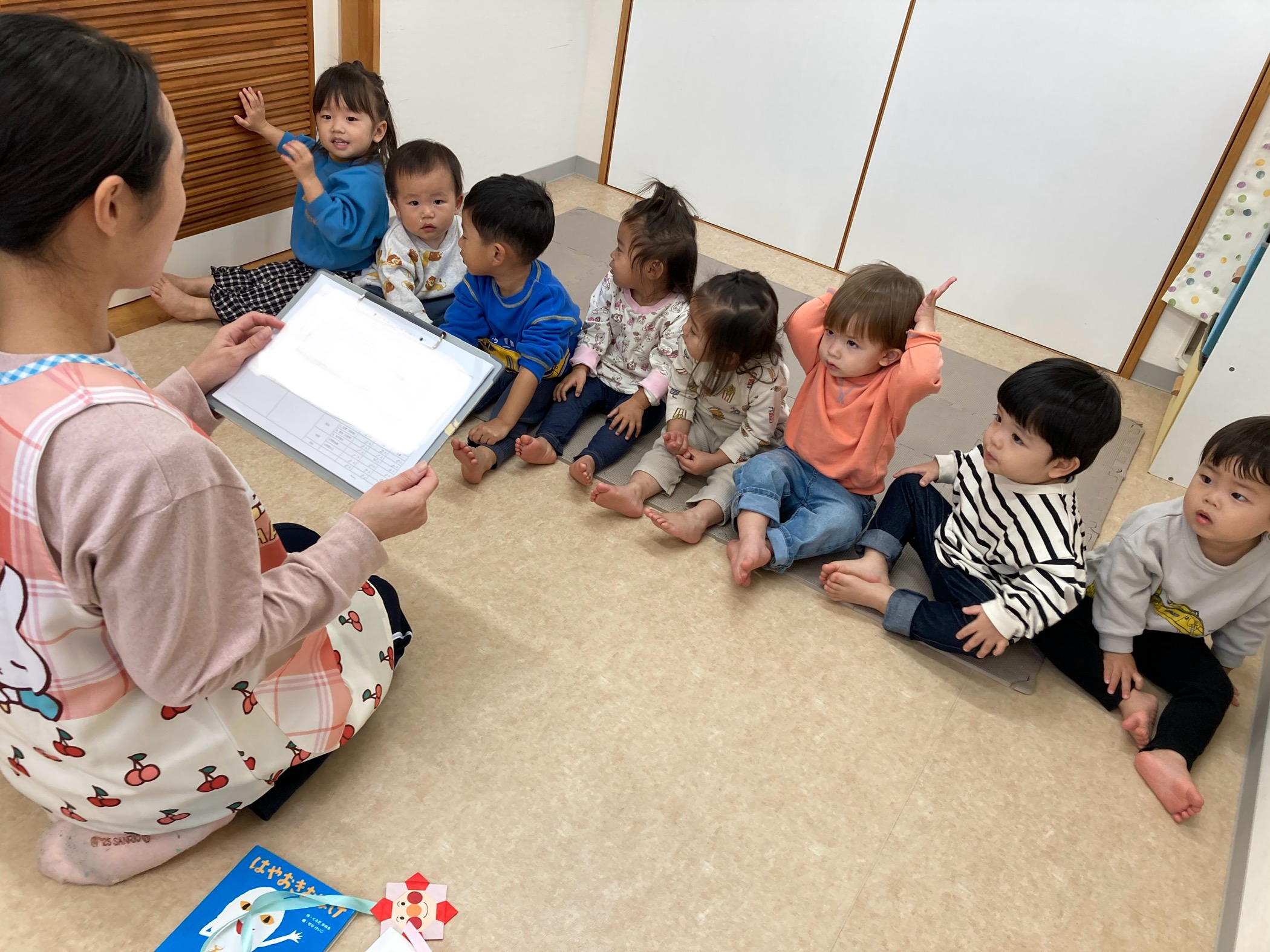 まずは、皆で並んで座り、名前を呼ばれ、「はい!」とお返事をします。