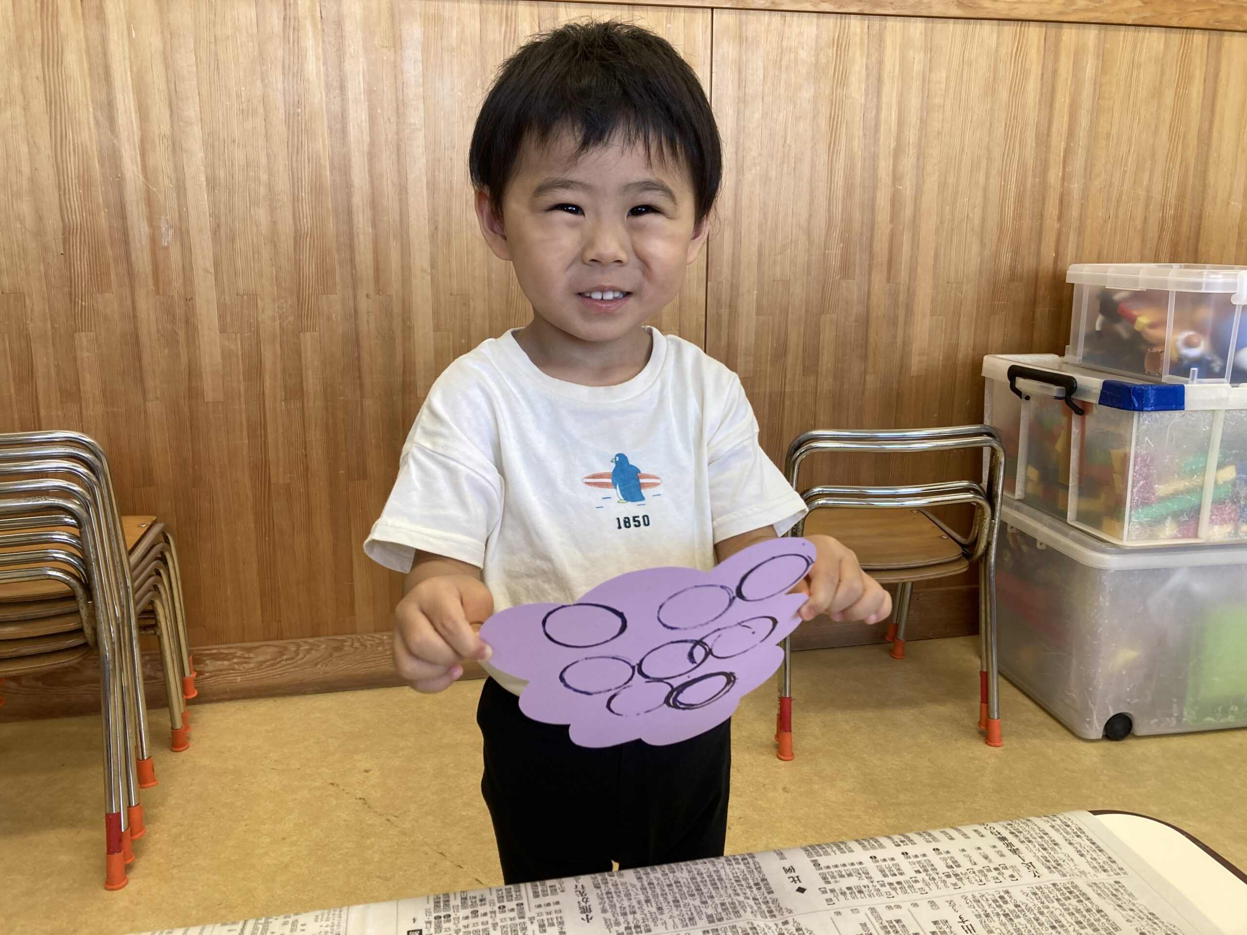 ぶどうの形をした色画用紙を見て「ぶどうでしょ~!!」と、すぐにわかったそら組さん!