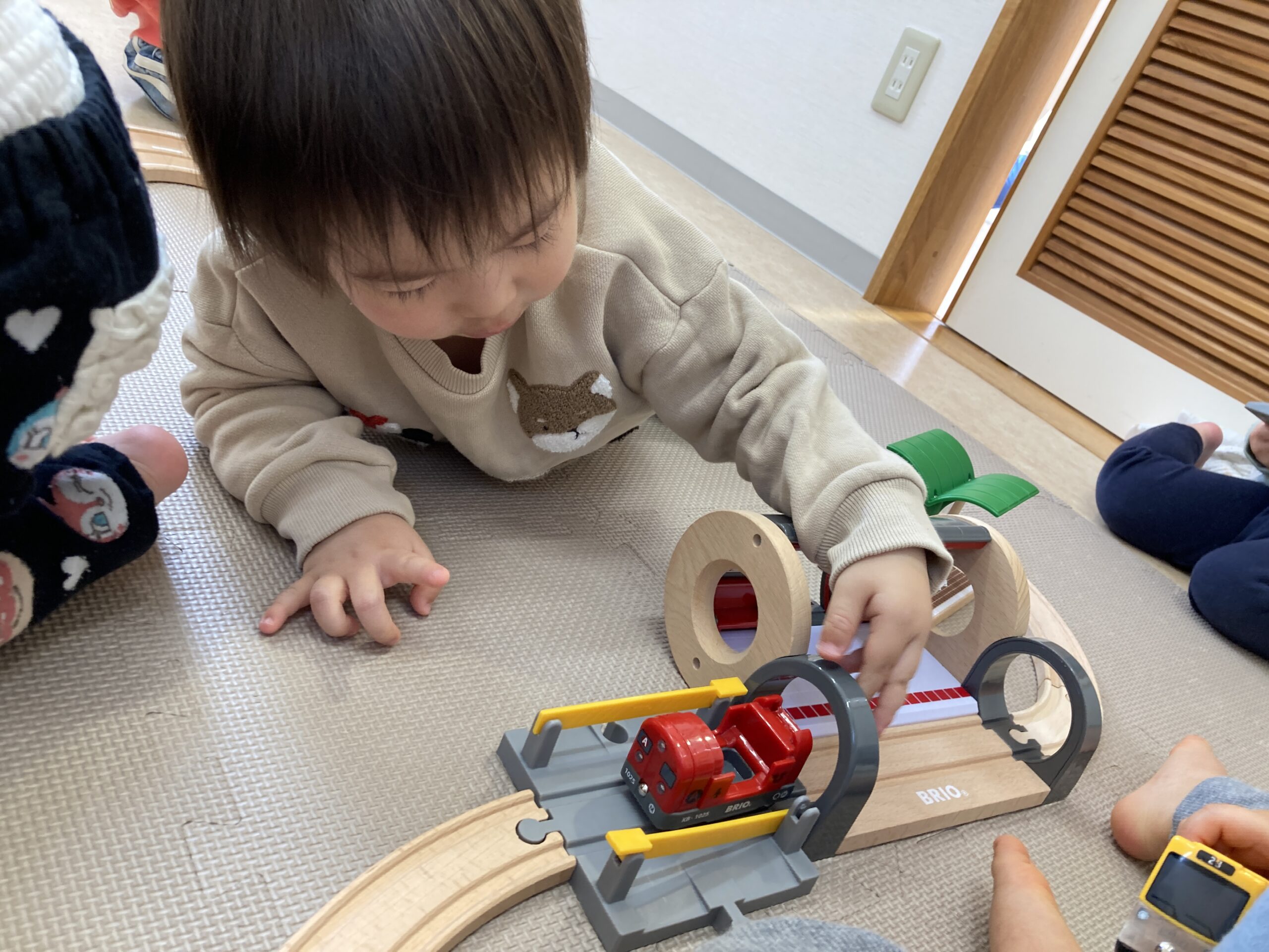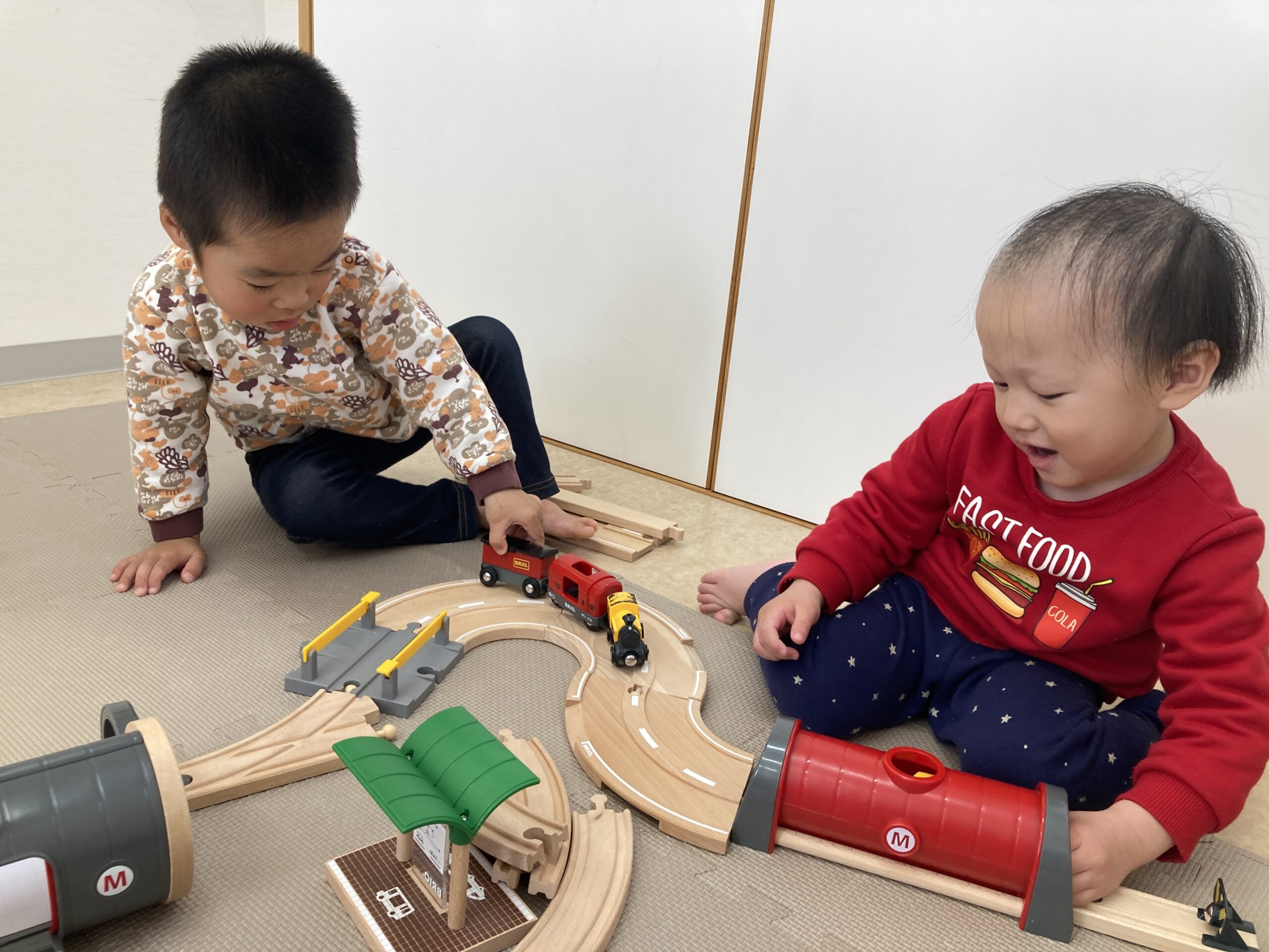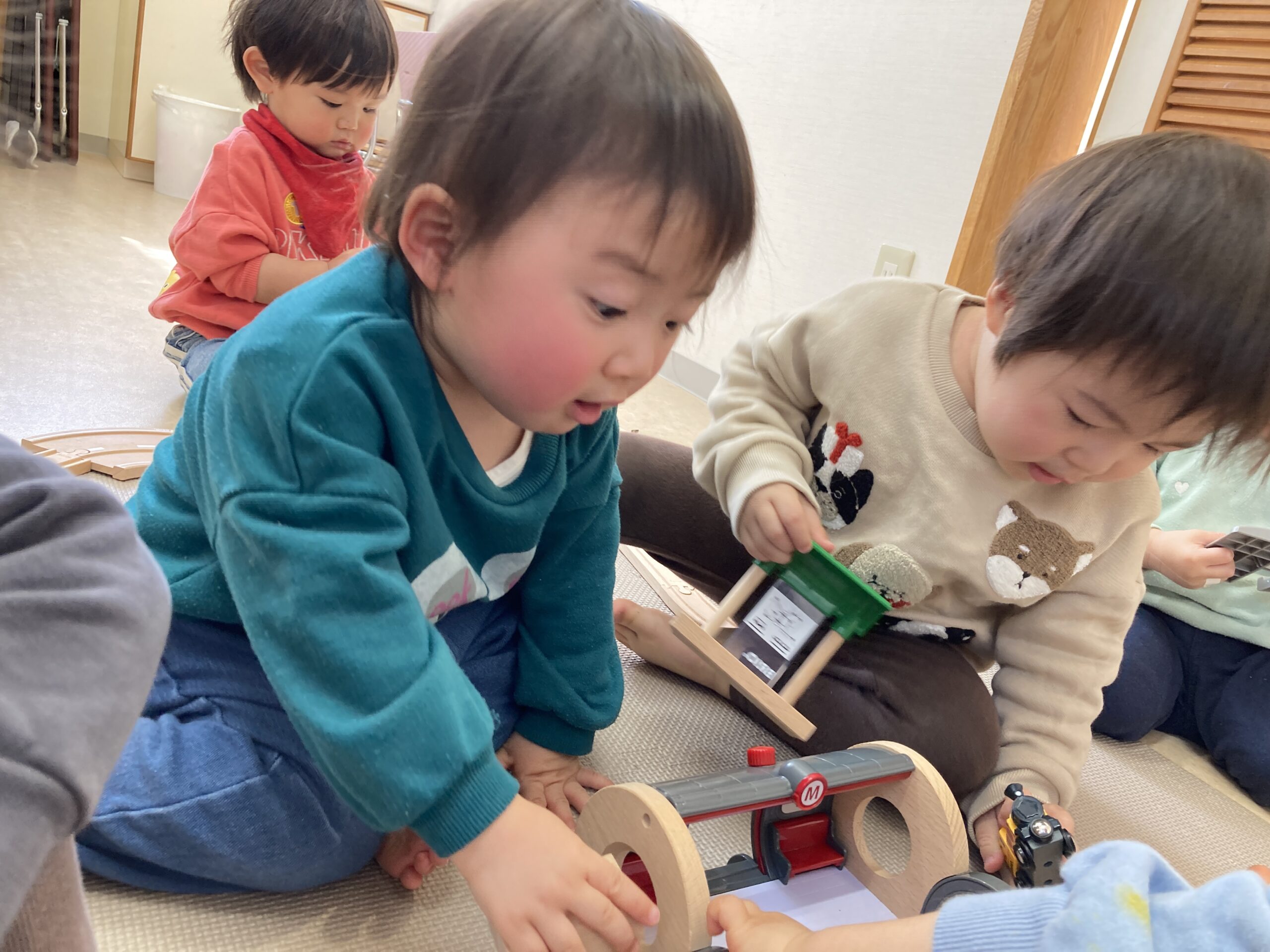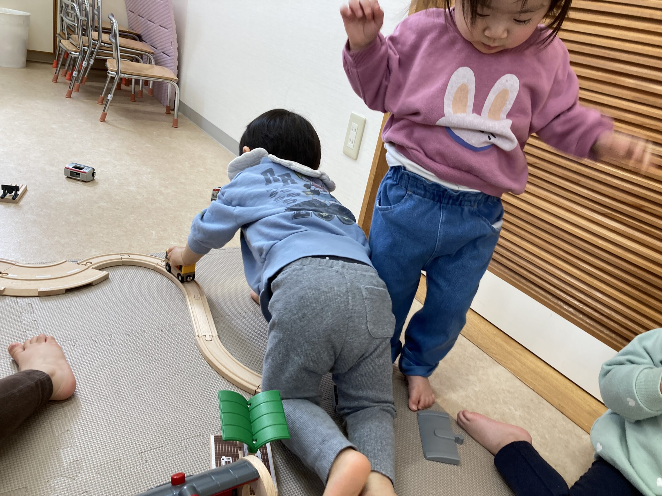 そら組のお部屋では、線路遊びをしました。