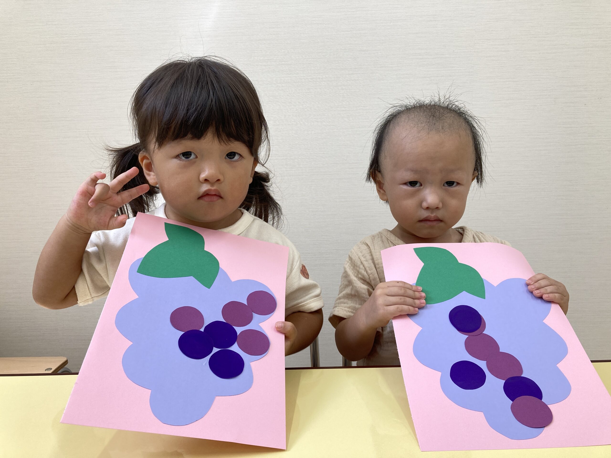「ぶどう作る?」と聞くと、「うん、つくる!」とやる気満々の子どもたち♡