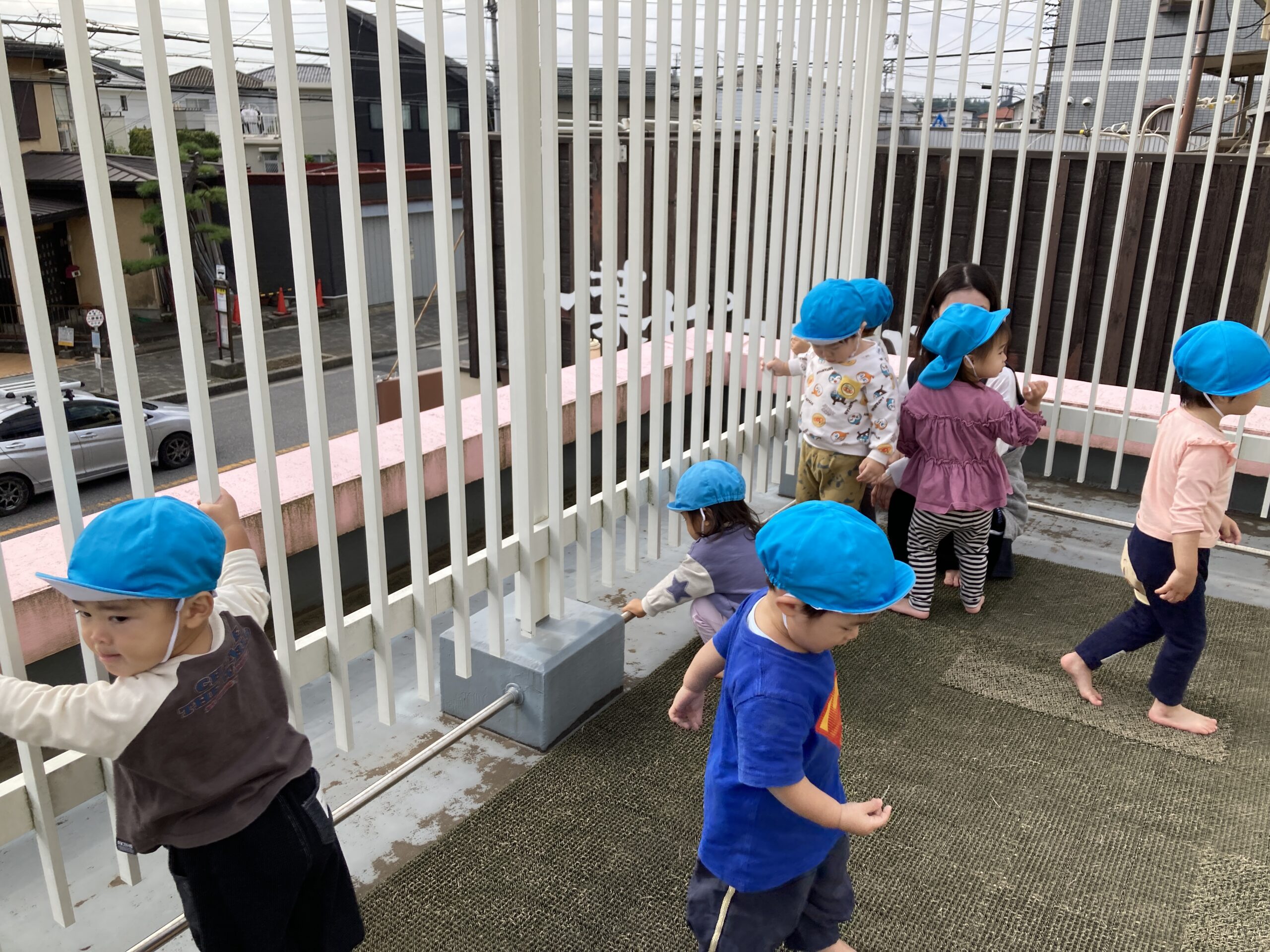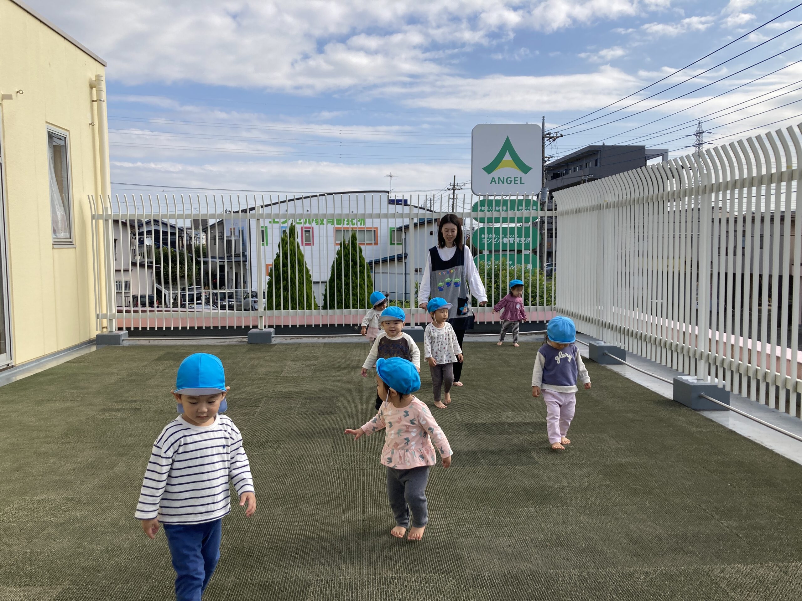 遊具がなく人工芝の広いテラスですがまだまだ遊びたい!と言って中々お部屋に戻れないくらい楽しんでいたほし組さんでした。