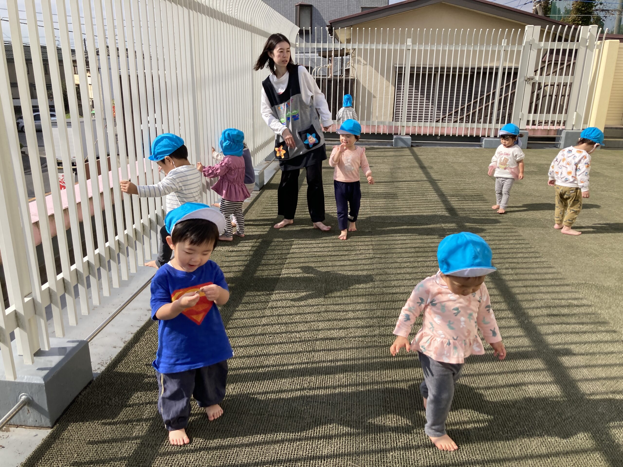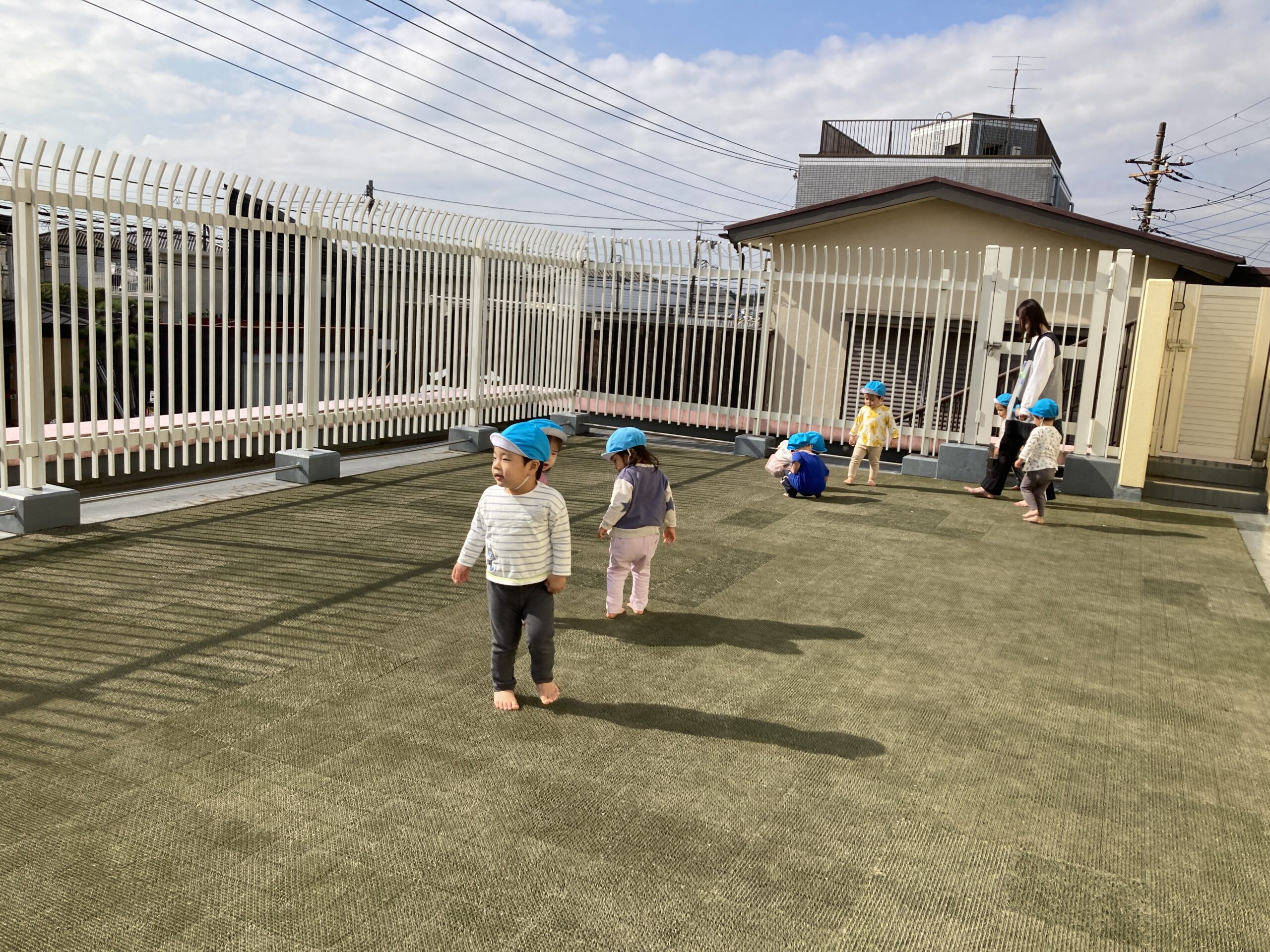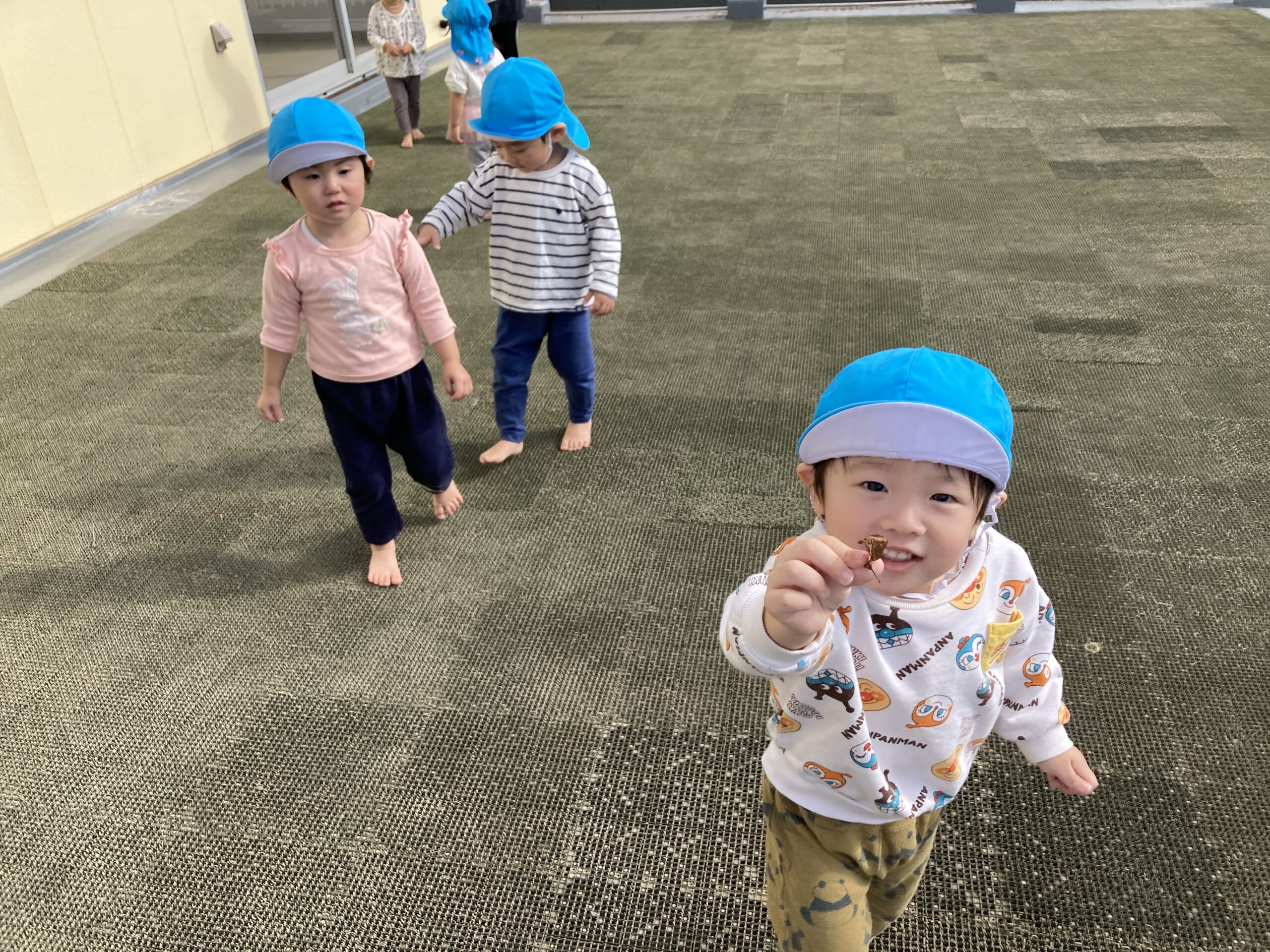 遊具がなく人工芝の広いテラスですがまだまだ遊びたい!と言って中々お部屋に戻れないくらい楽しんでいたほし組さんでした。